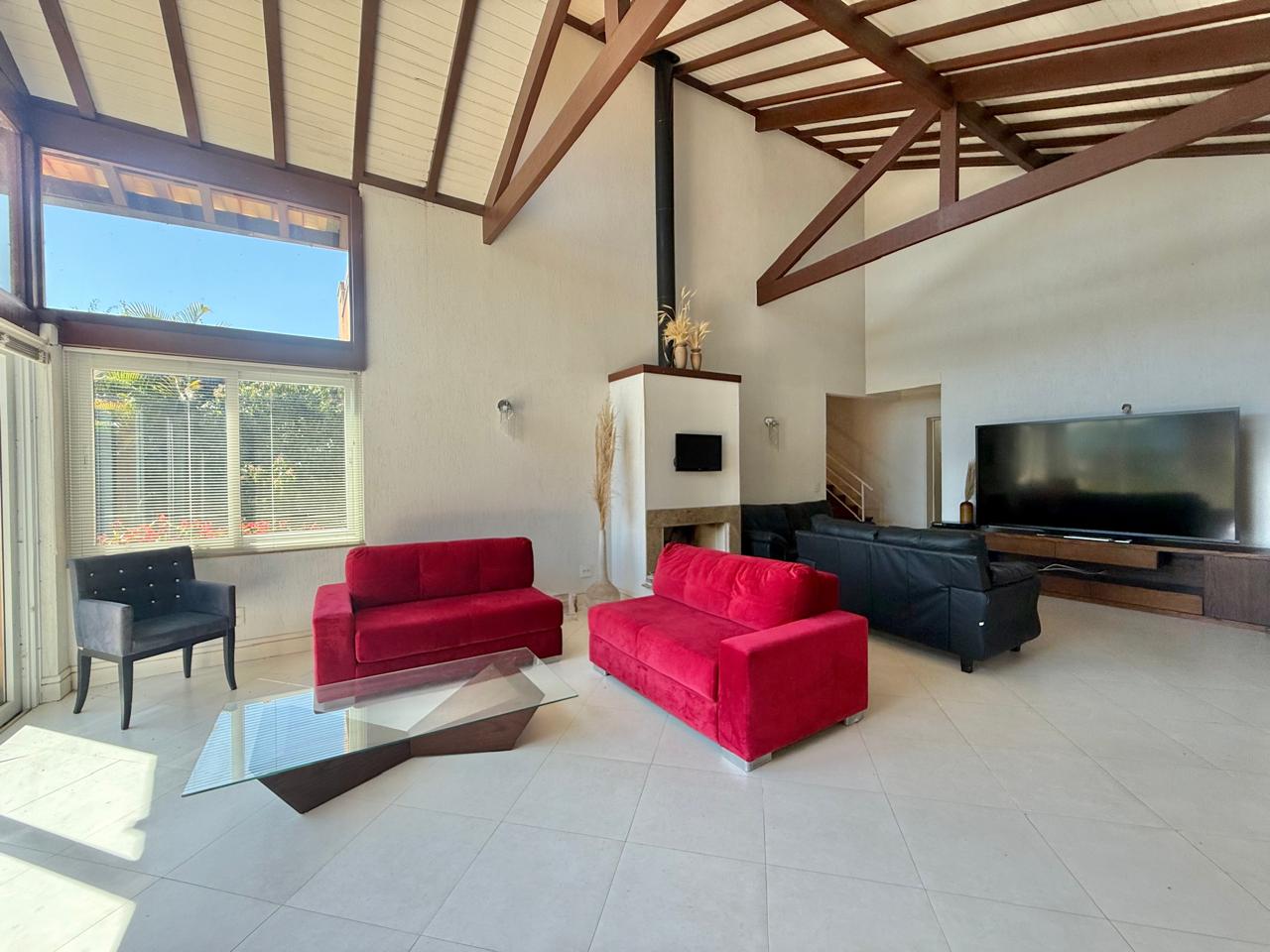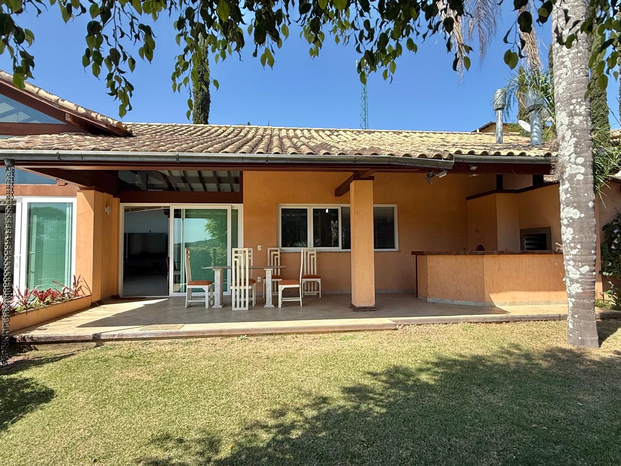 Ótima casa em condomínio com terreno plano, gramado e arborizado, Linda vista e ensolarada. A casa conta com sala de estar e jantar, lareira, espaçosa cozinha com armários e 4 quartos sendo 2 suítes. Lazer com piscina e área gourmet. A casa ainda conta com dep. p/ empregada e lavanderia.