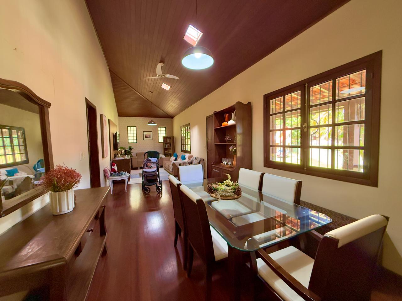 Casa bem localiada em local tranquilo e acolhedor. Jardim todo gramado e arborizado com terreno de 2.742,65m². A casa conta com varanda, salas de estar e jantar, copa/cozinha, banheiro social, 03 quartos sendo o1excelente suíte. Lazer com piscina, churrasqueira coberta, espaço para a sauna e banheiro. A propriedde ainda conta com 02 quartos externos para hóspedes, e um banheiro, área de serviços e portão eletrônico.