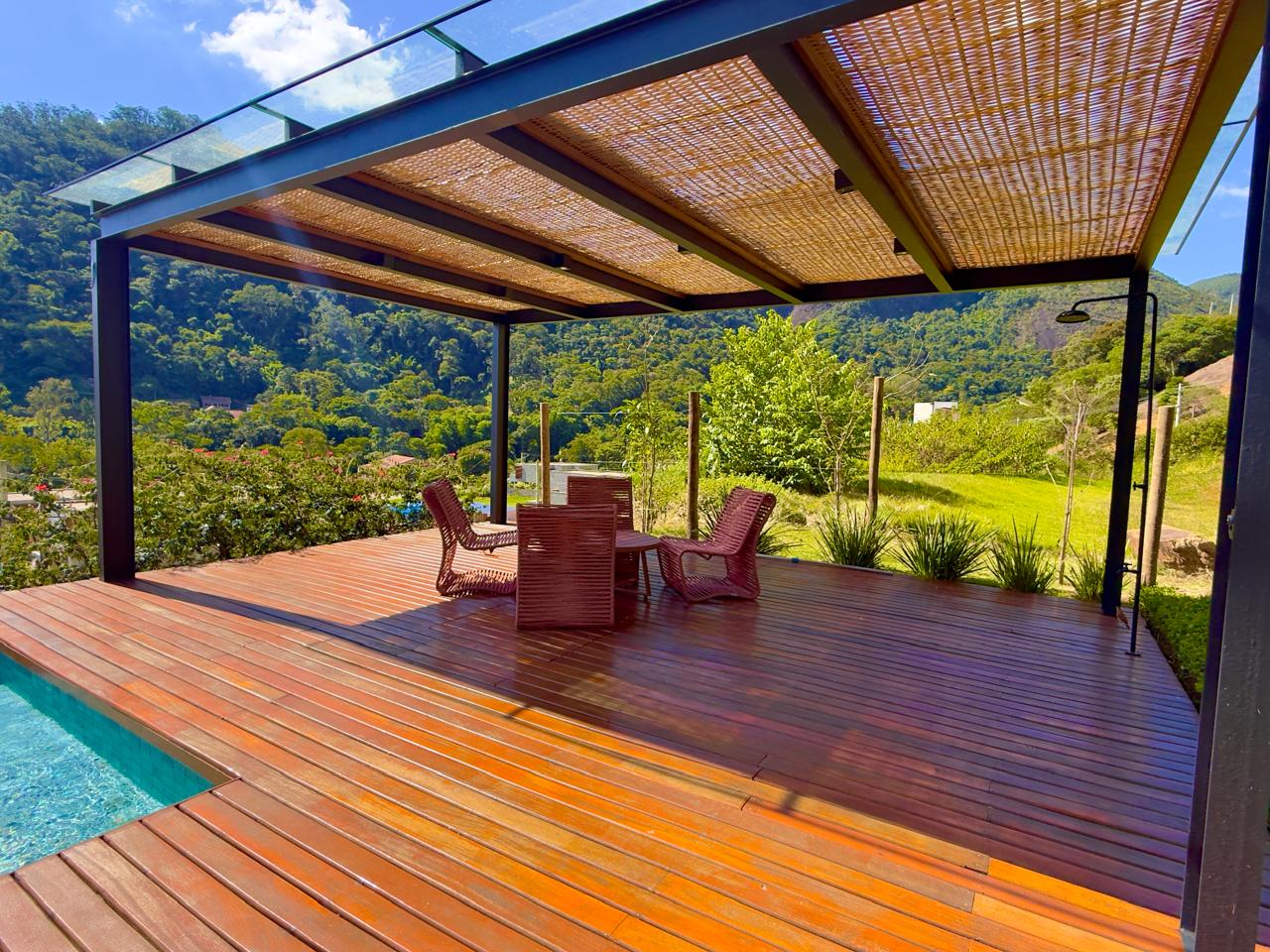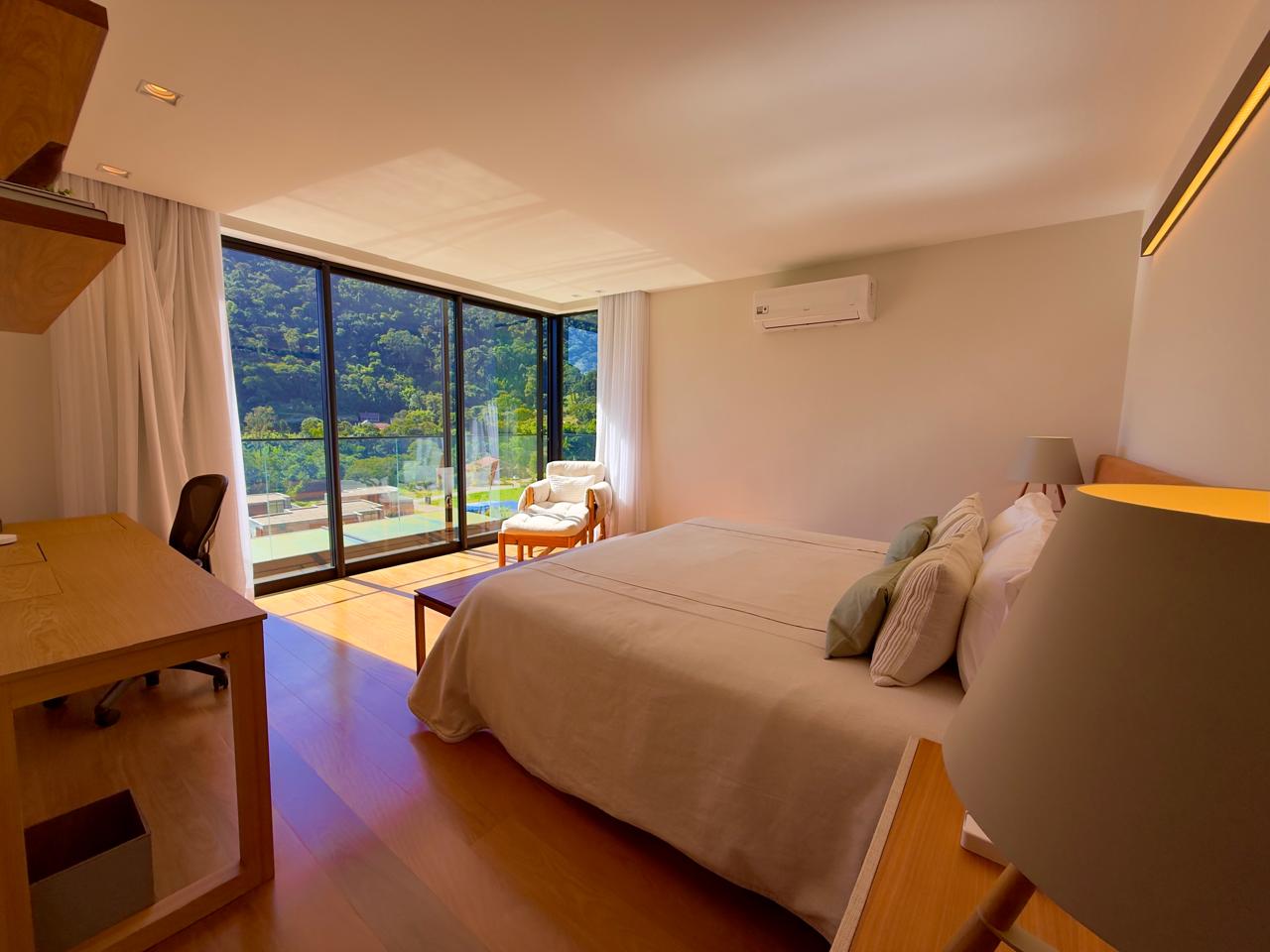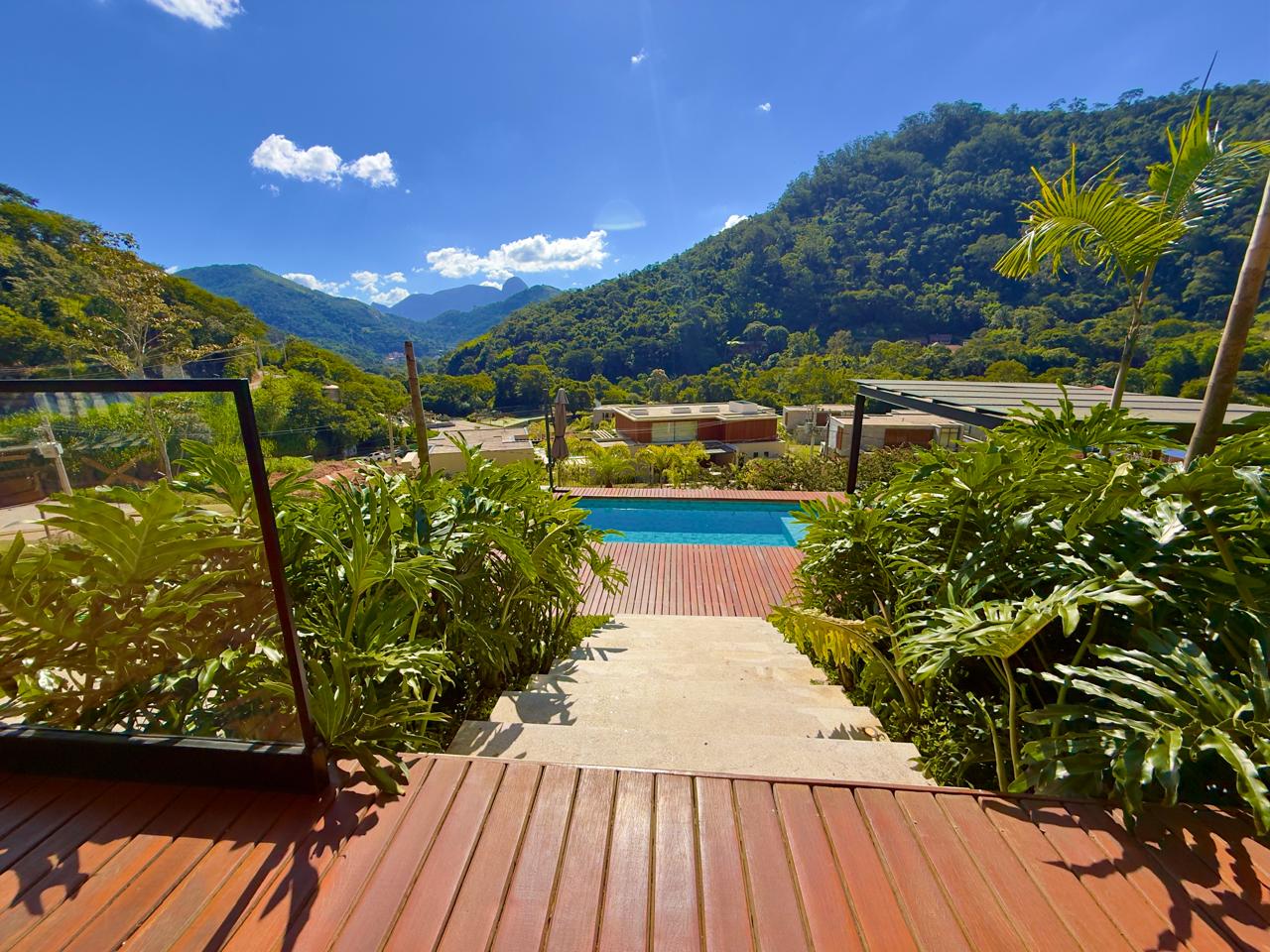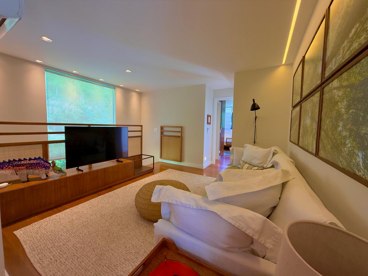 Excelente residência em em estilo contemporânio condomínio de alto padrão, com fino acabamento. Terreno com 1.513m² com lindo jardim paisagístico, ensolarada e com vista ampla. A casa ,com 405m² de área construída, conta com uma extença varanda integrada à área gourmet, salão em ambientes, lareira, sala de jantar, lavabo, excelente cozinha com armários planejados, sala íntima e 4 ótimas suítes,(ar condicionaddo nos principais cômodos da casa). Lazer com piscina em deck de madeira, alpendre, sala de jogos e academia com banheiro de apío, (além da área gourmet já mencionada). A bela propriedade ainda conta com área de serviço toda equipada, dep. para empregada completa e garagem coberta para dois autos.