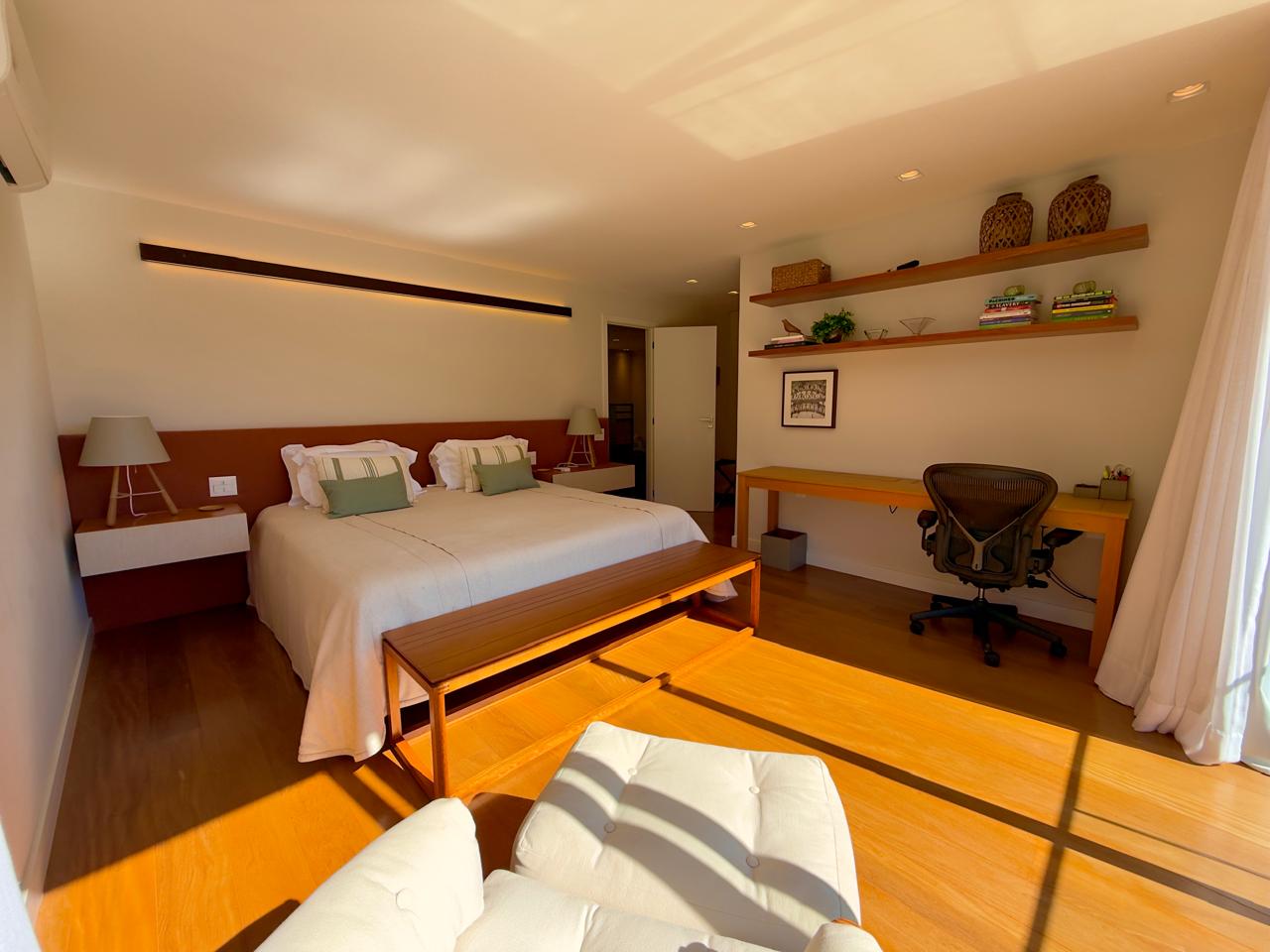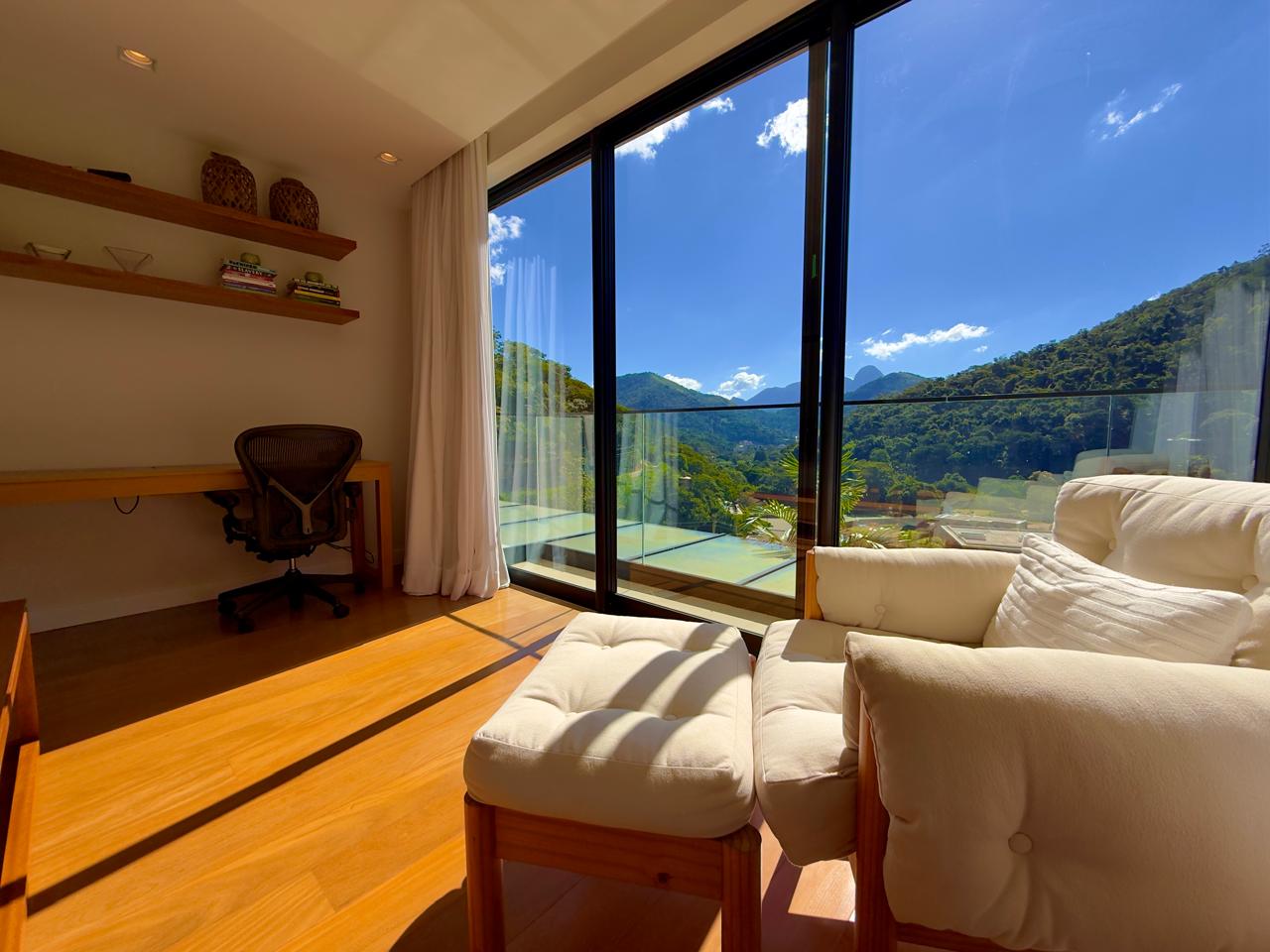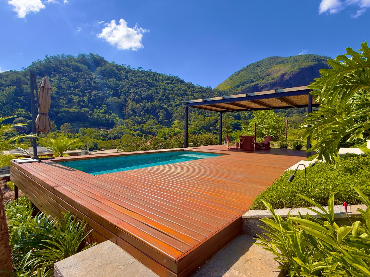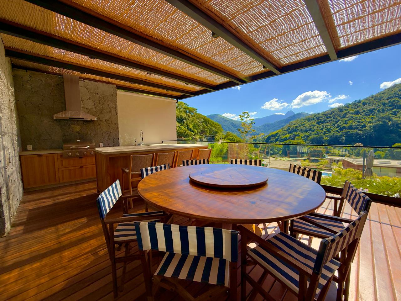 Excelente residência em em estilo contemporânio condomínio de alto padrão, com fino acabamento. Terreno com 1.513m² com lindo jardim paisagístico, ensolarada e com vista ampla. A casa ,com 405m² de área construída, conta com uma extença varanda integrada à área gourmet, salão em ambientes, lareira, sala de jantar, lavabo, excelente cozinha com armários planejados, sala íntima e 4 ótimas suítes,(ar condicionaddo nos principais cômodos da casa). Lazer com piscina em deck de madeira, alpendre, sala de jogos e academia com banheiro de apío, (além da área gourmet já mencionada). A bela propriedade ainda conta com área de serviço toda equipada, dep. para empregada completa e garagem coberta para dois autos.