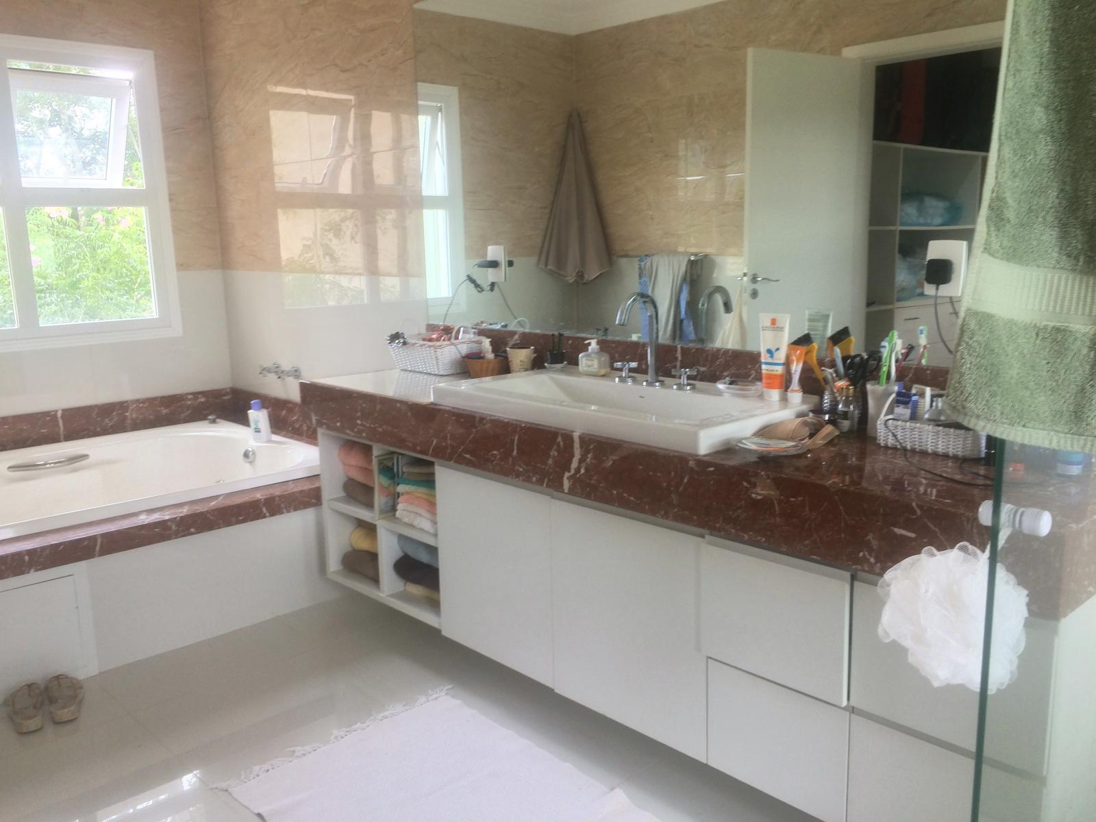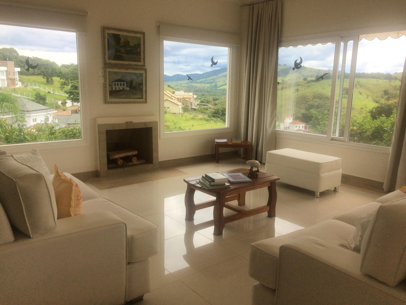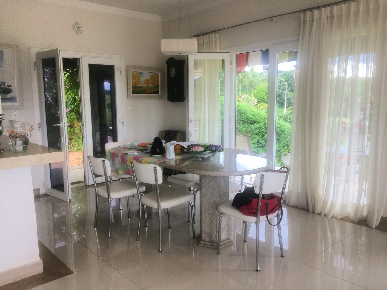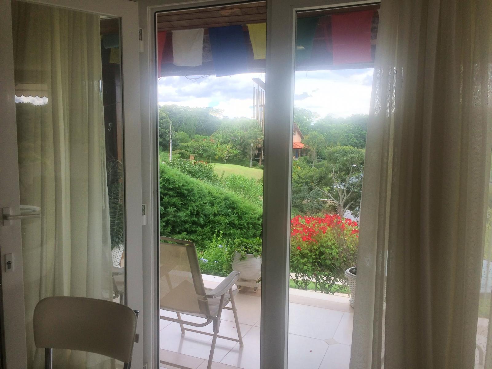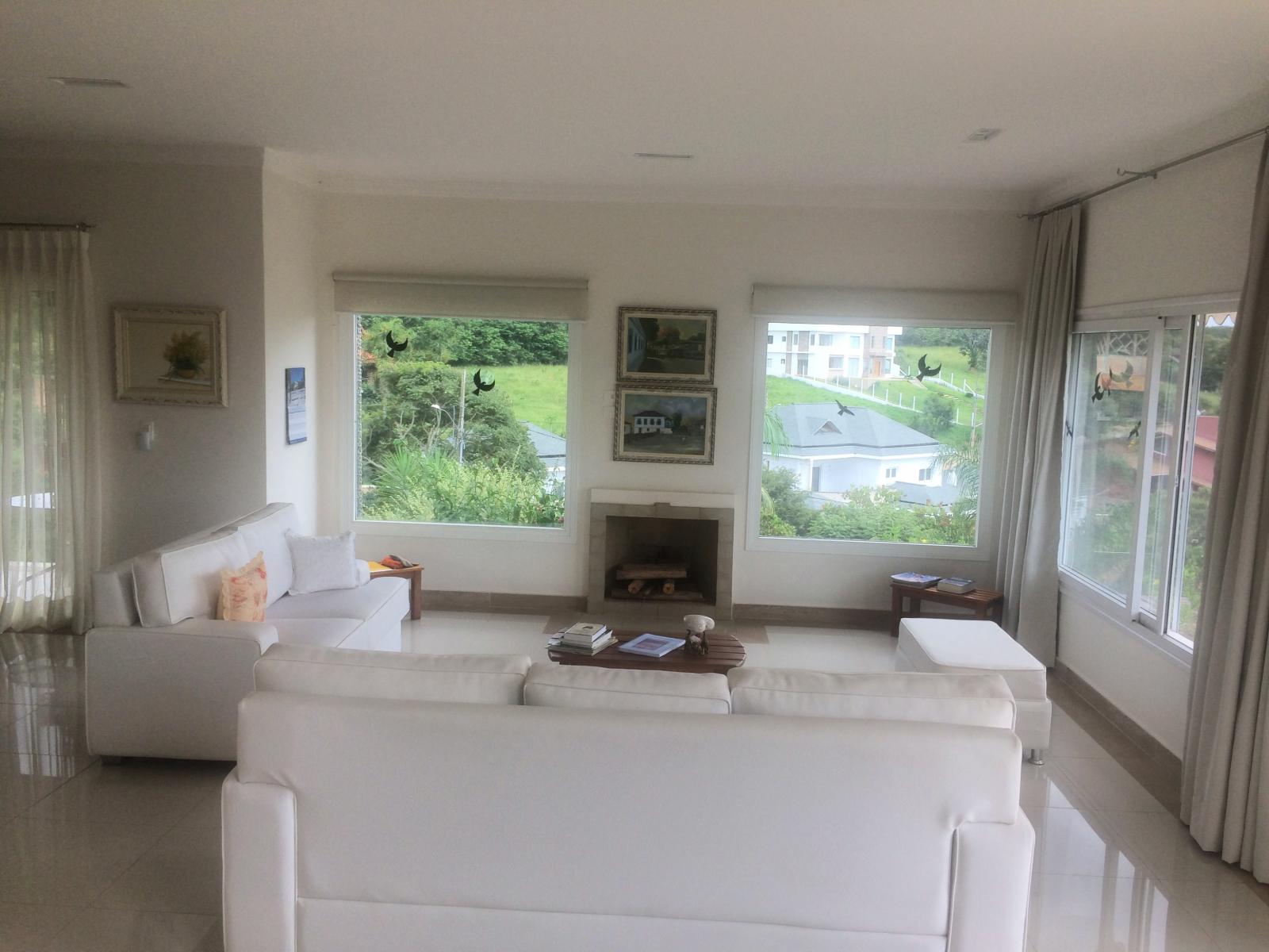 Moderna casa em condomínio ensolarada e com linda vista. A casa, toda com muito vidro e fino acabamento, é composta por sala de estar com lareira, sala de jantar, lavabo, excelente cozinha com armários (bem clara e arejada), hall com escritório de apoio e 04 ótimas suítes com armários (a suíte master com escritório, hidro e closet). Excelente espaço para meditação com deck solarium. A propriedade conta ainda com um lindo jardim, área de serviço, dep. para empregada e garagem coberta para dois autos.