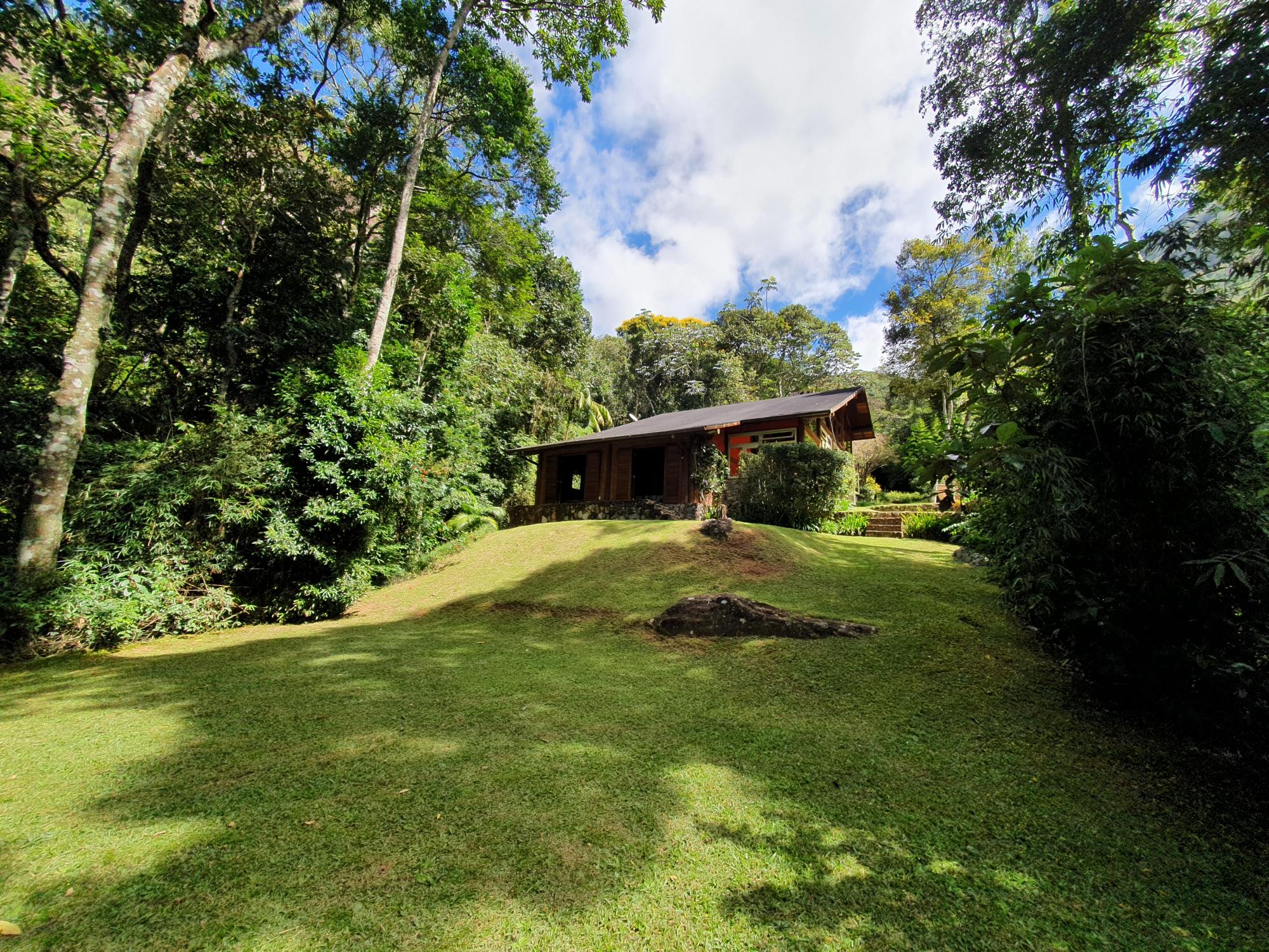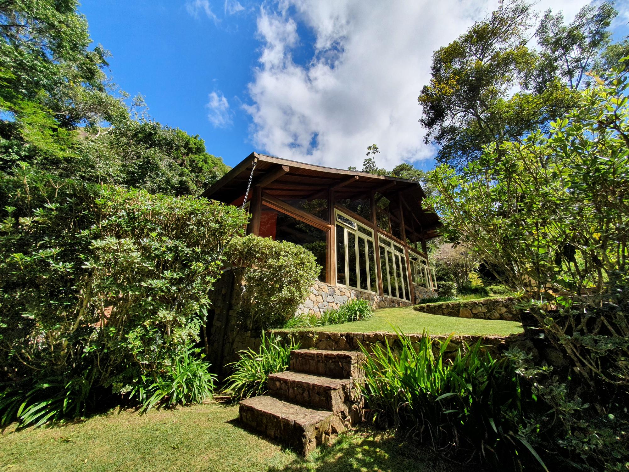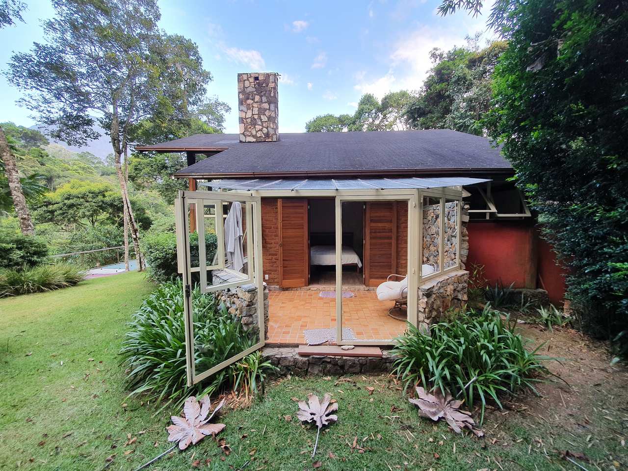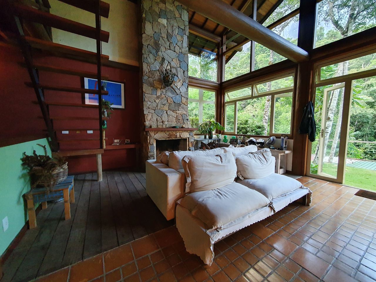Propriedade única em condomínio para os amantes da natureza, com 19.000m² em meio a mata atlântica. Ar puro das montanhas e riacho de águas cristalinas. Com belo projeto, totalmente integrado a natureza, a casa é composta por uma espaçosa sala de estar com lareira, sala de jantar, mezanino, banheiro social, 4 quartos sendo 02 suítes, (a principal com varanda fechada em vidros), espaçosa cozinha, despensa e banheiro de empregada. Lazer com piscina de água natural e sauna. Aconchegante cabana com varanda e banheiro. Lindo mirante em deck de madeira.