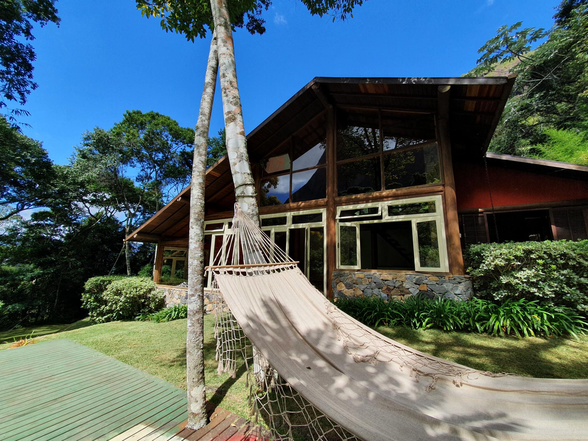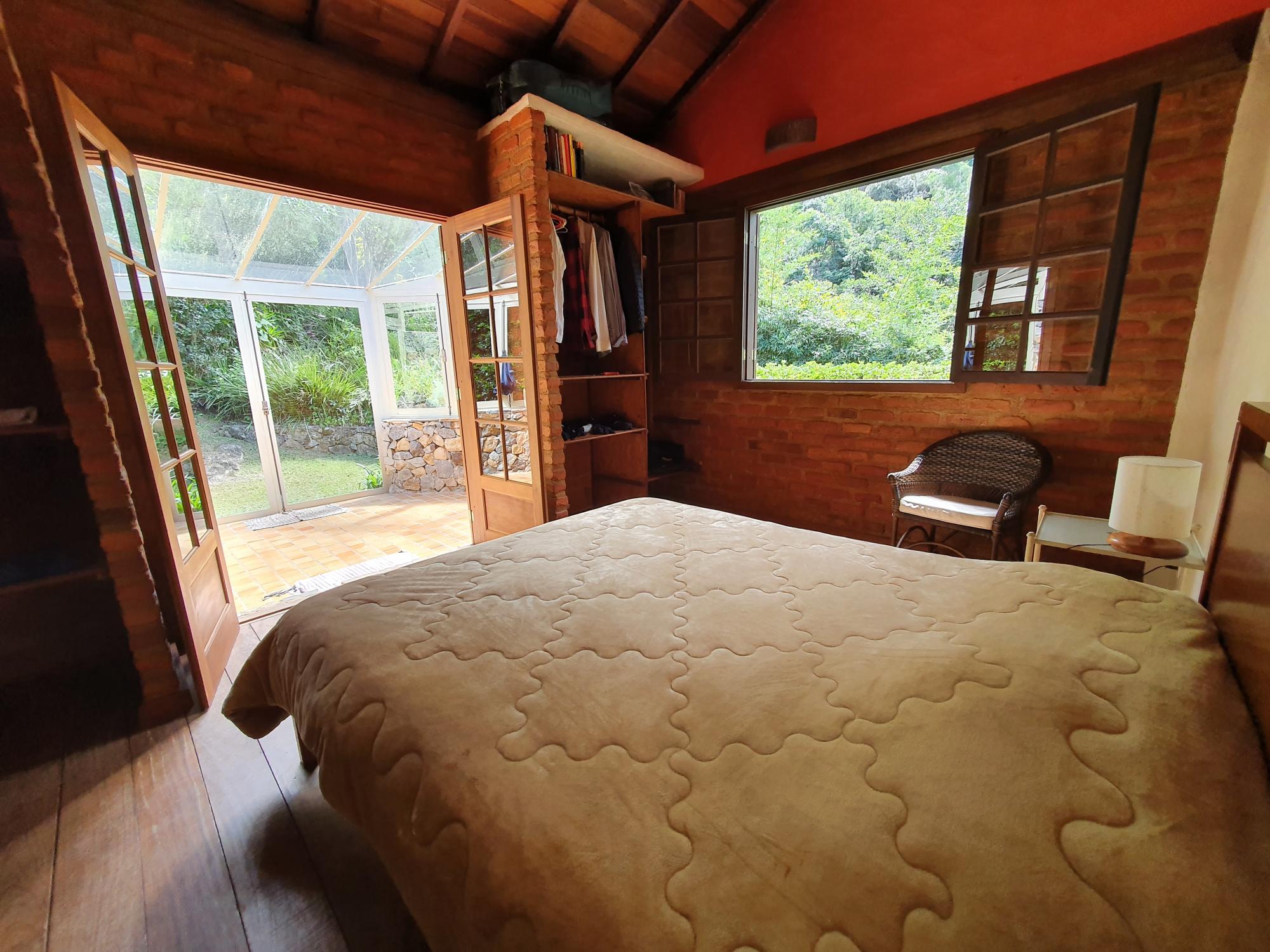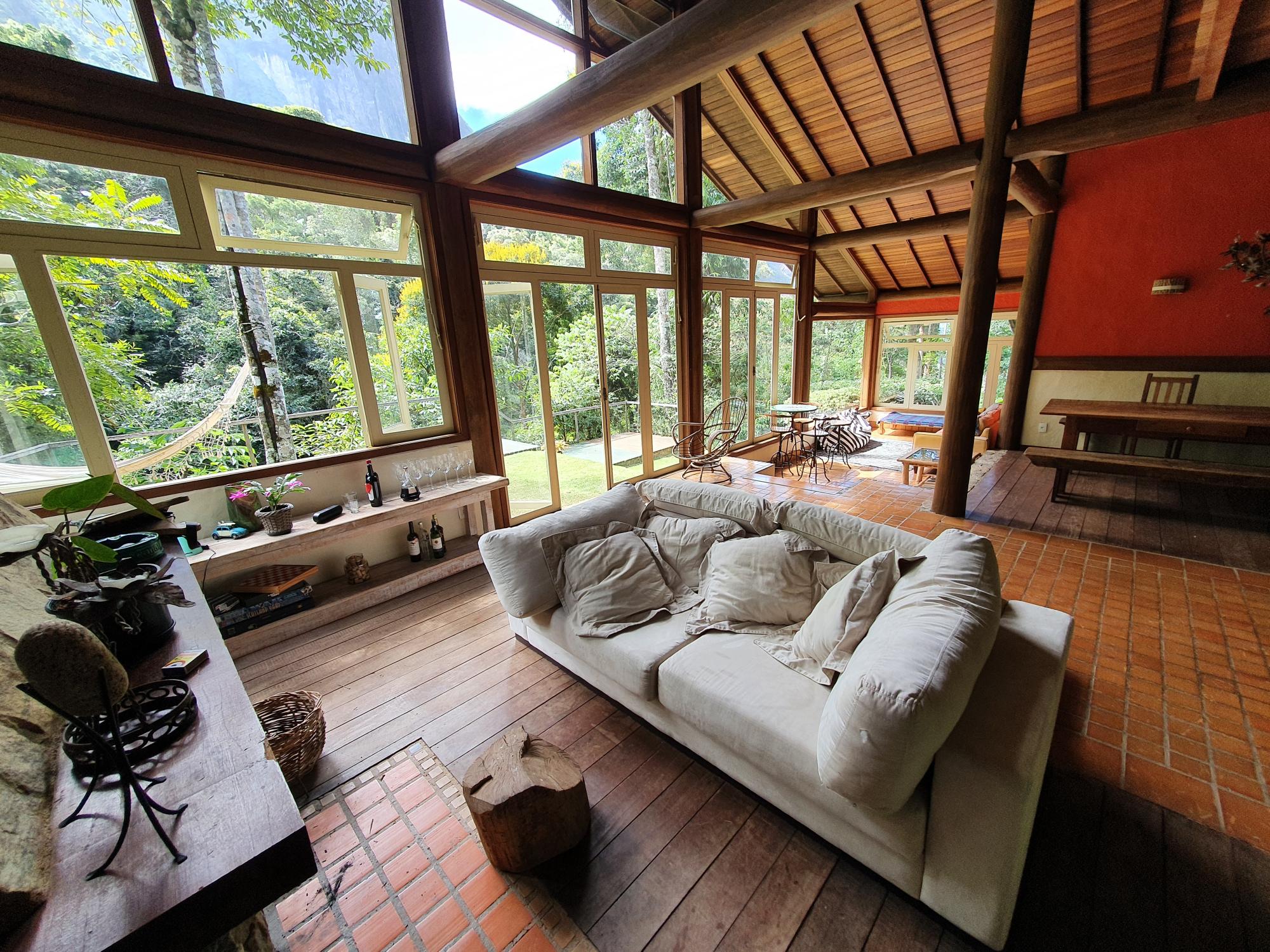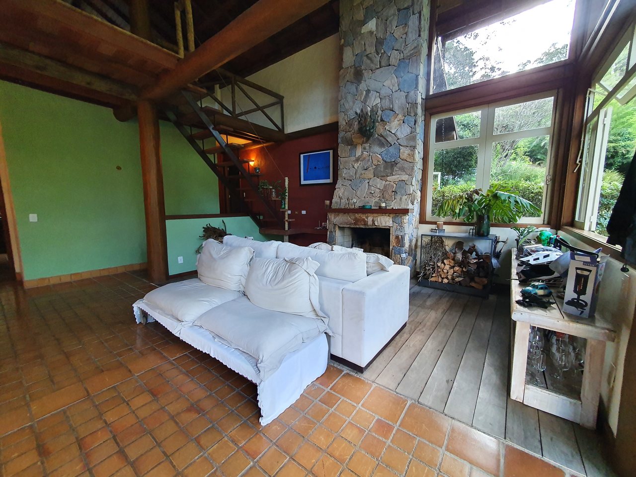 Propriedade única em condomínio para os amantes da natureza, com 19.000m² em meio a mata atlântica. Ar puro das montanhas e riacho de águas cristalinas. Com belo projeto, totalmente integrado a natureza, a casa é composta por uma espaçosa sala de estar com lareira, sala de jantar, mezanino, banheiro social, 4 quartos sendo 02 suítes, (a principal com varanda fechada em vidros), espaçosa cozinha, despensa e banheiro de empregada. Lazer com piscina de água natural e sauna. Aconchegante cabana com varanda e banheiro. Lindo mirante em deck de madeira.
