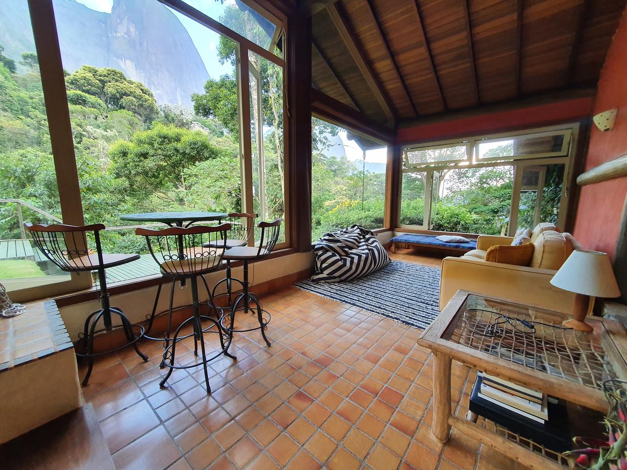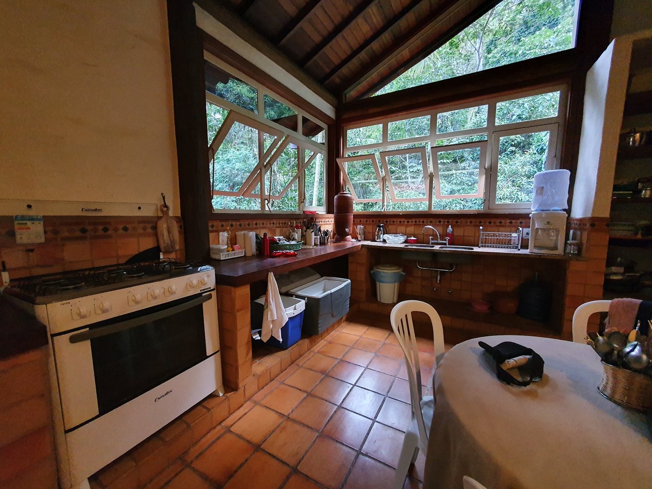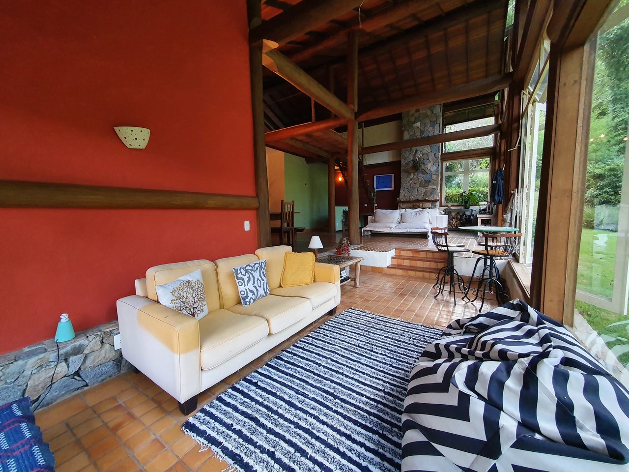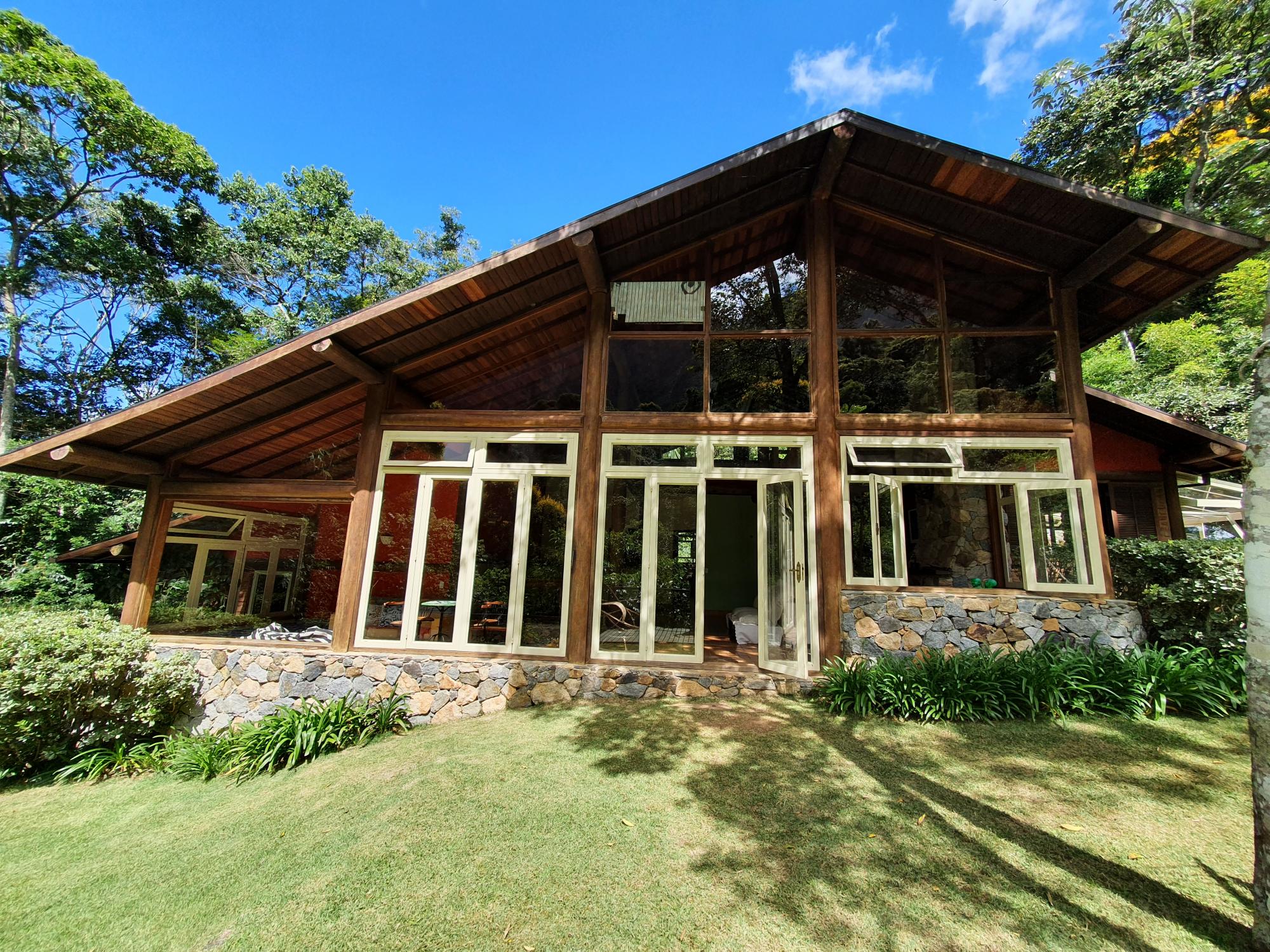 Propriedade única em condomínio para os amantes da natureza, com 19.000m² em meio a mata atlântica. Ar puro das montanhas e riacho de águas cristalinas. Com belo projeto, totalmente integrado a natureza, a casa é composta por uma espaçosa sala de estar com lareira, sala de jantar, mezanino, banheiro social, 4 quartos sendo 02 suítes, (a principal com varanda fechada em vidros), espaçosa cozinha, despensa e banheiro de empregada. Lazer com piscina de água natural e sauna. Aconchegante cabana com varanda e banheiro. Lindo mirante em deck de madeira.