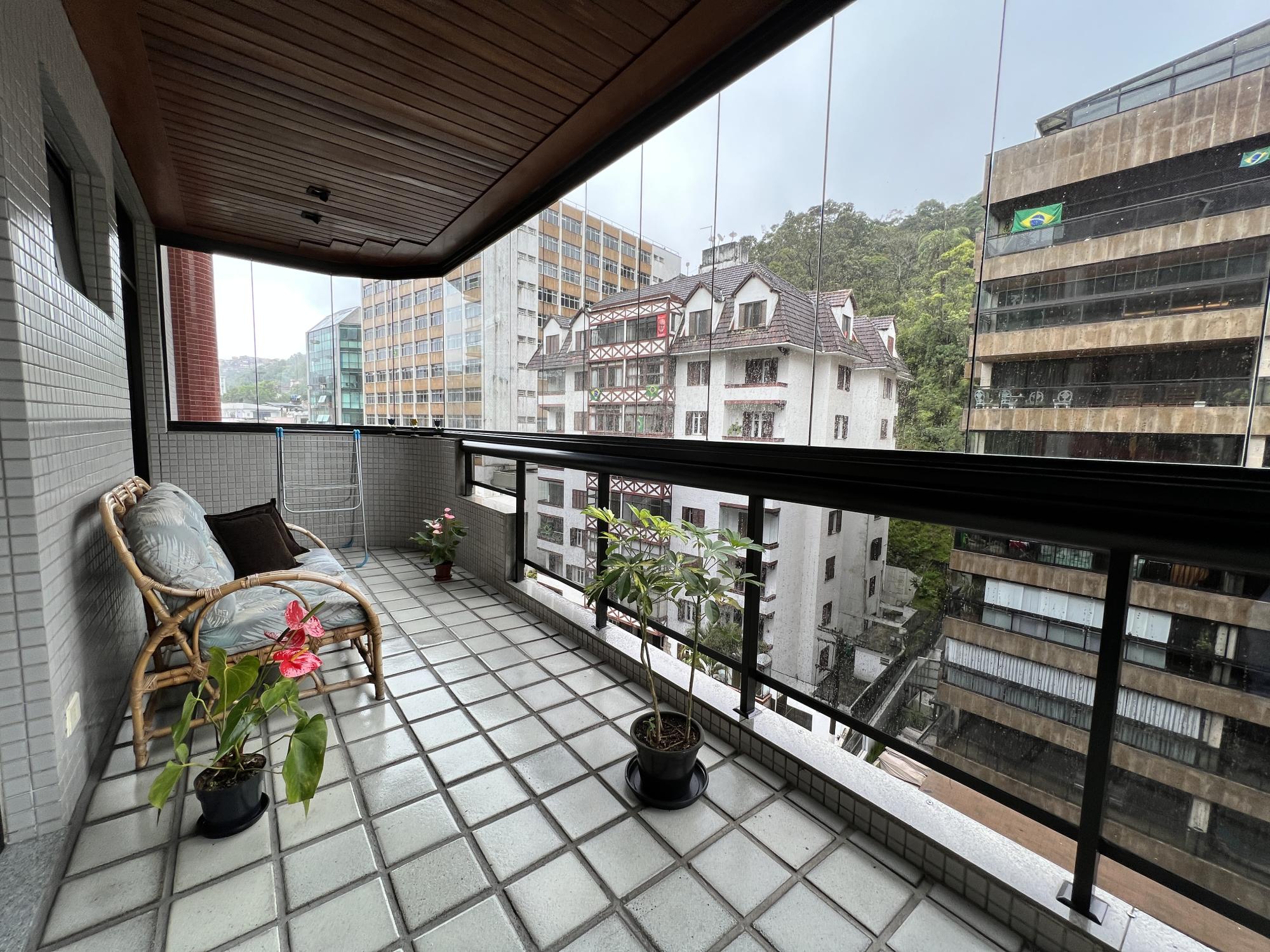 Ótimo apartamento no Centro de Petrópolis, composto por sala dois ambientes, bar, varandão, cozinha com armários, banheiro social e 03 quartos sendo 01 suíte com hidro. Lazer do condomínio com piscina aquecida, sauna e salão de festas. Duas vagas de garagem e portaria 24 horas.