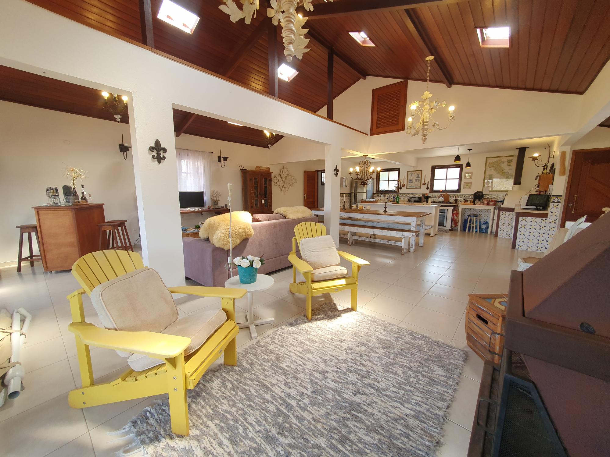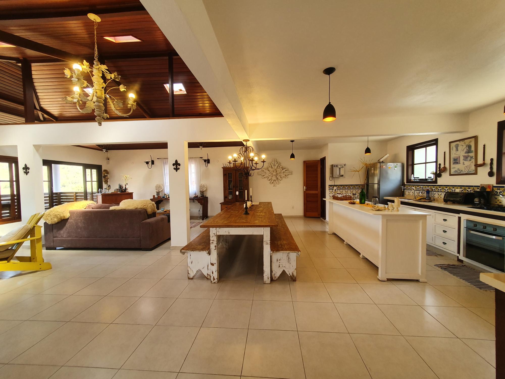 Casa impecável com varanda, espaçosa sala em ambientes, cozinha conceito aberto, 5 quartos sendo 4 suítes. Stúdio independente para hóspedes com ampla sala, varanda, quarto, cozinha e banheiro. Área de serviços e lavanderia.Lazer com Piscina. Lazer do condomínio com piscina, campo de futebol e salão de festas.
