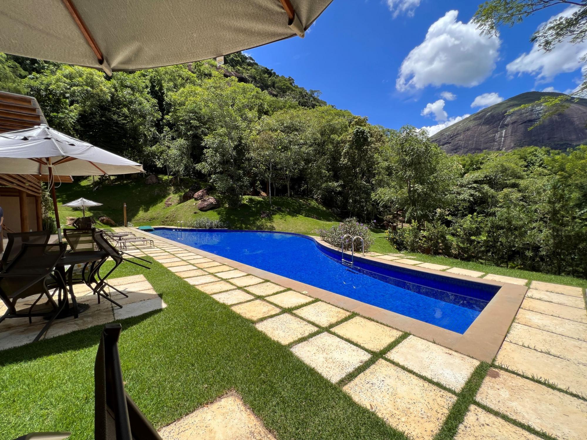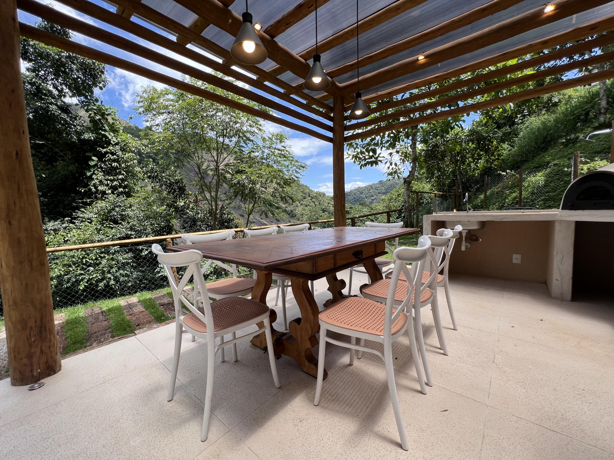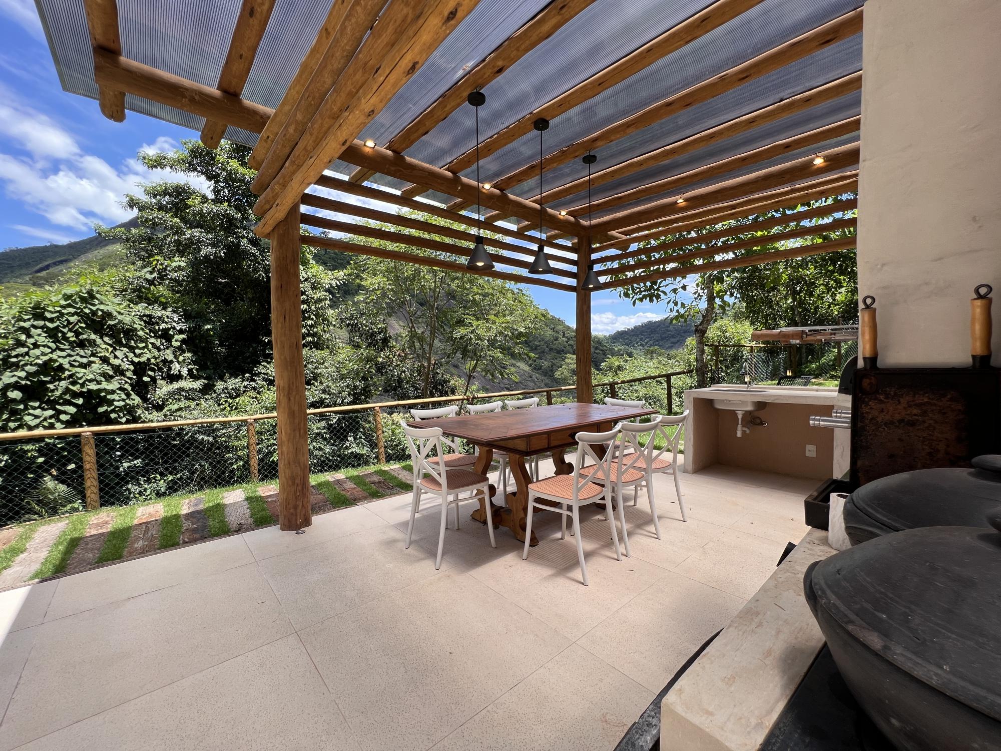 Casa em condomínio no vale de Secretário junto à Cachoeira da Rocinha. Vista para as montanhas e a Pedra Maria Comprida. Possui três suítes com acabamento e projeto de arquitetura, assim como os banheiros. Conta com uma cozinha integrada à uma sala ampla, cortina de vidro em toda a área, lareira e móveis planejados. Na parte externa, churrasqueira, forno de pizza à lenha e espaço com ducha e espreguiçadeiras. Air split nos três quartos e dois na sala. Lavabo integrado a área da sala. Jardim com sprinklers e câmeras de vigilância já instaladas em todo o terreno da casa. Além disso, há um espaço na parte inferior do terreno para futura horta ou gazebo em meio à mata. Lazer completo, com piscinas, é do condomínio.