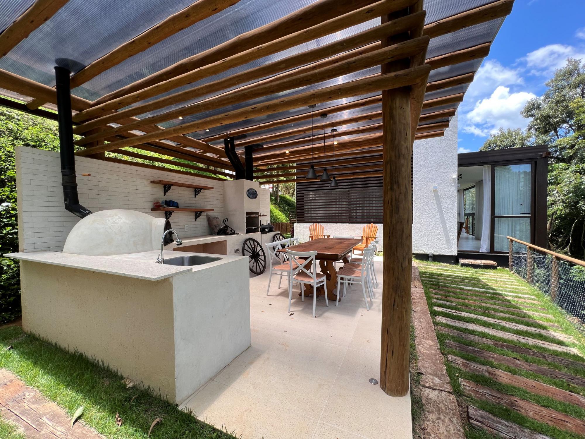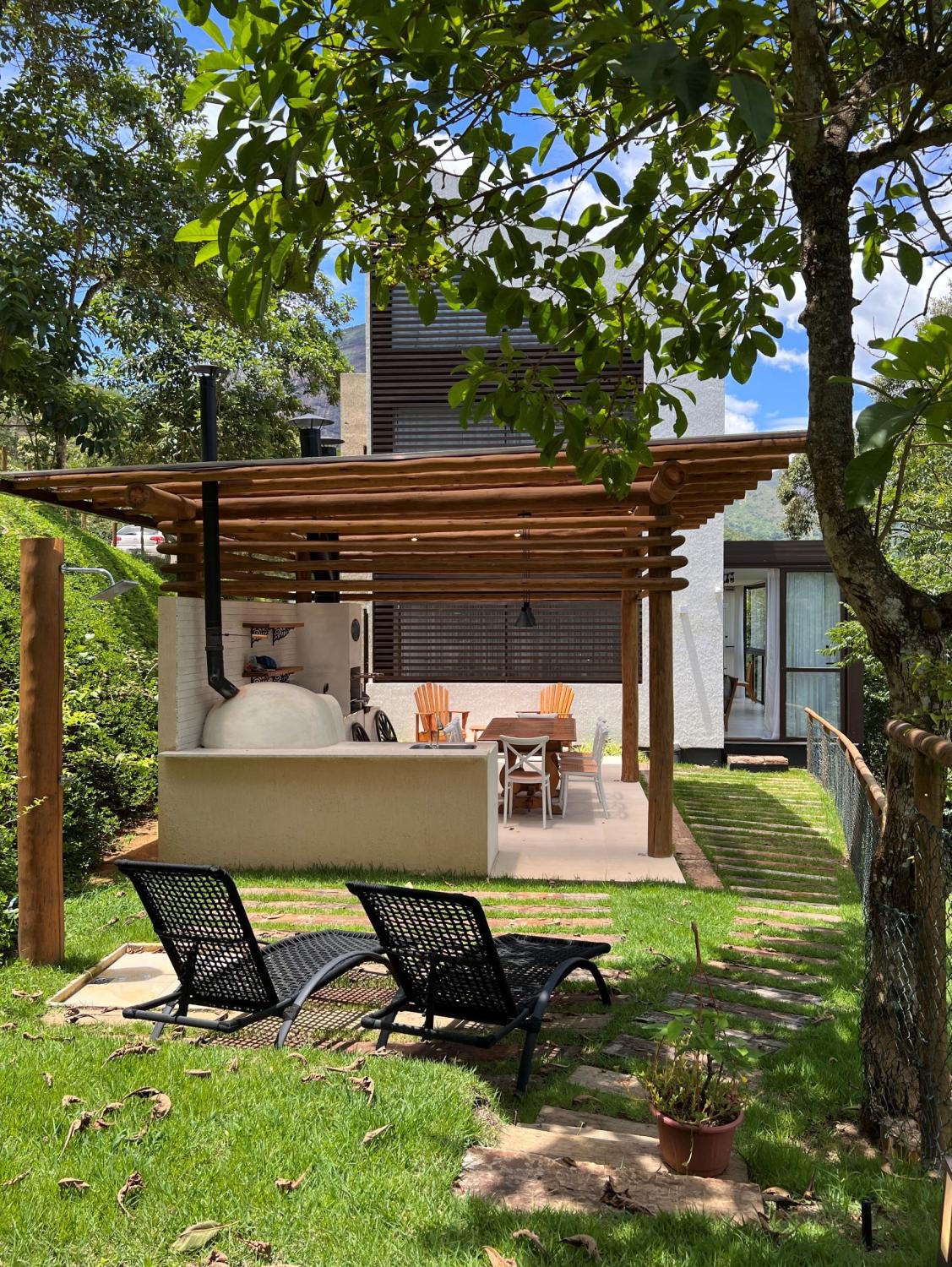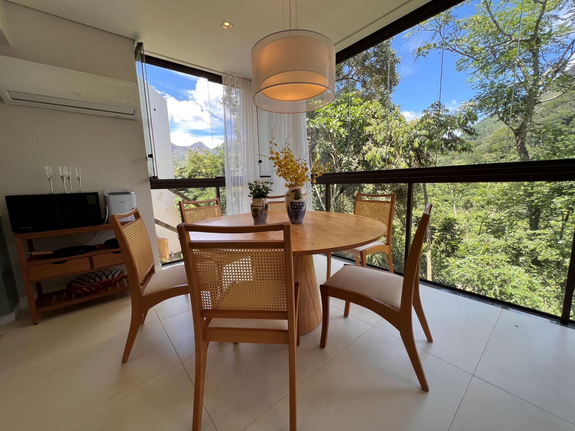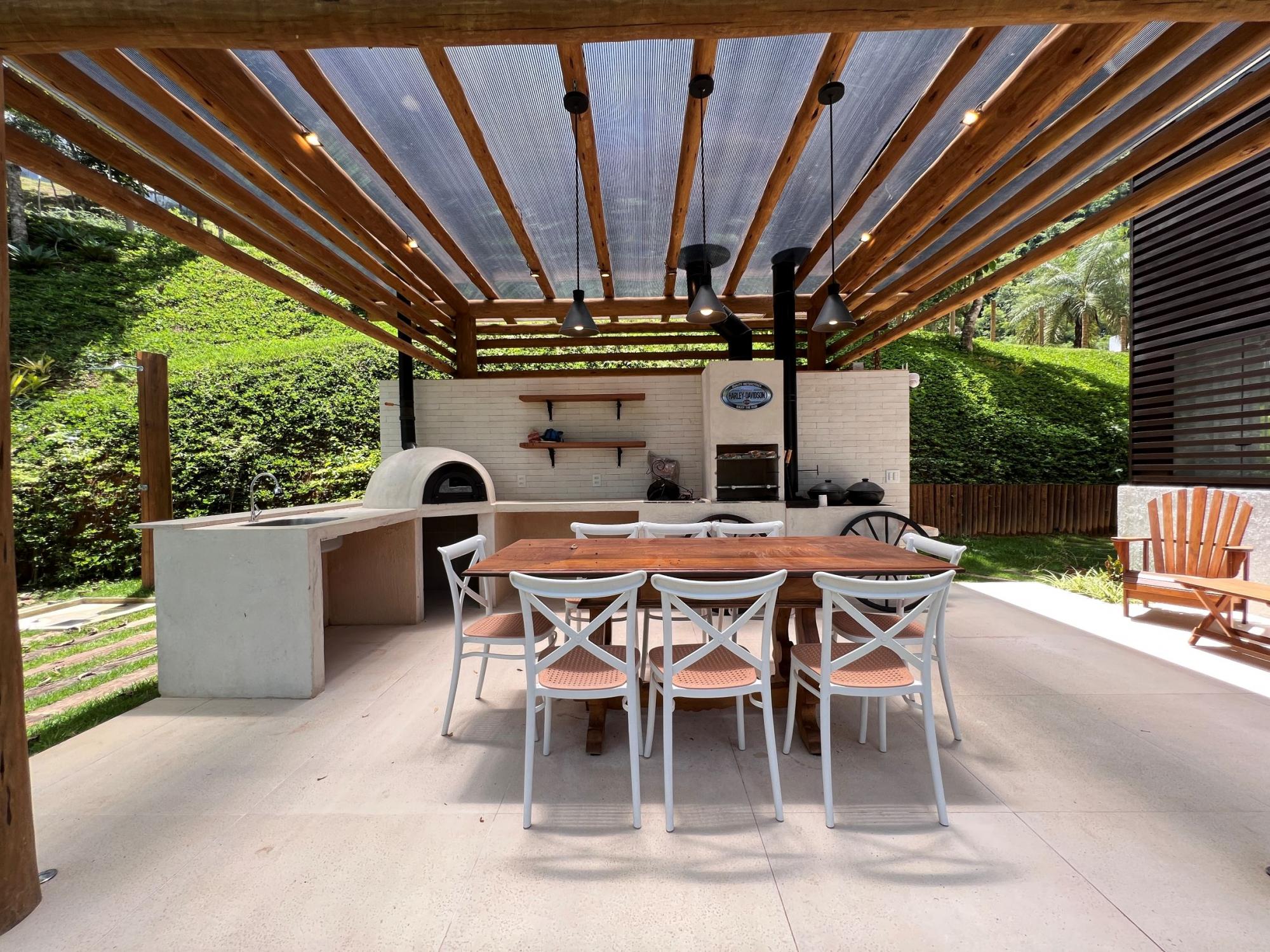 Casa em condomínio no vale de Secretário junto à Cachoeira da Rocinha. Vista para as montanhas e a Pedra Maria Comprida. Possui três suítes com acabamento e projeto de arquitetura, assim como os banheiros. Conta com uma cozinha integrada à uma sala ampla, cortina de vidro em toda a área, lareira e móveis planejados. Na parte externa, churrasqueira, forno de pizza à lenha e espaço com ducha e espreguiçadeiras. Air split nos três quartos e dois na sala. Lavabo integrado a área da sala. Jardim com sprinklers e câmeras de vigilância já instaladas em todo o terreno da casa. Além disso, há um espaço na parte inferior do terreno para futura horta ou gazebo em meio à mata. Lazer completo, com piscinas, é do condomínio.