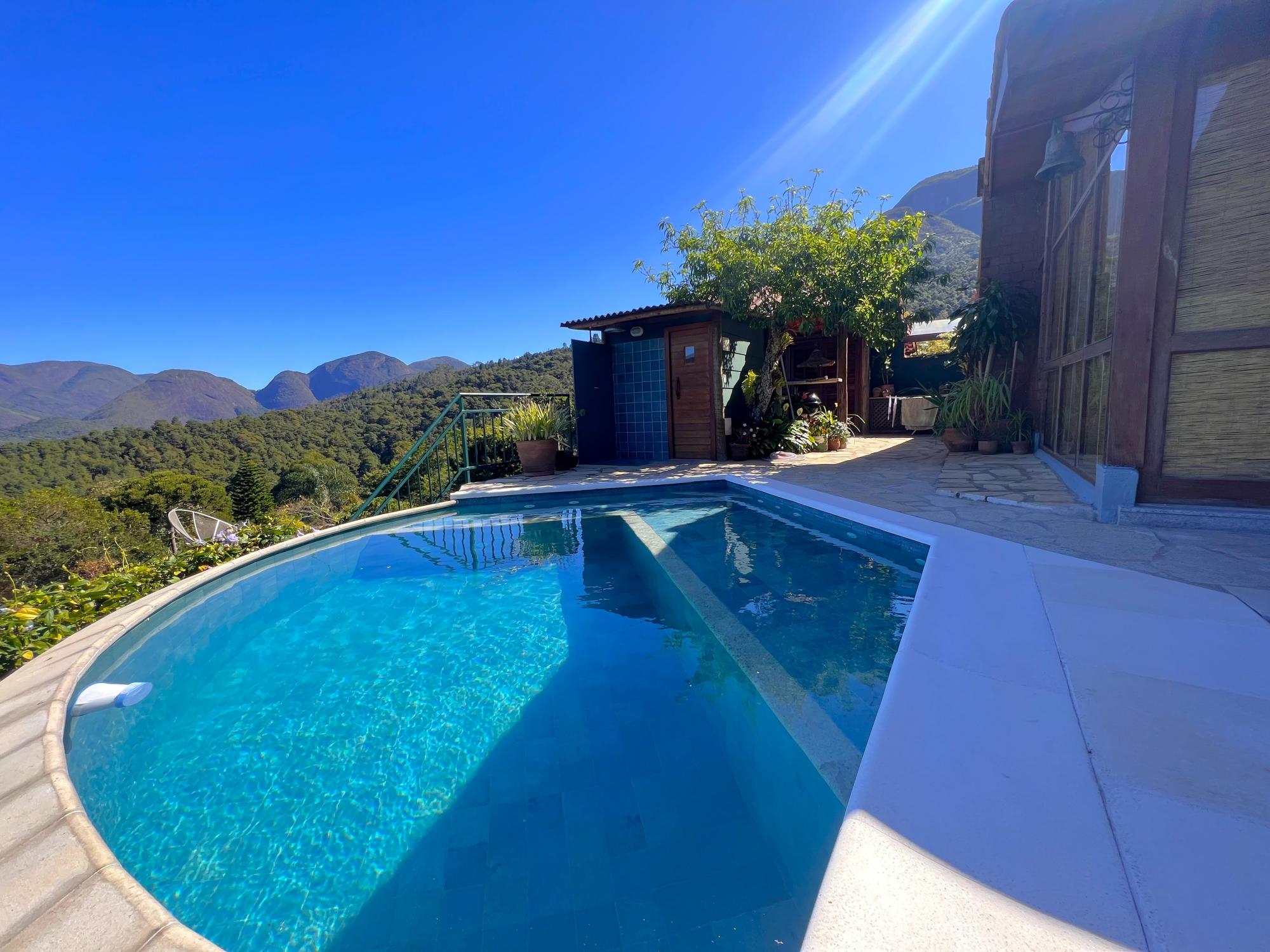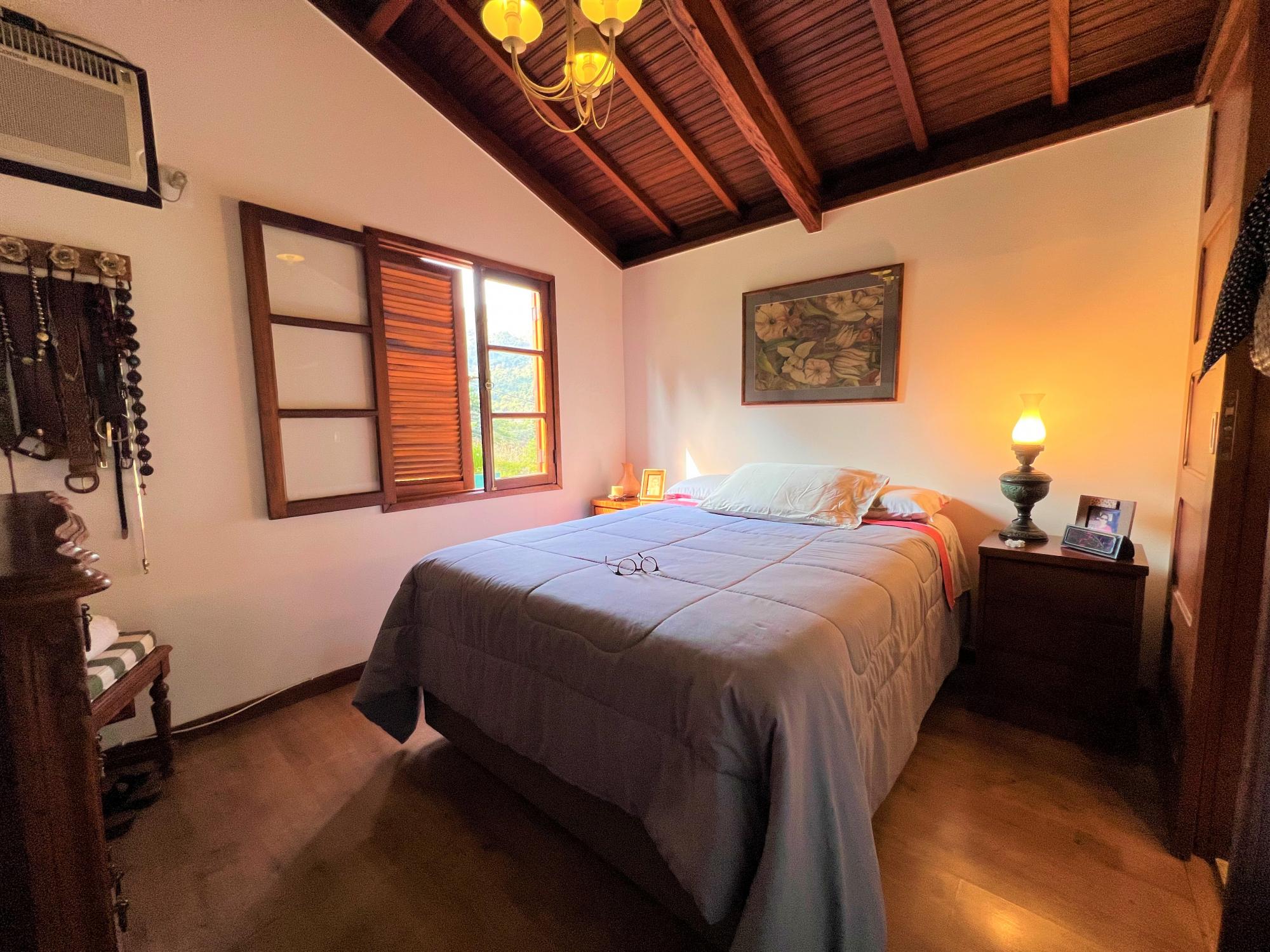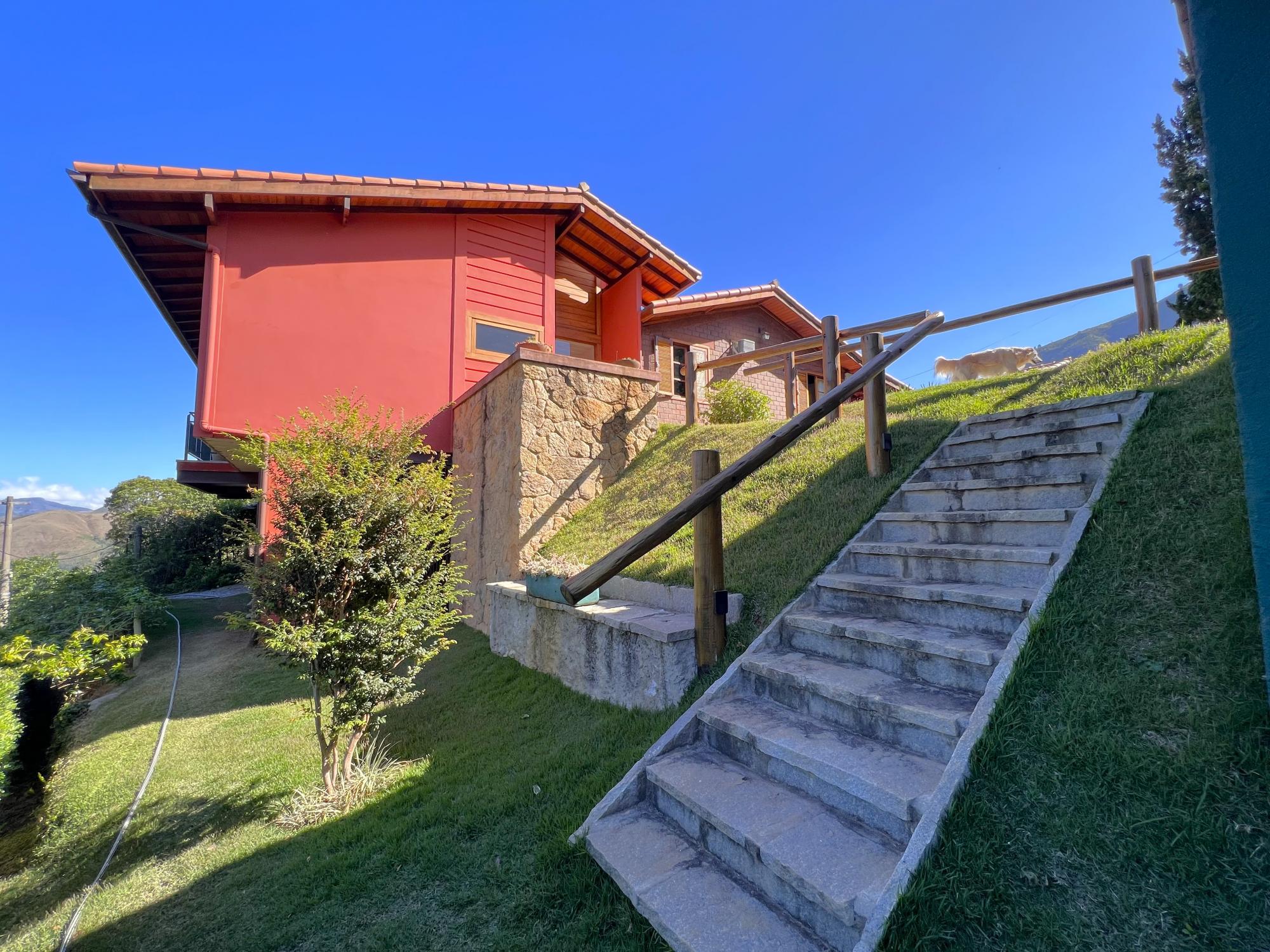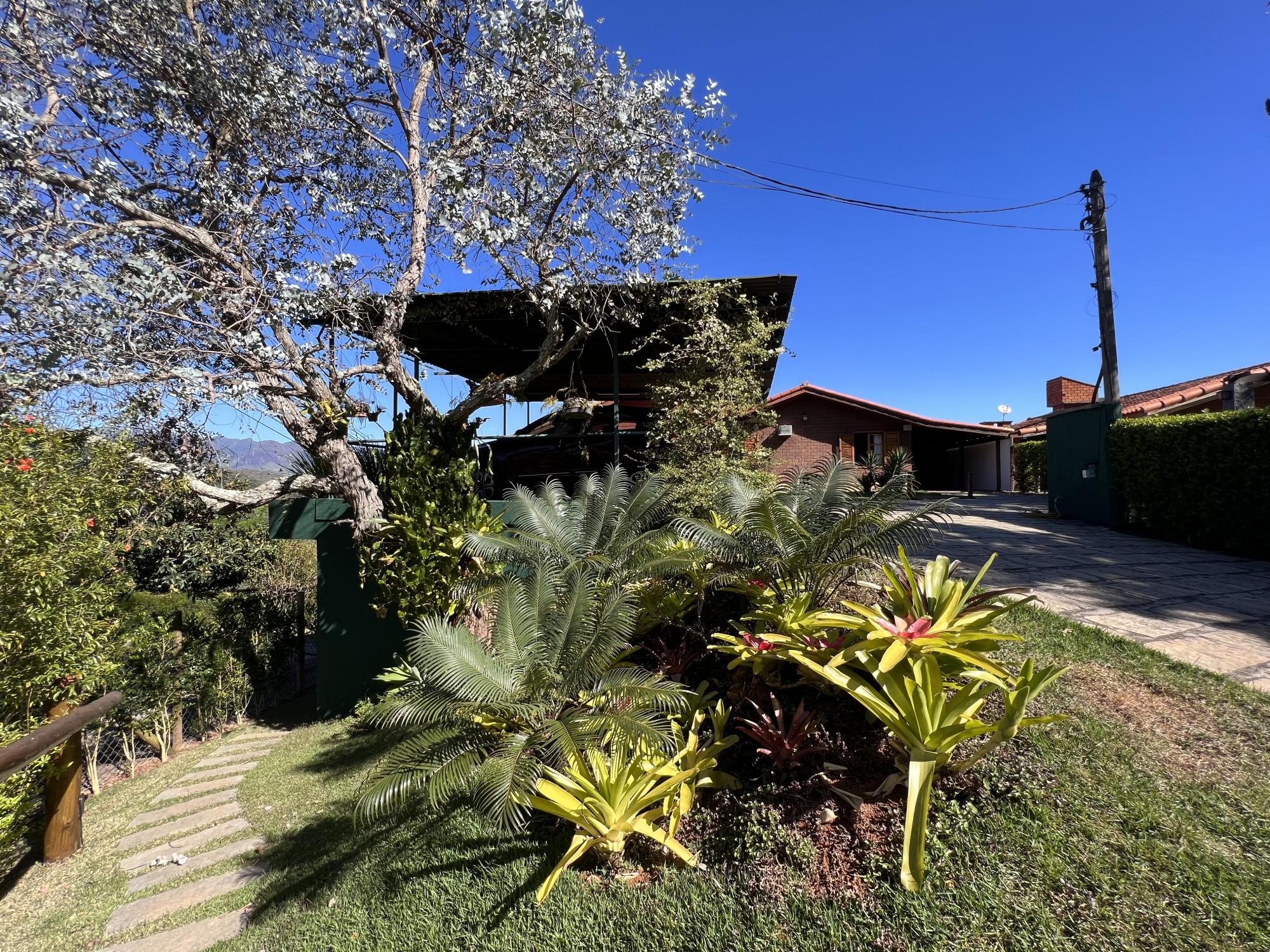Aconchegante casa, em local com encantadora vista para as montanhas. Agradável, ensolarada e bem arejada. Ela conta com salas de estar e jantar, 3 quartos, sendo 2 suítes, a master com 80 m2, com varanda, escritório e closet. Lazer linda piscina de borda infinita, sauna seca e ducha, A propriedade ainda conta, com sistema de captação de águas da chuva, ótimo espaço de 50 m2 e garagem coberta p/ 02 autos.