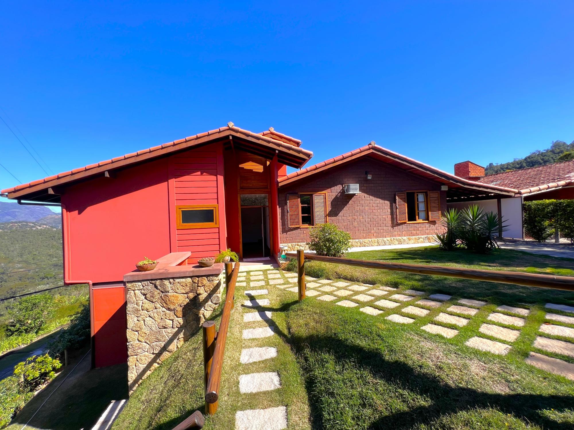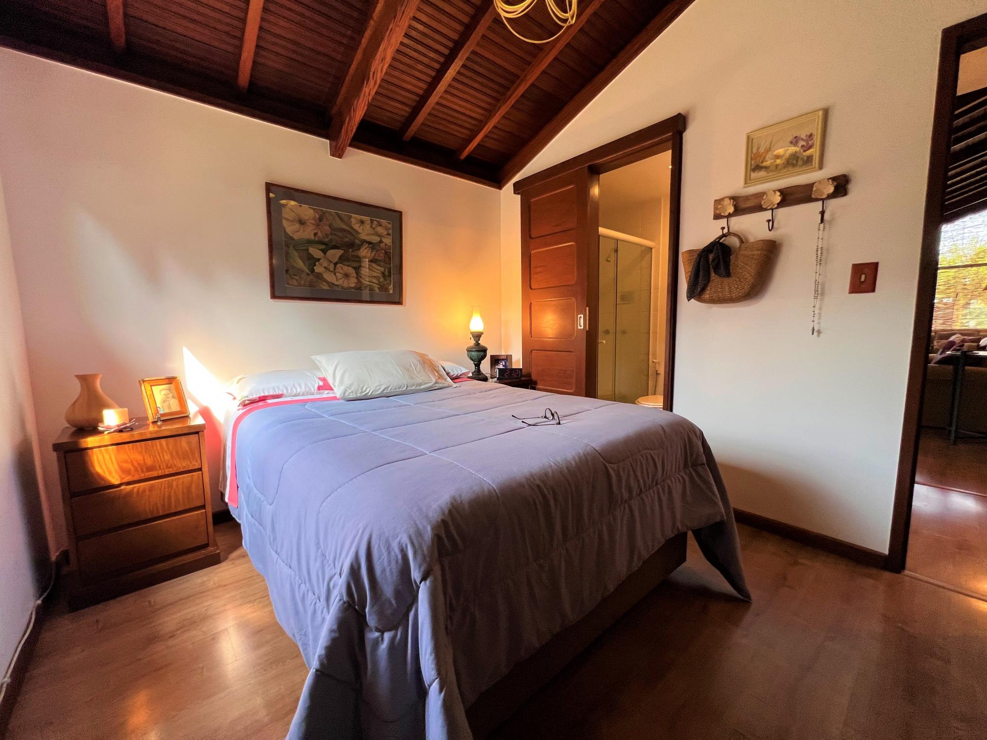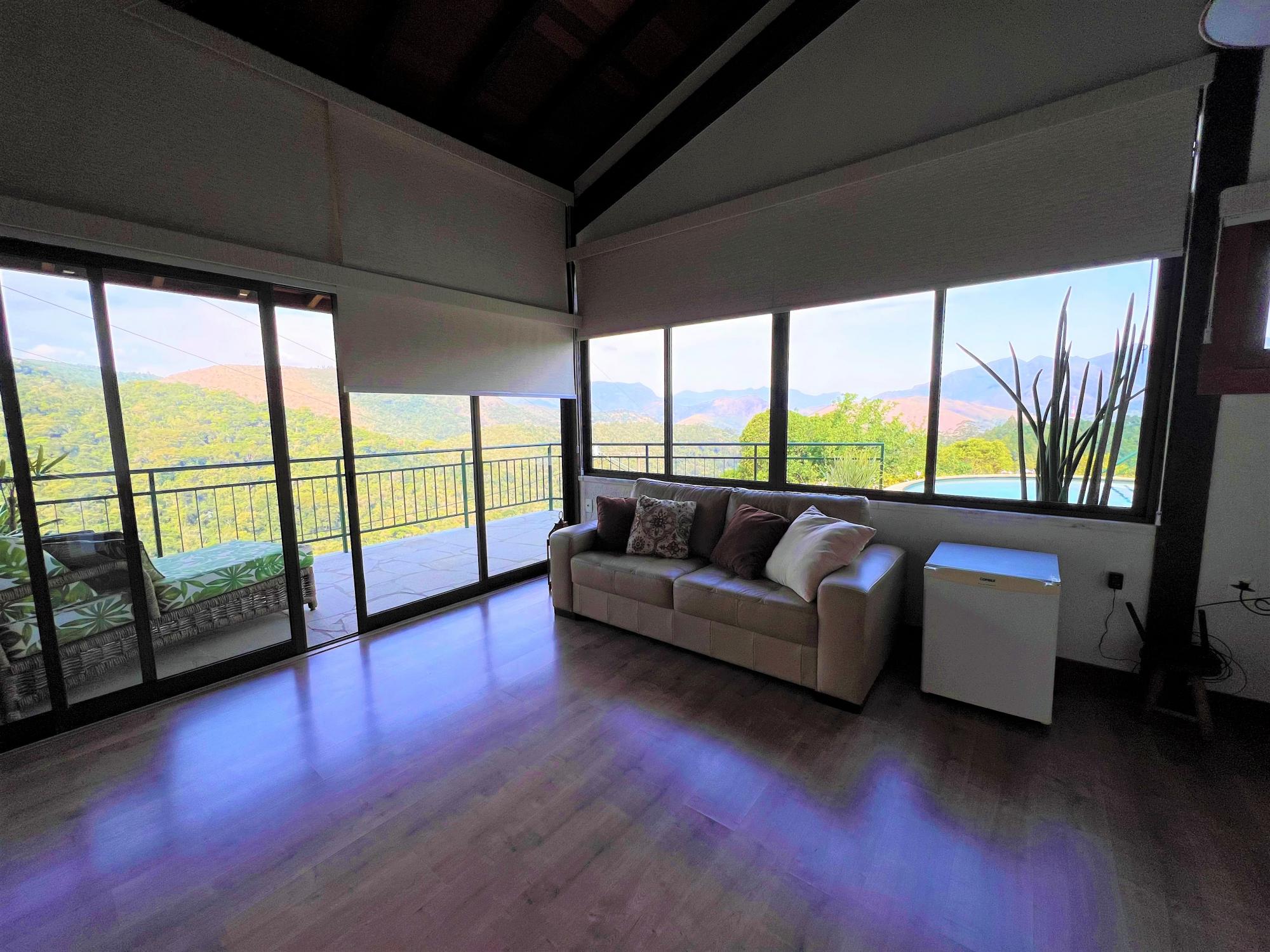 Aconchegante casa, em local com encantadora vista para as montanhas. Agradável, ensolarada e bem arejada. Ela conta com salas de estar e jantar, 3 quartos, sendo 2 suítes, a master com 80 m2, com varanda, escritório e closet. Lazer linda piscina de borda infinita, sauna seca e ducha, A propriedade ainda conta, com sistema de captação de águas da chuva, ótimo espaço de 50 m2 e garagem coberta p/ 02 autos.