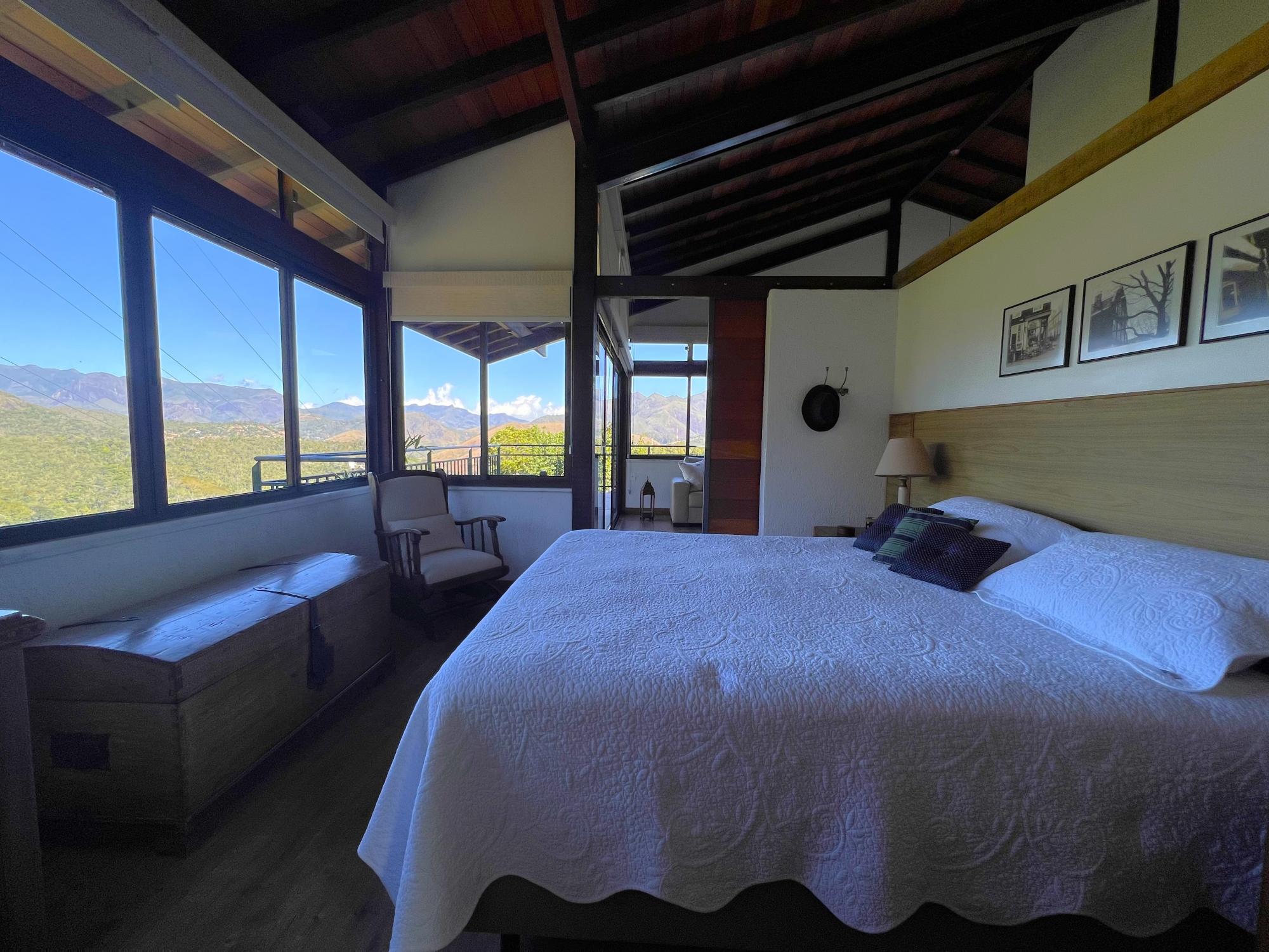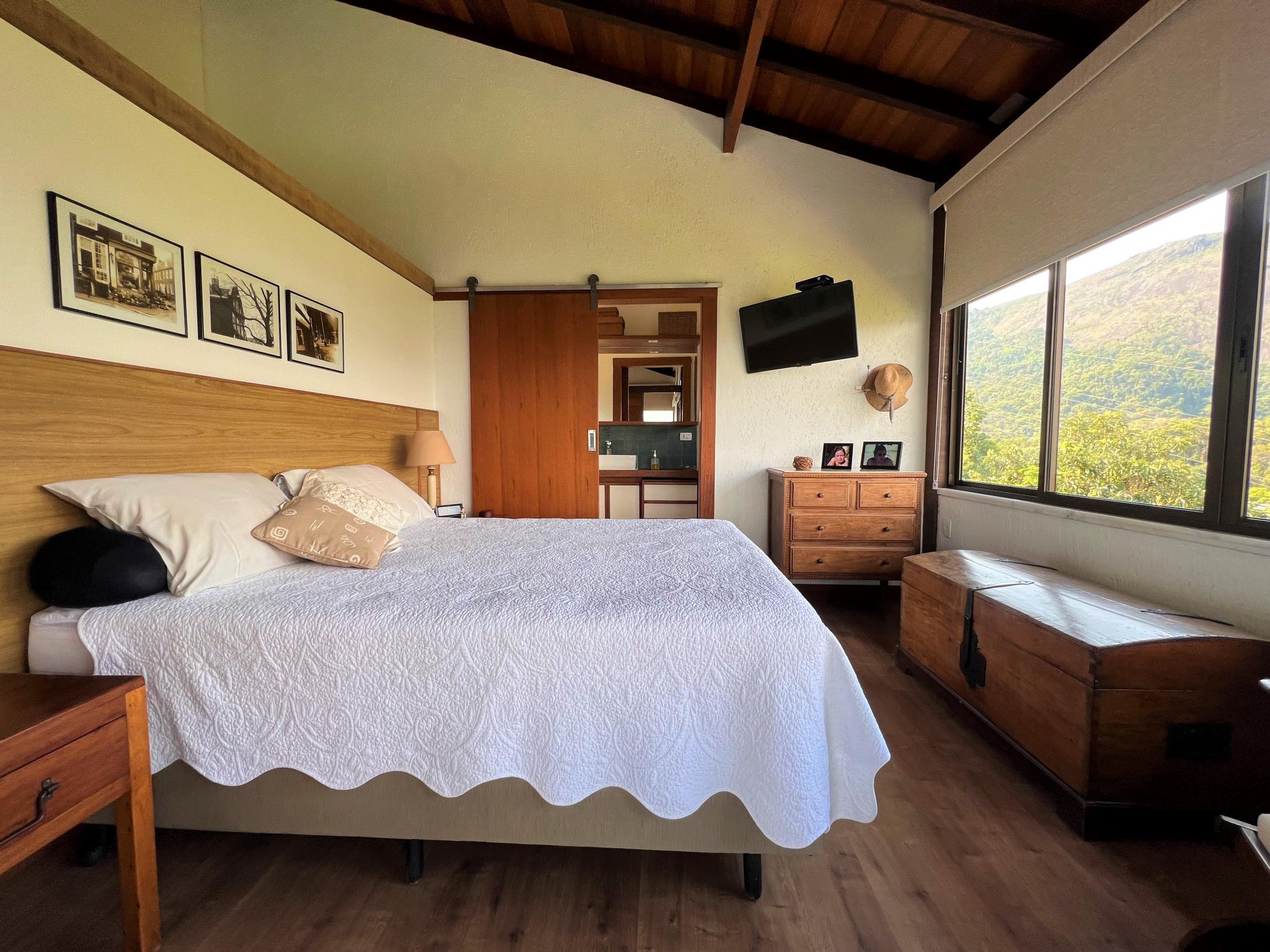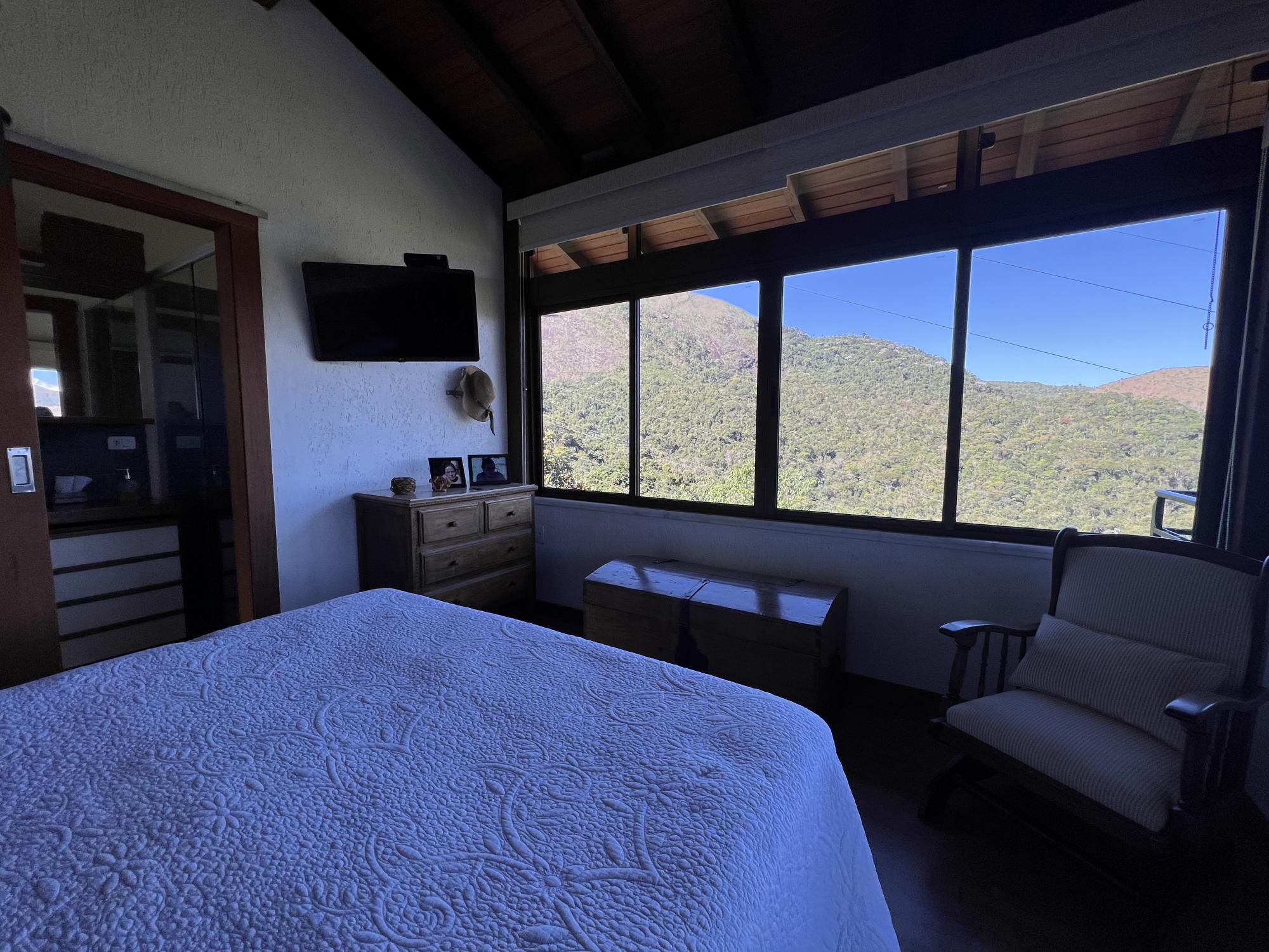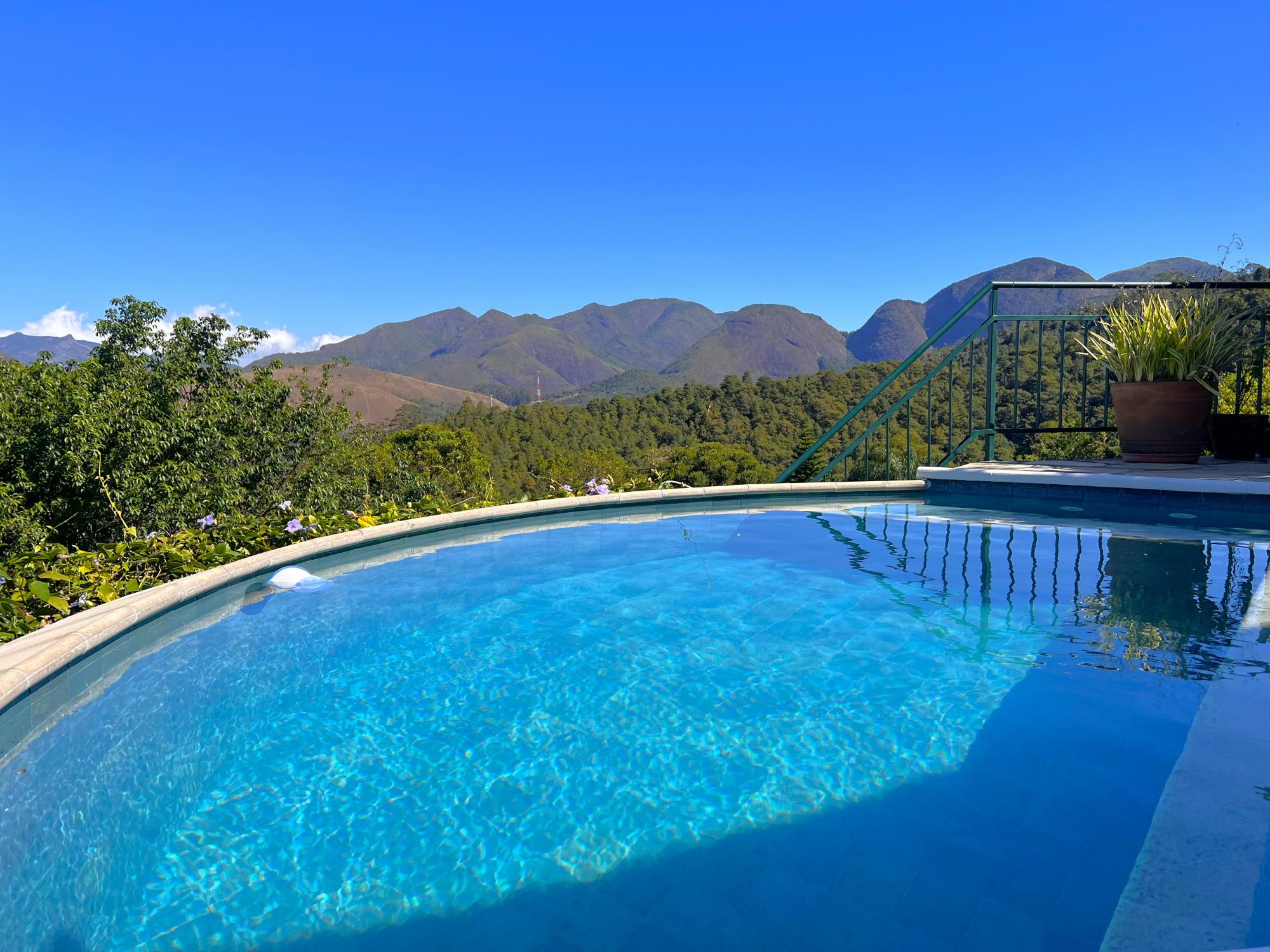 Aconchegante casa, em local com encantadora vista para as montanhas. Agradável, ensolarada e bem arejada. Ela conta com salas de estar e jantar, 3 quartos, sendo 2 suítes, a master com 80 m2, com varanda, escritório e closet. Lazer linda piscina de borda infinita, sauna seca e ducha, A propriedade ainda conta, com sistema de captação de águas da chuva, ótimo espaço de 50 m2 e garagem coberta p/ 02 autos.