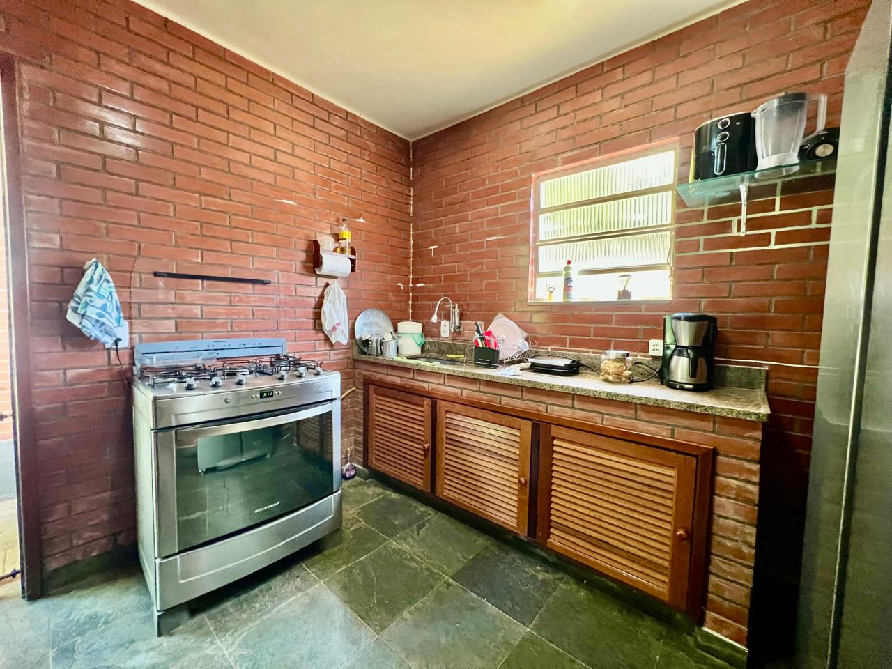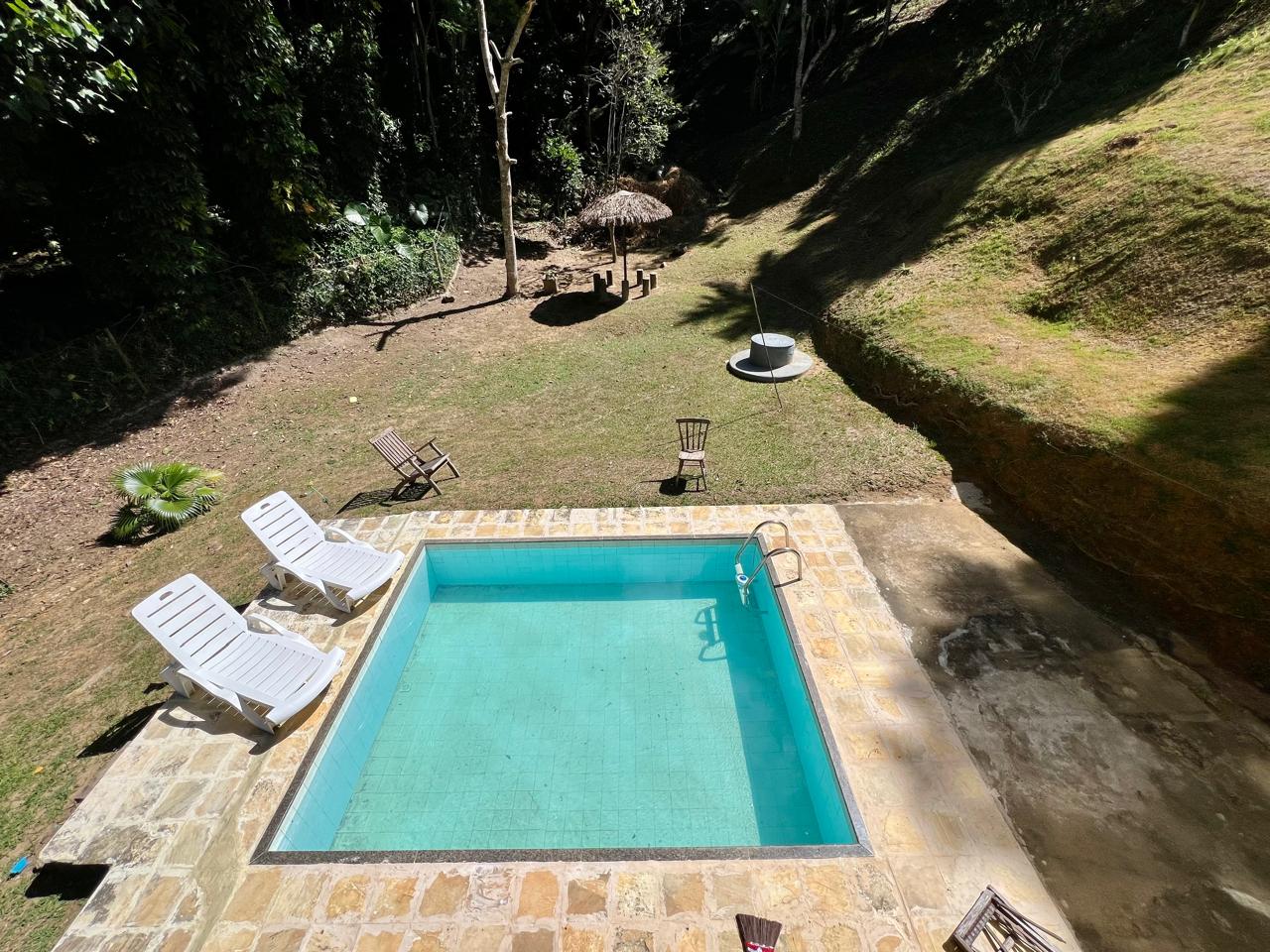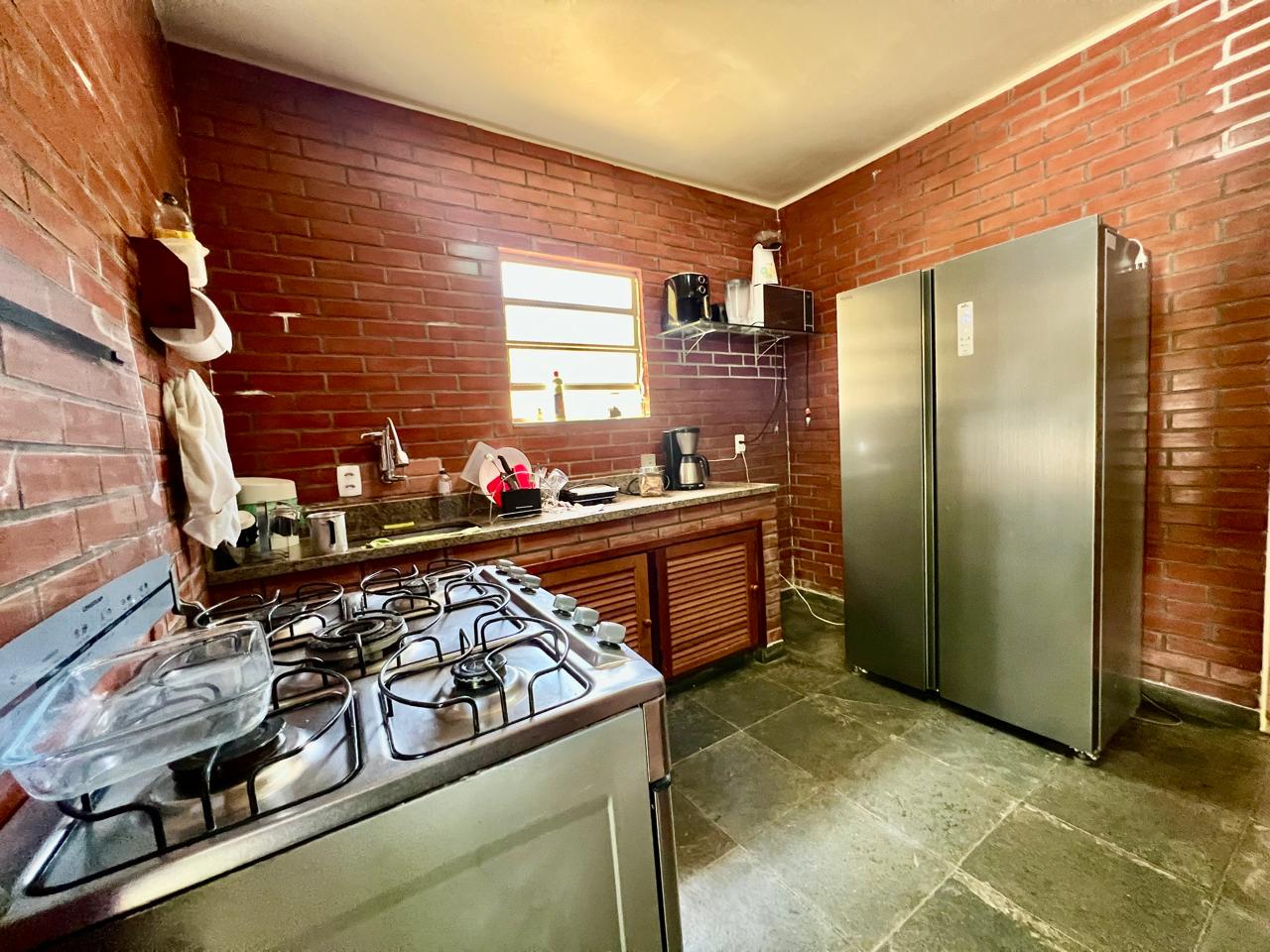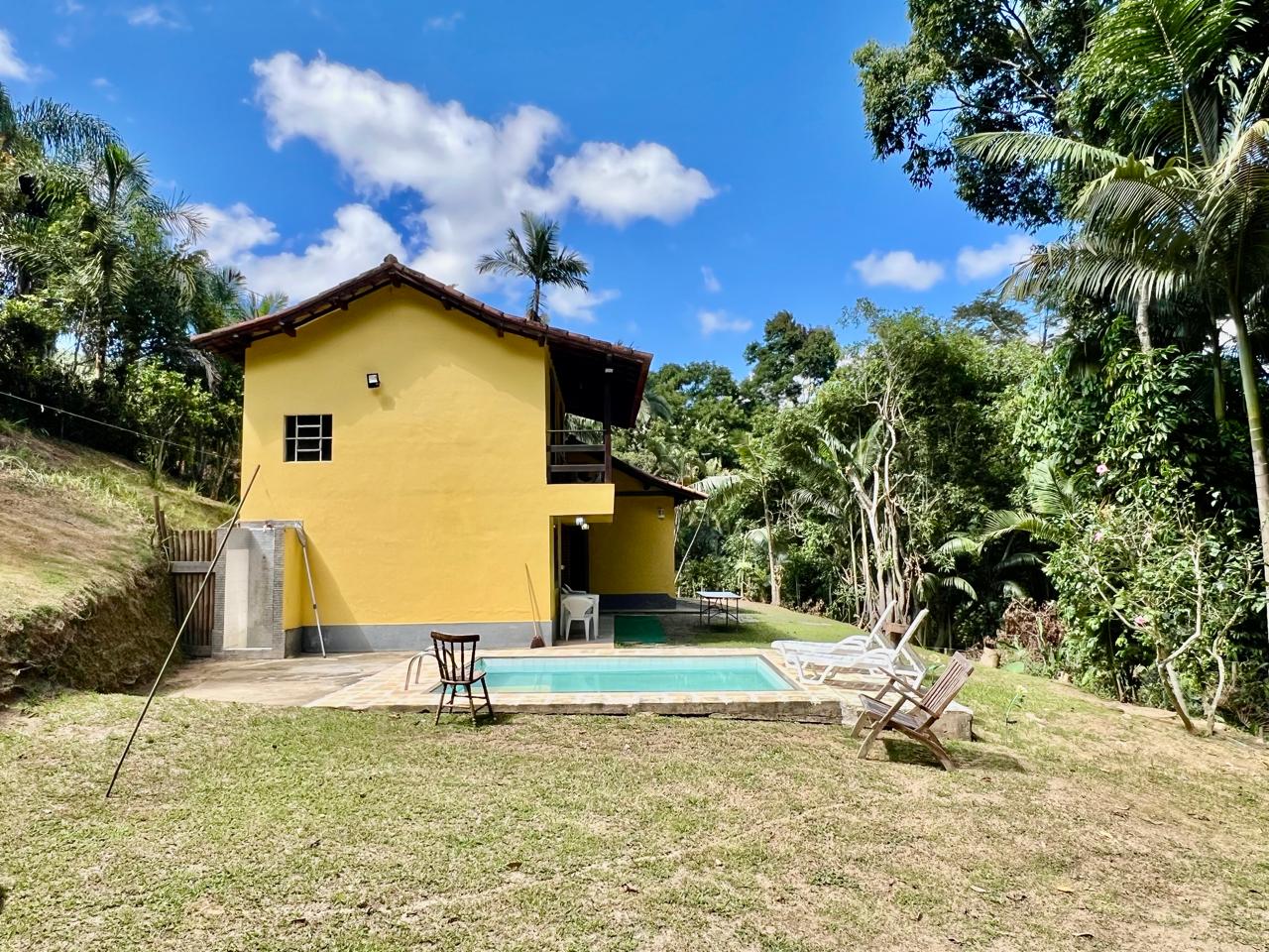 Varanda, sala dois ambientes, coizinha , banheiro social e 1 quarto com escritório. casa de hóspedes com 02 quartos com varanda, banheiro e pequena salinha. Lazer com piscina e área gourmet. Jardim gramado e arborizado.