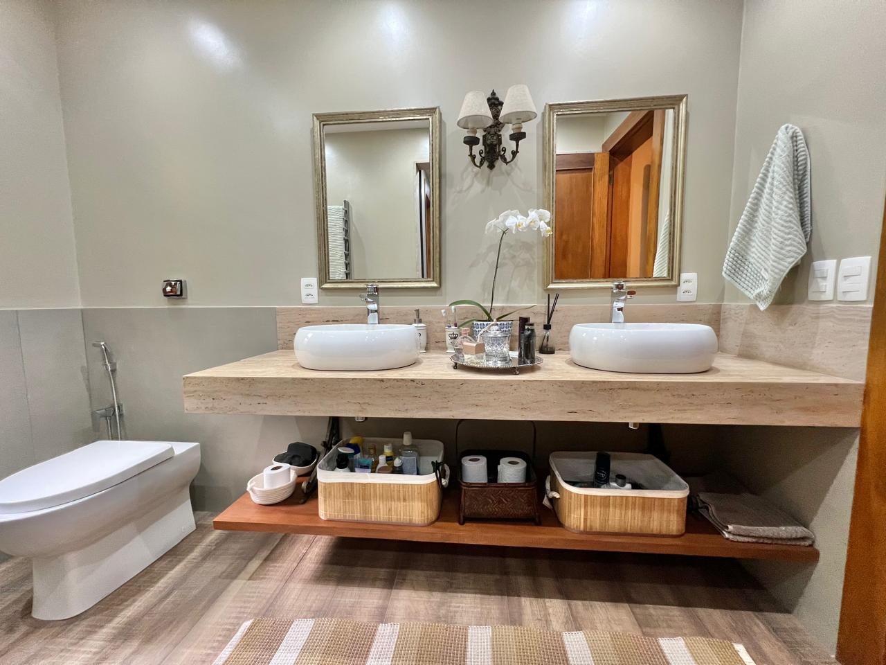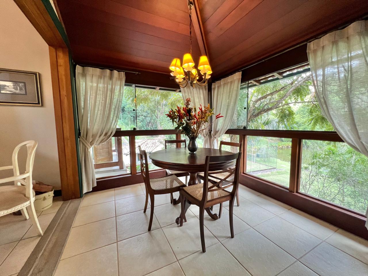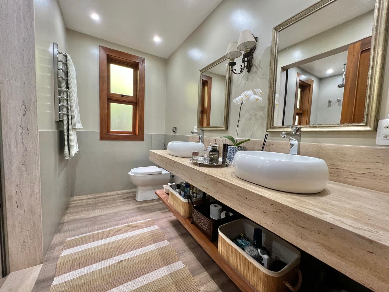 Ela conta com ótimo terreno, gramado e arborizado, que margeia o lago do condomínio, conta também com ótima estrutura de lazer: campo de futebol, salão de jogos, piscina, sauna, hidro e churrasqueira. A casa , com excelentes cômodos, é bem espaçosa composta por varandas, salas de estar, jantar e tv, lareira, lavabo, 4 ótimas suítes, cozinha com armários e área de serviço. Ótima localização e fácil acesso.