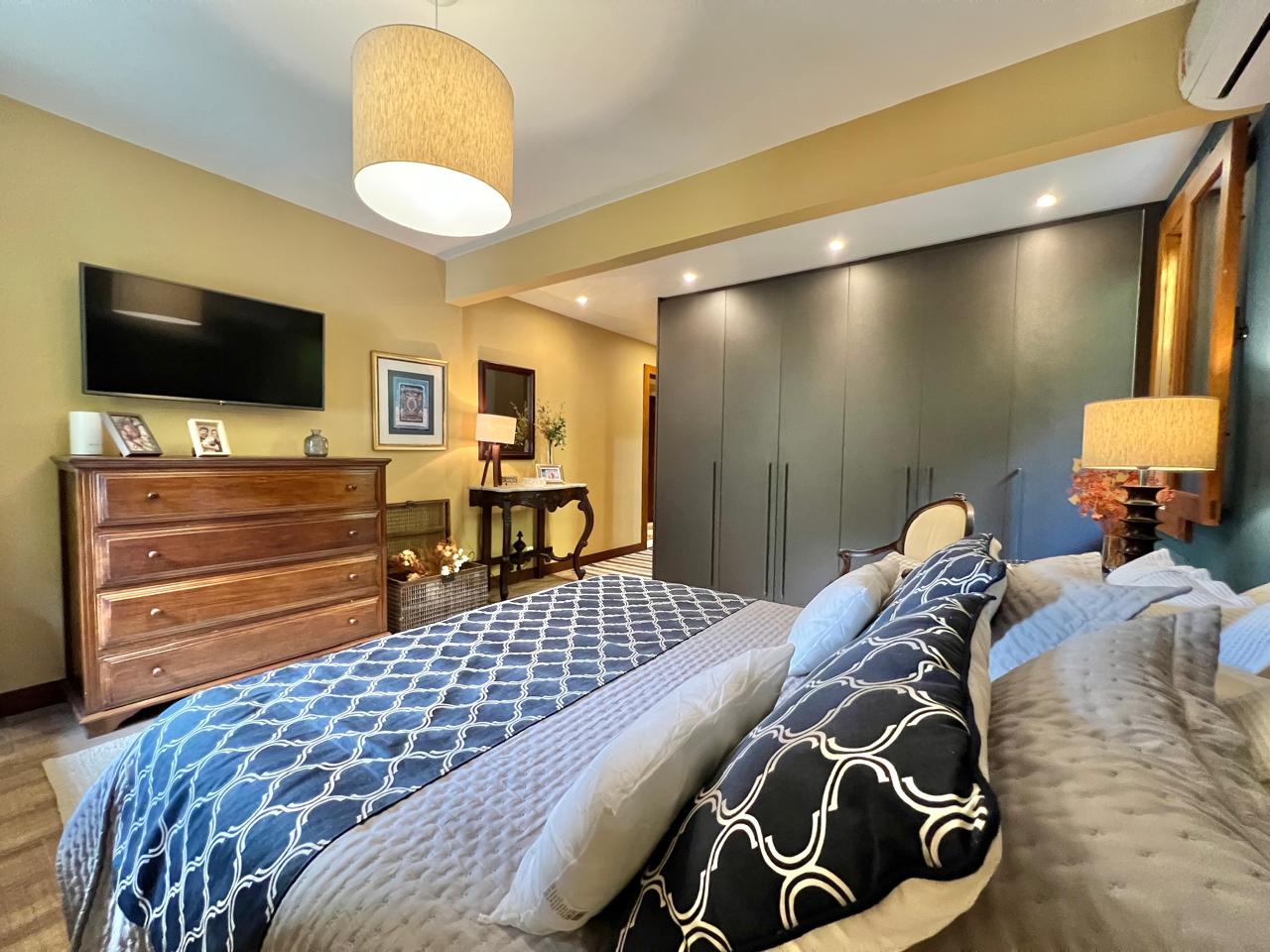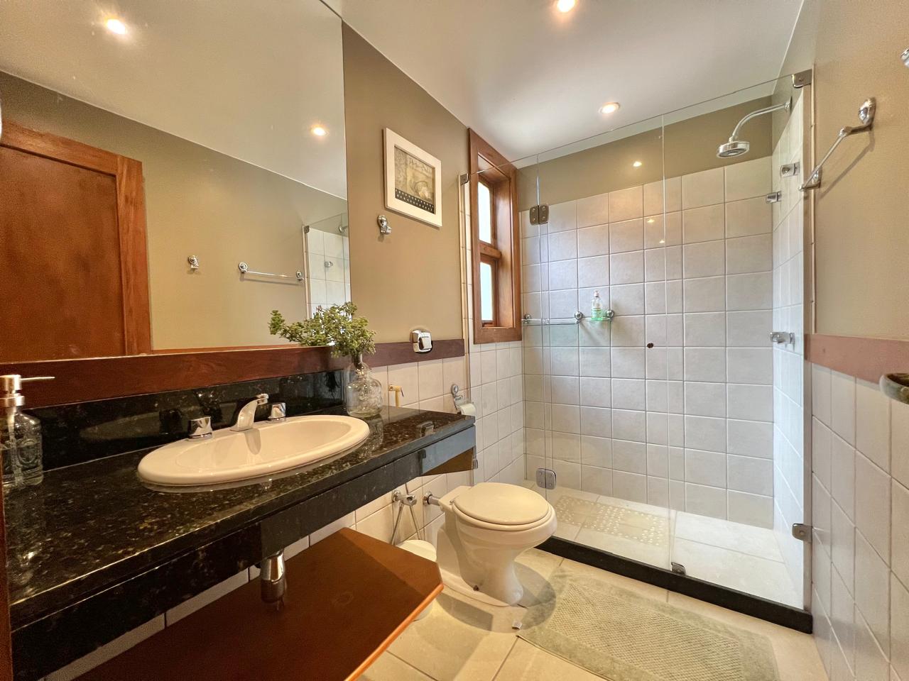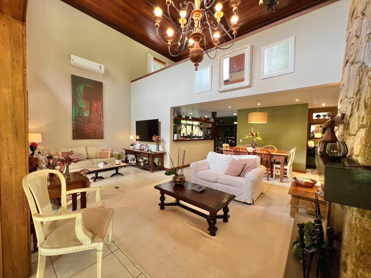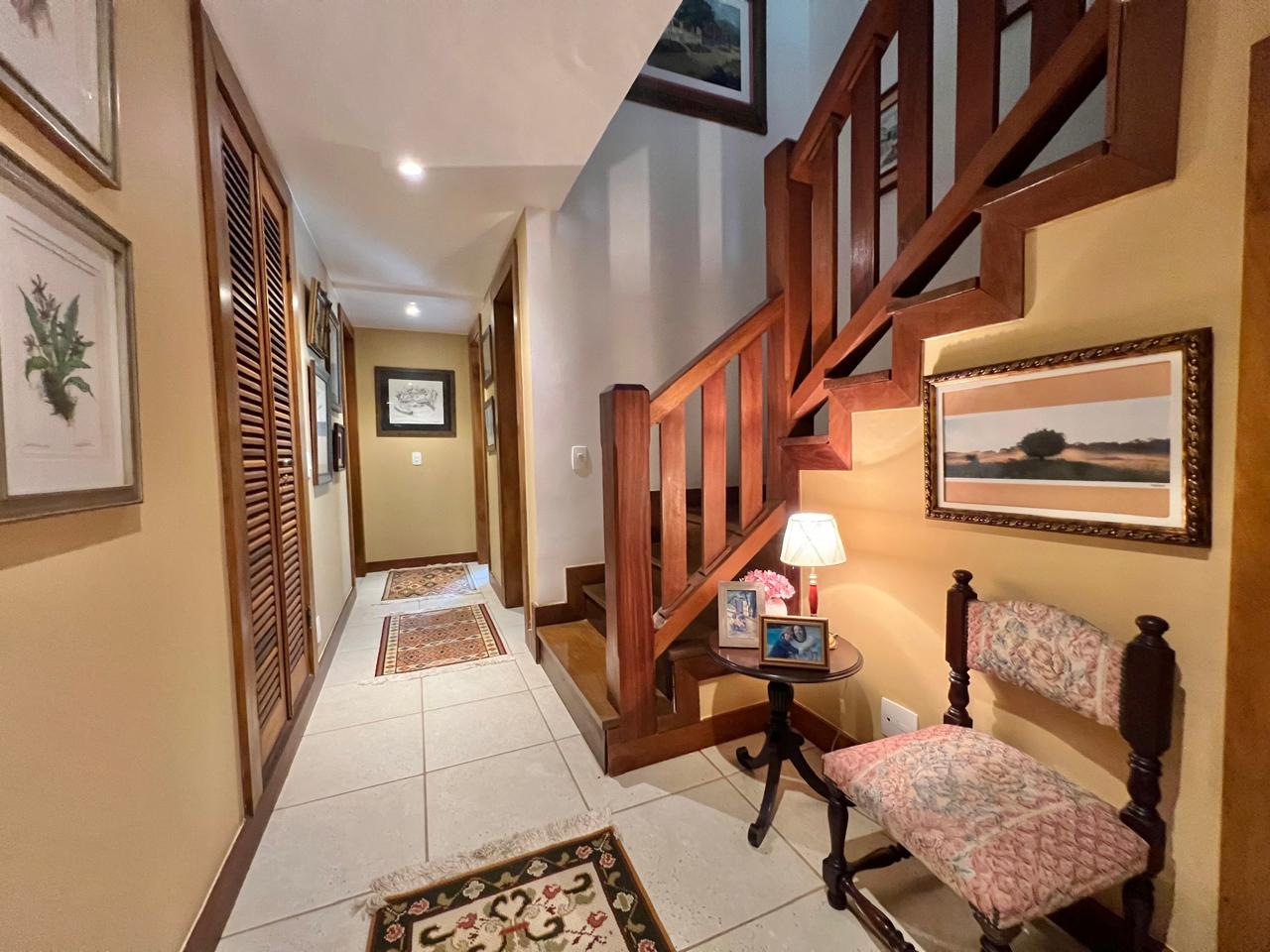 Ela conta com ótimo terreno, gramado e arborizado, que margeia o lago do condomínio, conta também com ótima estrutura de lazer: campo de futebol, salão de jogos, piscina, sauna, hidro e churrasqueira. A casa , com excelentes cômodos, é bem espaçosa composta por varandas, salas de estar, jantar e tv, lareira, lavabo, 4 ótimas suítes, cozinha com armários e área de serviço. Ótima localização e fácil acesso.