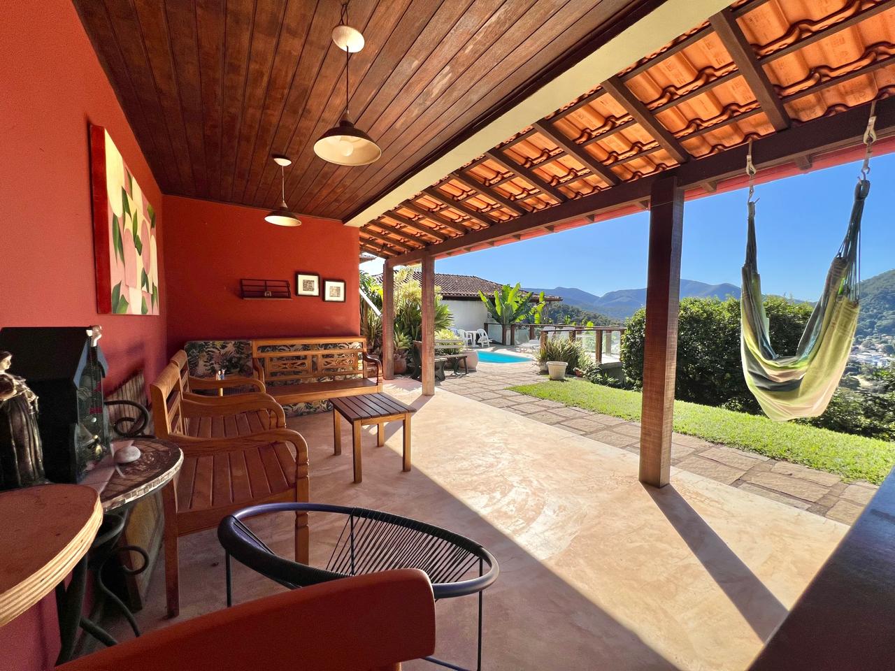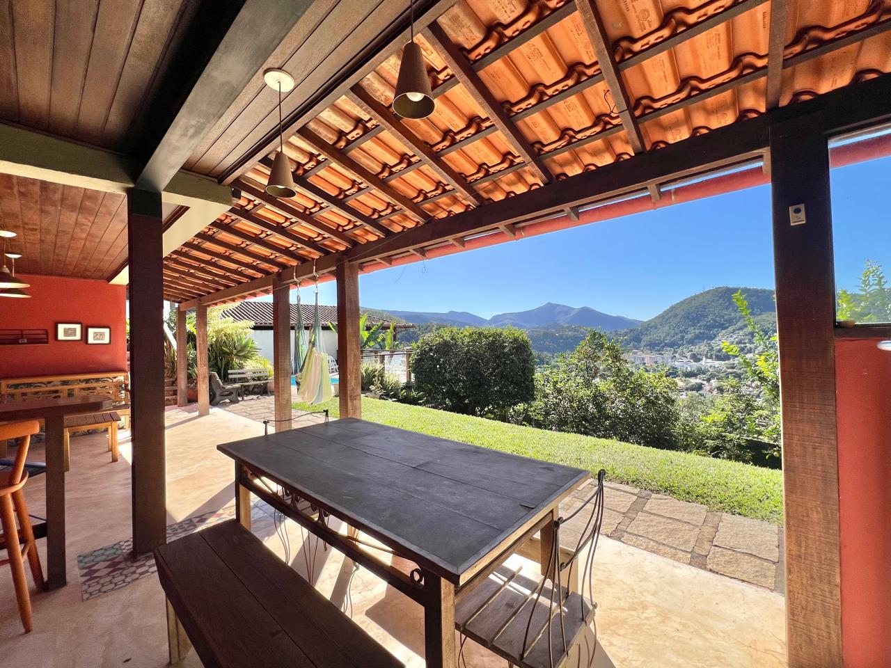 Excelente casa, bem localizada, ensolarada e com maravilhosa vista. Ela conta com terreno de 800m², com jardim, pomar, ótima área de lazer com piscina com deck, espaçosa área gourmet com churrasqueira, forninho e fogão a lenha, conta também com banheiro completo de apoio. A casa, com área total construída de 250m² é toda linear e conta com, ampla sala em ambientes (estar e jantar), lareira, um espaçoso atelliê, escritório com banheiro, 03 ótimos quartos com armários, sendo uma suíte com hidro e banheiro social. Espaçosa cozinha com armários, área de serviço e garagem para 4 carros com duas vagas cobertas. Documentação cristalina.