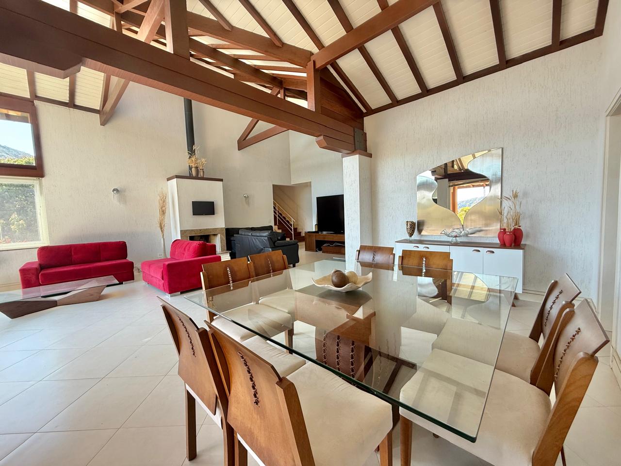 Ótima casa em condomínio com terreno plano, gramado e arborizado, Linda vista e ensolarada. A casa conta com sala de estar e jantar, lareira, espaçosa cozinha com armários e 4 quartos sendo 2 suítes. Lazer com piscina e área gourmet. A casa ainda conta com dep. p/ empregada e lavanderia.