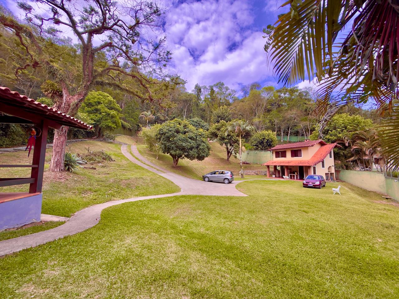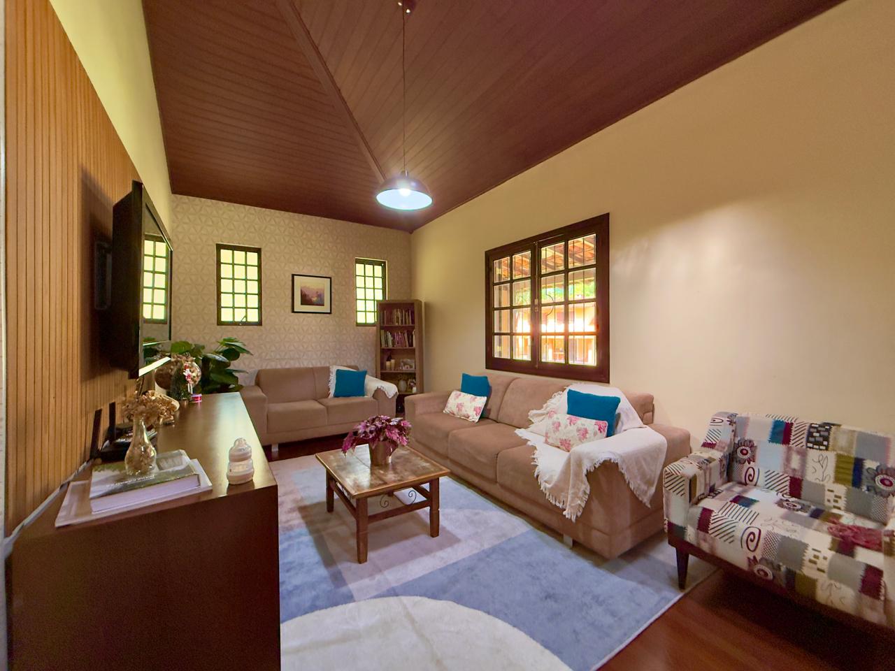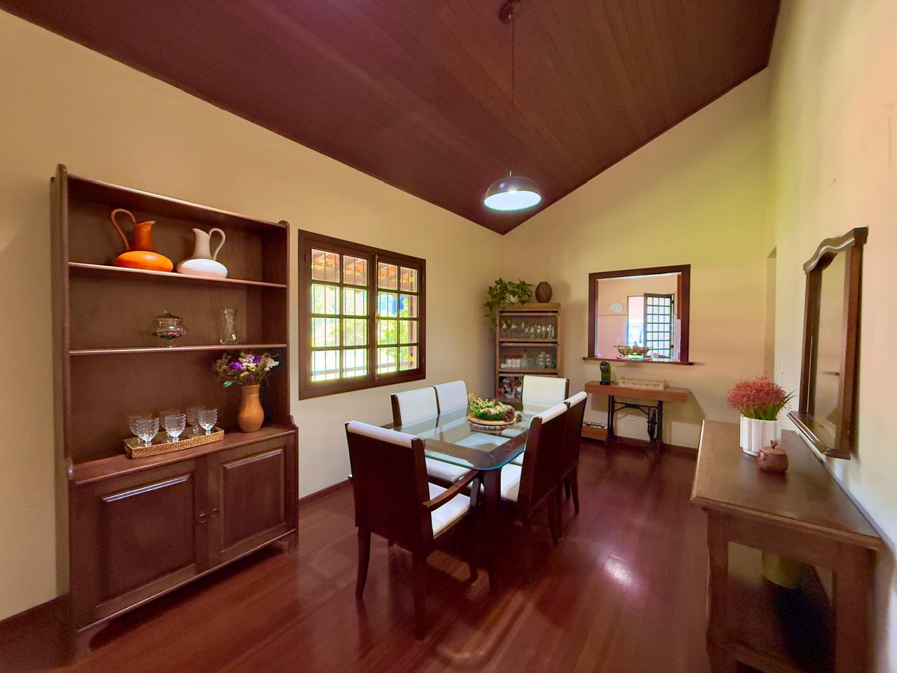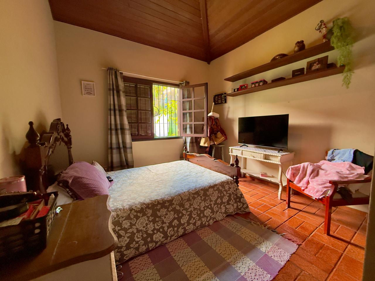 Casa bem localiada em local tranquilo e acolhedor. Jardim todo gramado e arborizado com terreno de 2.742,65m². A casa conta com varanda, salas de estar e jantar, copa/cozinha, banheiro social, 03 quartos sendo o1excelente suíte. Lazer com piscina, churrasqueira coberta, espaço para a sauna e banheiro. A propriedde ainda conta com 02 quartos externos para hóspedes, e um banheiro, área de serviços e portão eletrônico.