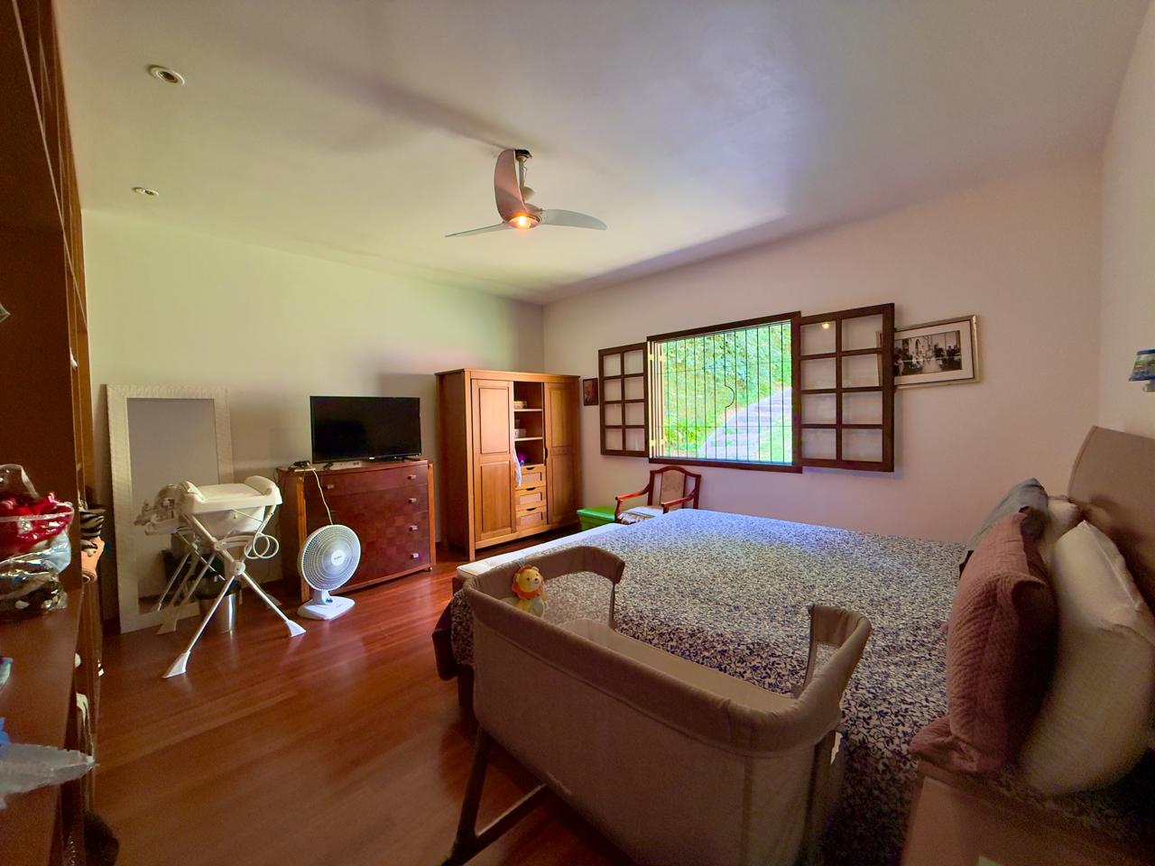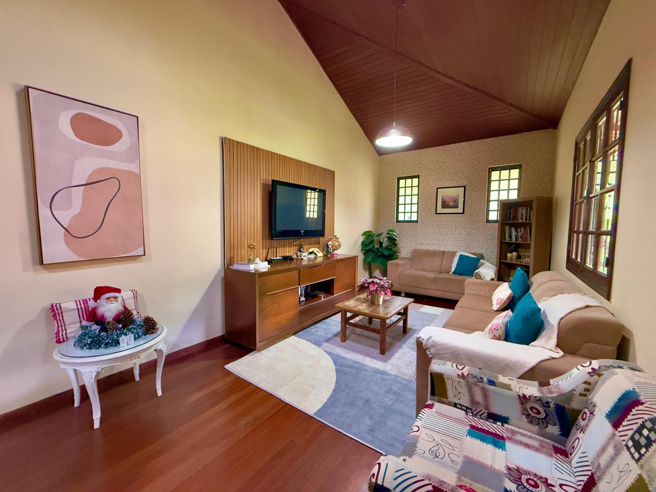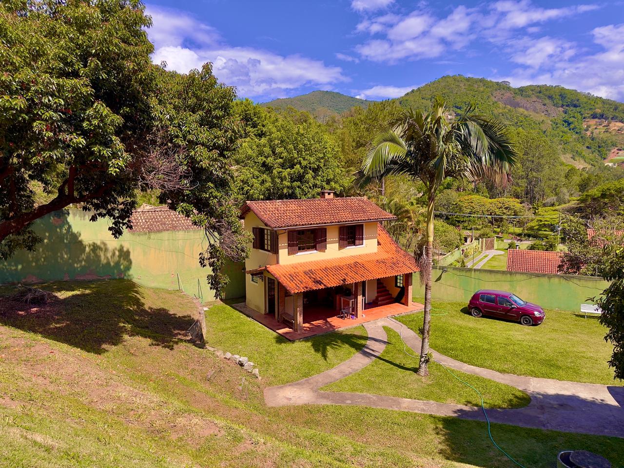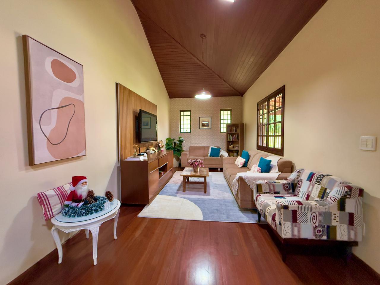 Casa bem localiada em local tranquilo e acolhedor. Jardim todo gramado e arborizado com terreno de 2.742,65m². A casa conta com varanda, salas de estar e jantar, copa/cozinha, banheiro social, 03 quartos sendo o1excelente suíte. Lazer com piscina, churrasqueira coberta, espaço para a sauna e banheiro. A propriedde ainda conta com 02 quartos externos para hóspedes, e um banheiro, área de serviços e portão eletrônico.