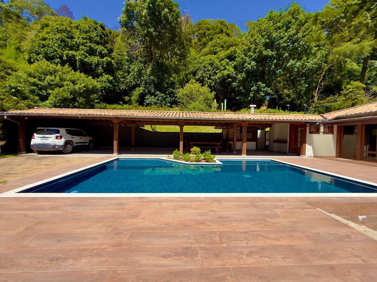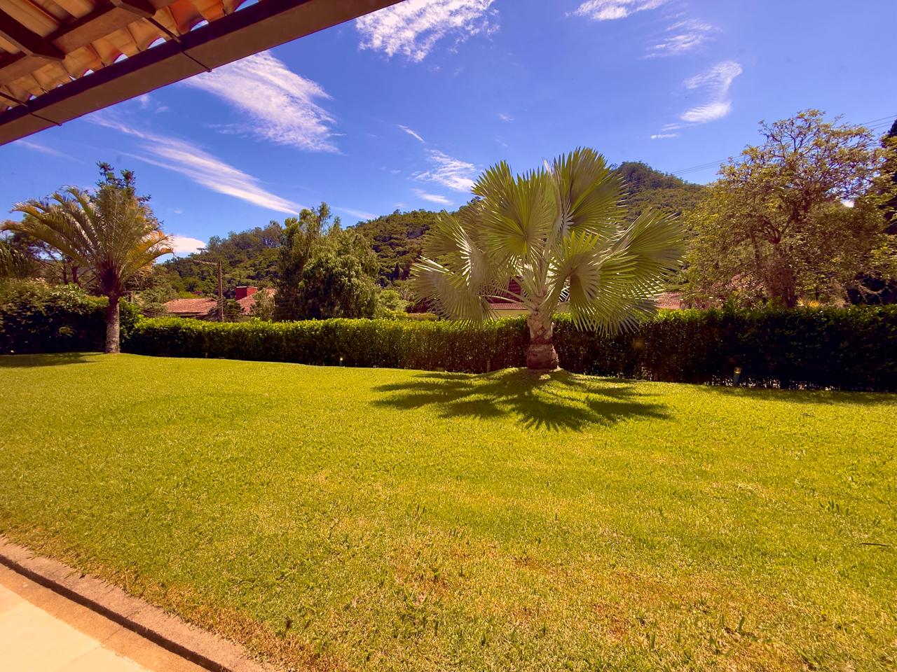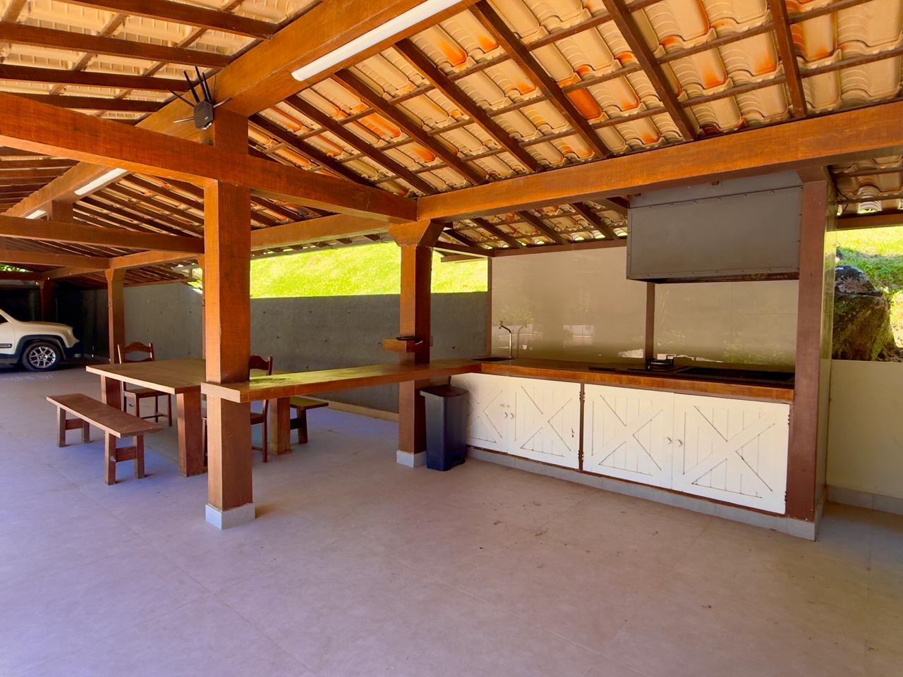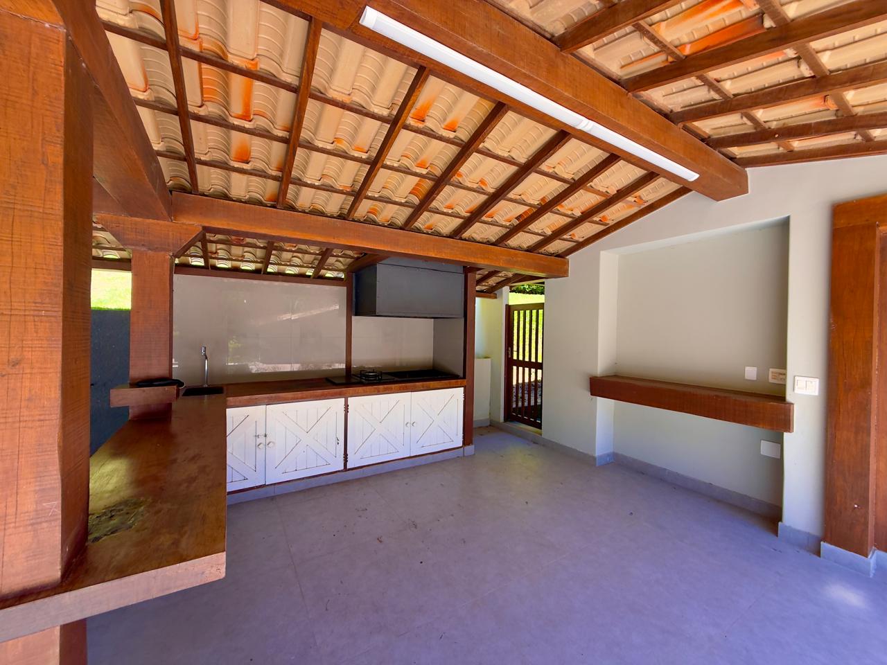 Excelente casa em condomínio de alto padrão, toda linear, com terreno de 1.500m² todo gramado e arborizado. Ela conta com salão em ambientes, lareira, sala de jantar, bar, lavabo,cozinha com armários, banheiro social, 3 ótimos quartos sendo 1 suíte com hidro e closet. Lazer com piscina, hidromassagem, sauna, ducha e área gourmet. A propriedade ainda conta com dep. p/ empregada completa, área de serviço, garagem coberta, pomar e horta.