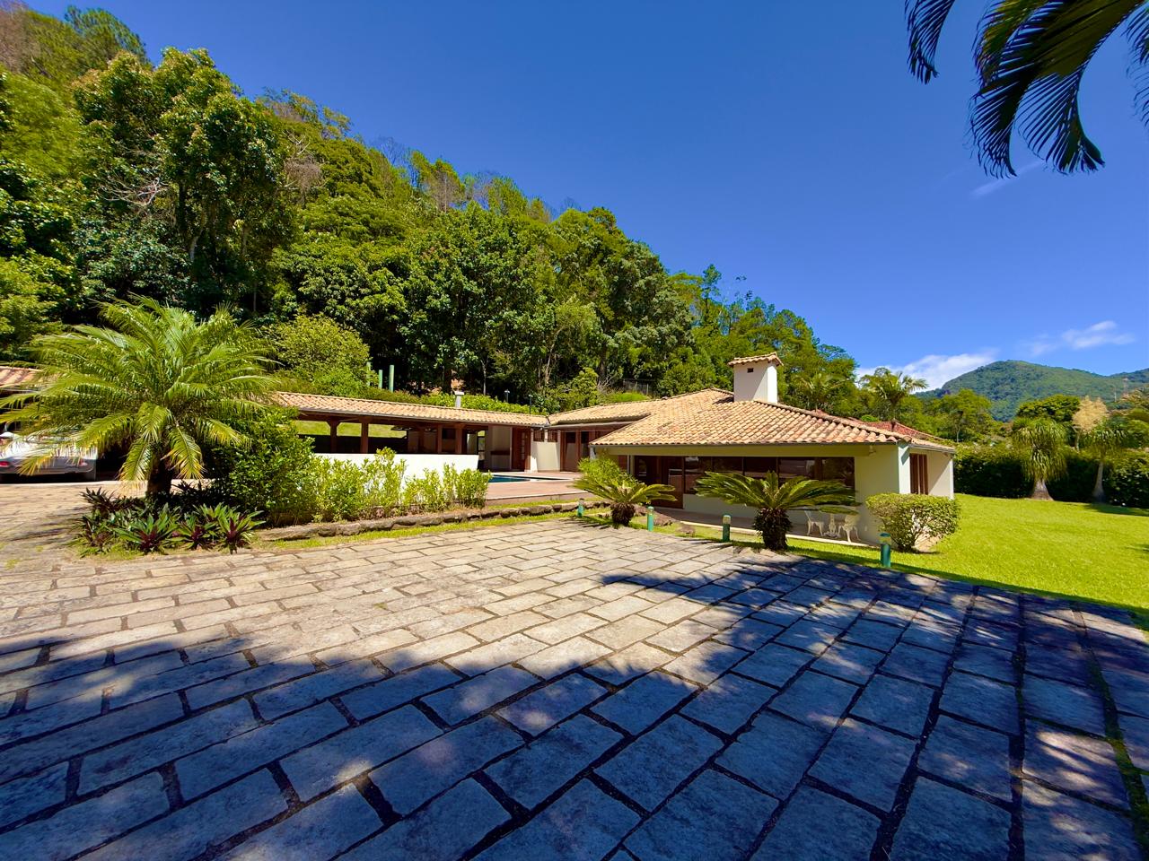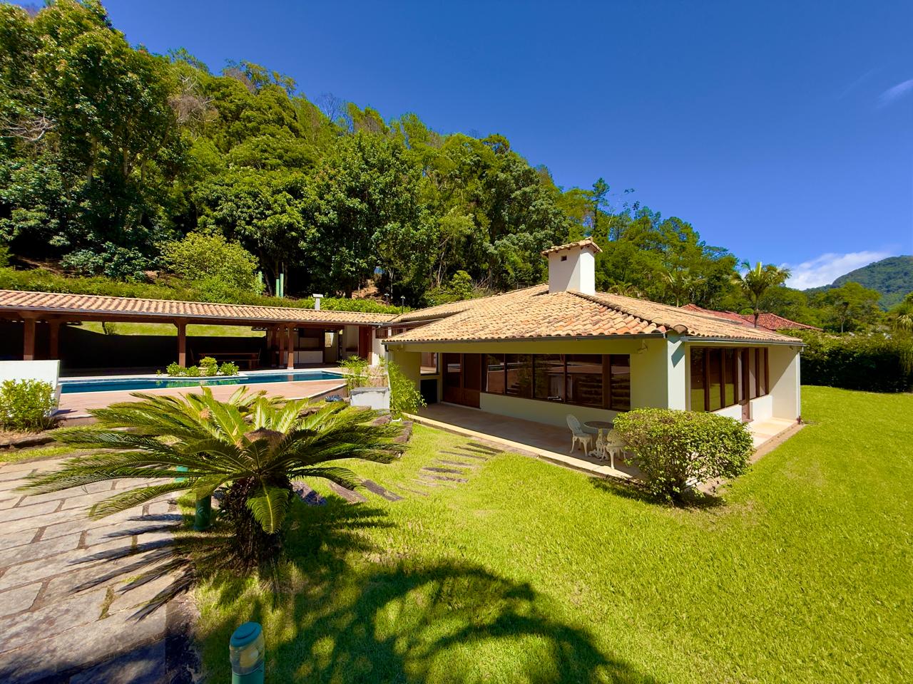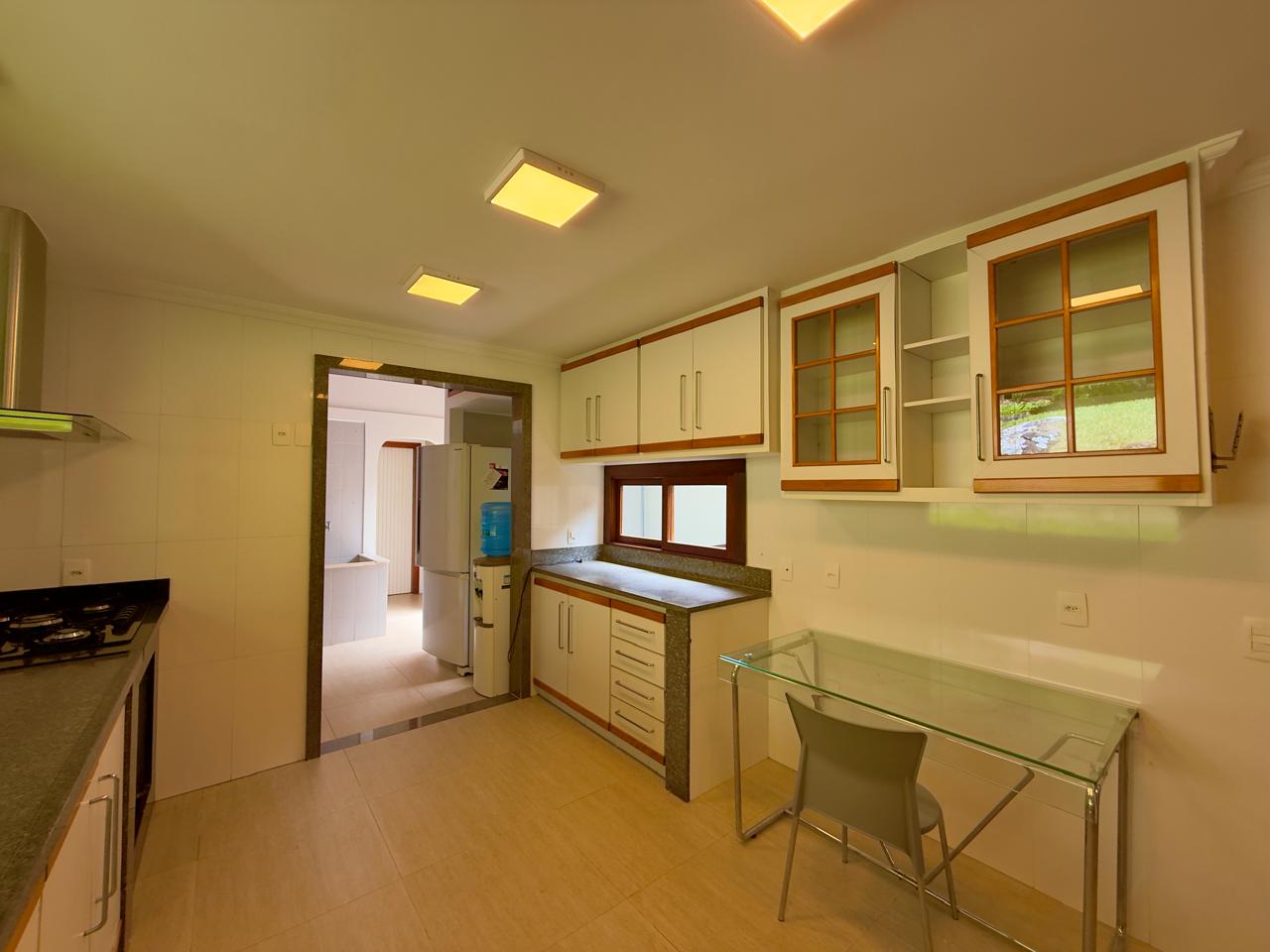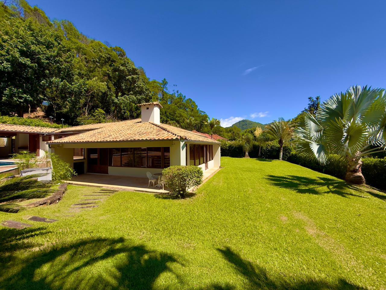 Excelente casa em condomínio de alto padrão, toda linear, com terreno de 1.500m² todo gramado e arborizado. Ela conta com salão em ambientes, lareira, sala de jantar, bar, lavabo,cozinha com armários, banheiro social, 3 ótimos quartos sendo 1 suíte com hidro e closet. Lazer com piscina, hidromassagem, sauna, ducha e área gourmet. A propriedade ainda conta com dep. p/ empregada completa, área de serviço, garagem coberta, pomar e horta.