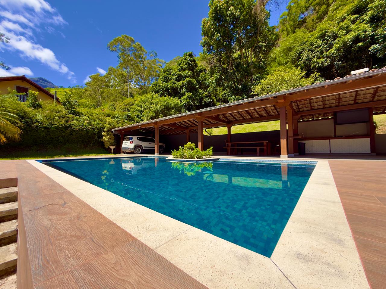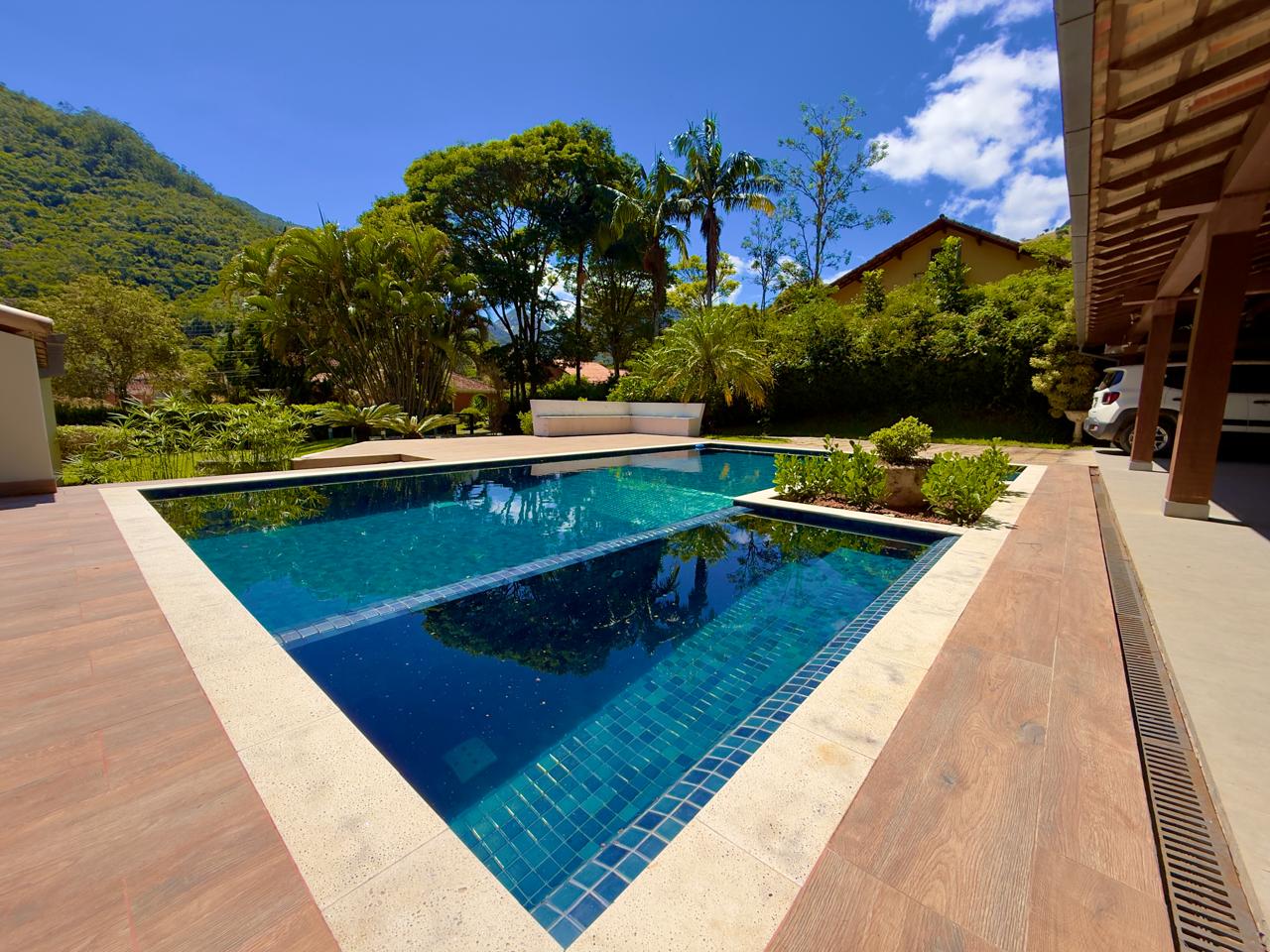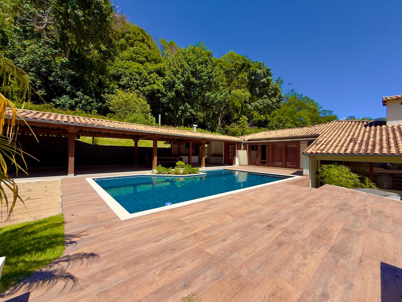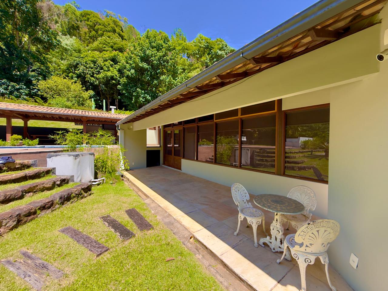 Excelente casa em condomínio de alto padrão, toda linear, com terreno de 1.500m² todo gramado e arborizado. Ela conta com salão em ambientes, lareira, sala de jantar, bar, lavabo,cozinha com armários, banheiro social, 3 ótimos quartos sendo 1 suíte com hidro e closet. Lazer com piscina, hidromassagem, sauna, ducha e área gourmet. A propriedade ainda conta com dep. p/ empregada completa, área de serviço, garagem coberta, pomar e horta.