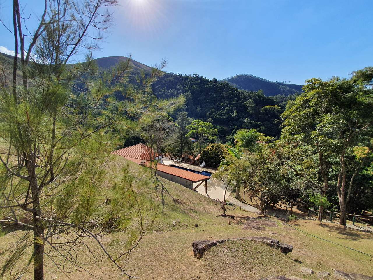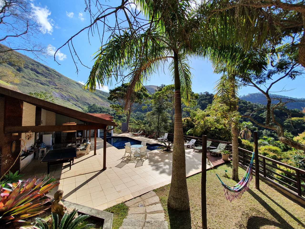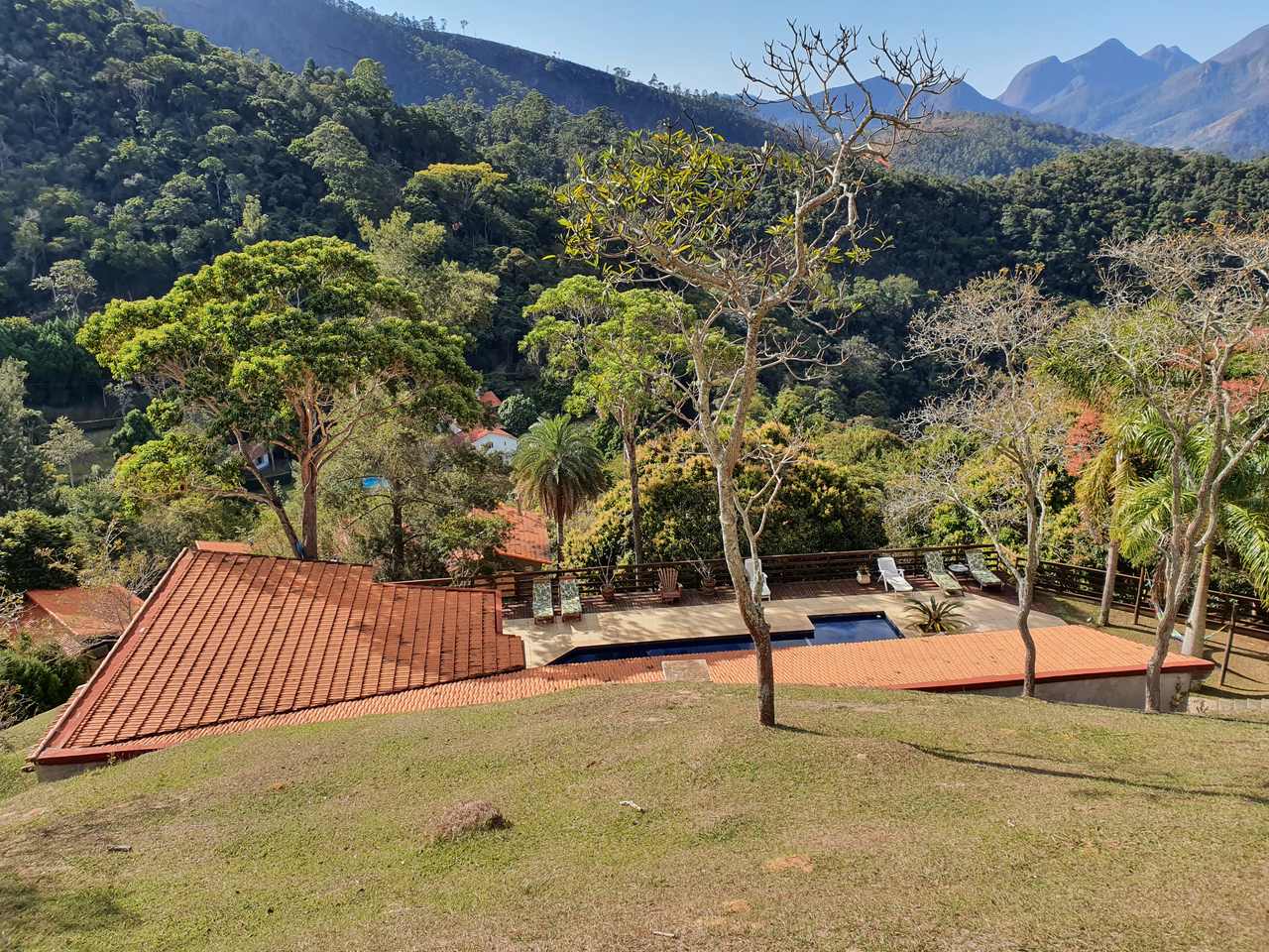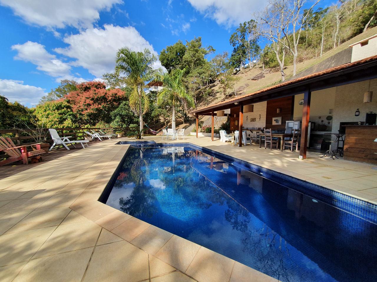 Excelente sítio/ pousada em local muito tranquilo com fácil acesso para a BR040 e pertinho do centro de Itaipava com uma belíssima área construída. Esta bela propriedade é composta por uma varanda, de onde se tem uma linda vista, recepção, banheiro, cozinha, despensa e área de serviços. Quatro belas suítes, independentes, com armários e lareiras, 05 belíssimos chalés em alvenaria (todos suítes), varanda, closet, banheira de hidromassagem e lareira. Área de lazer muito bem planejada, com piscina, sauna com passagem interligada para a piscina, churrasqueira, salão de jogos com banheiro e um spa para 4 pessoas. Lindo jardim gramado e arborizado, amplo estacionamento, água de mina e casa de caseiros.