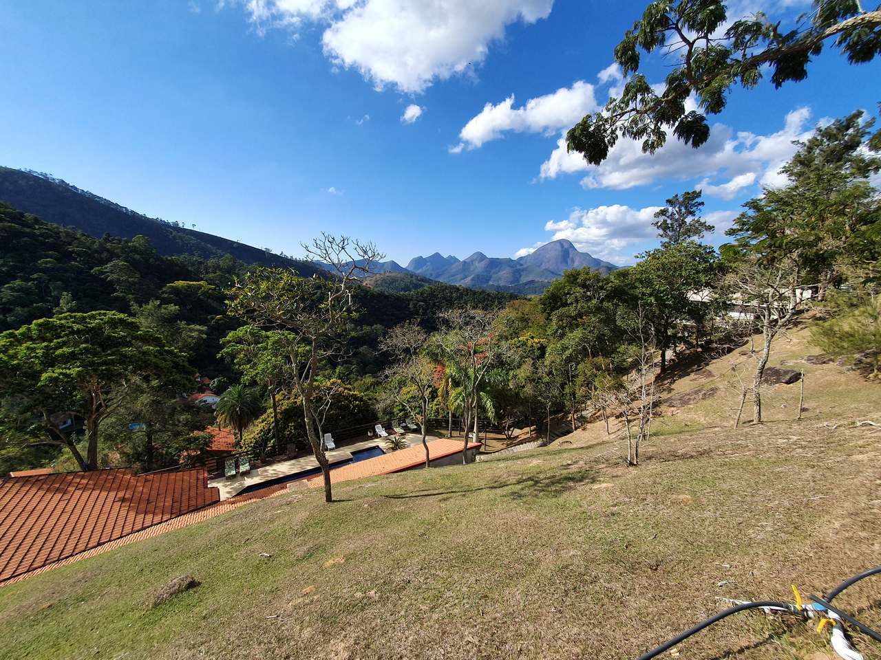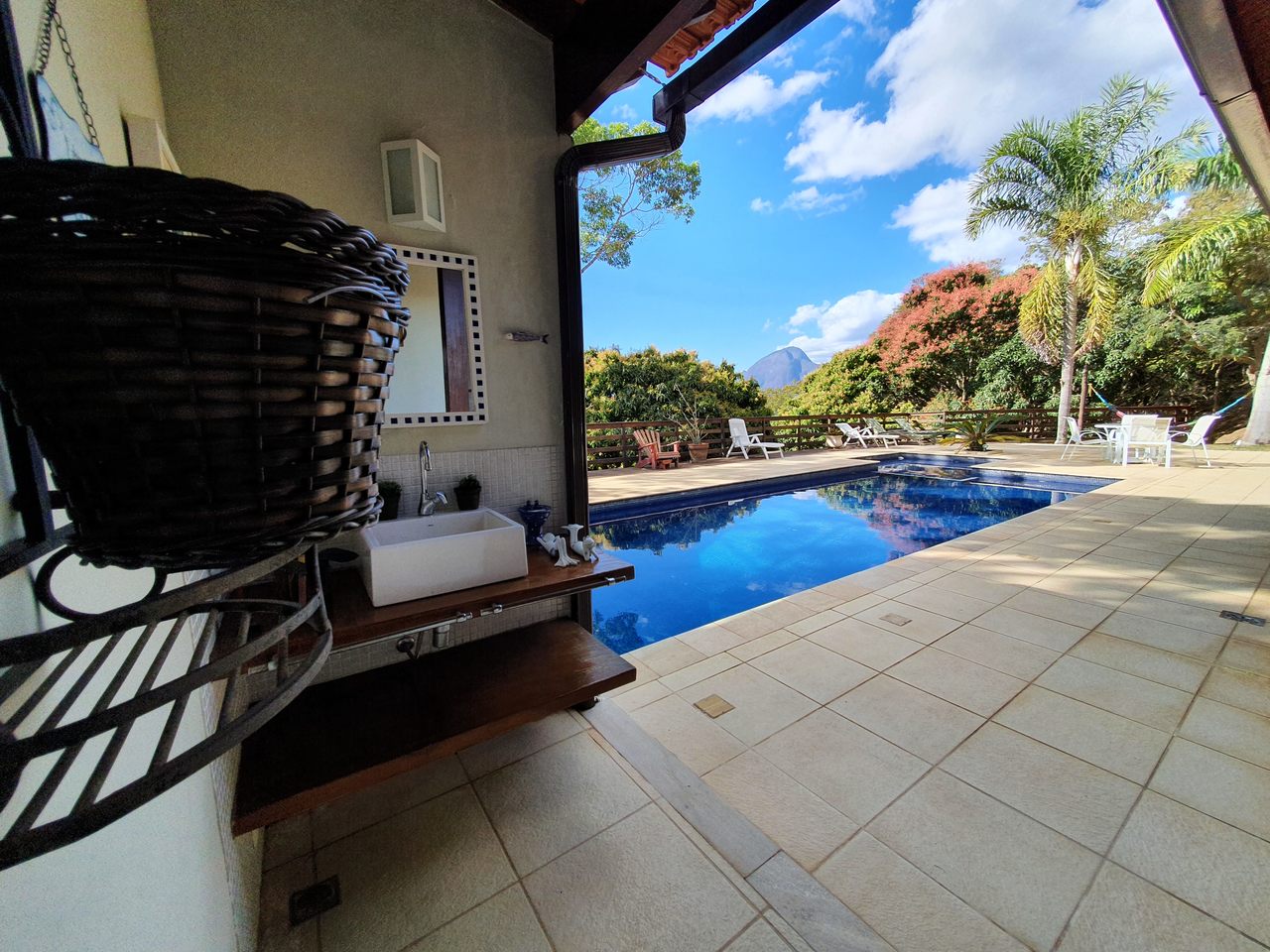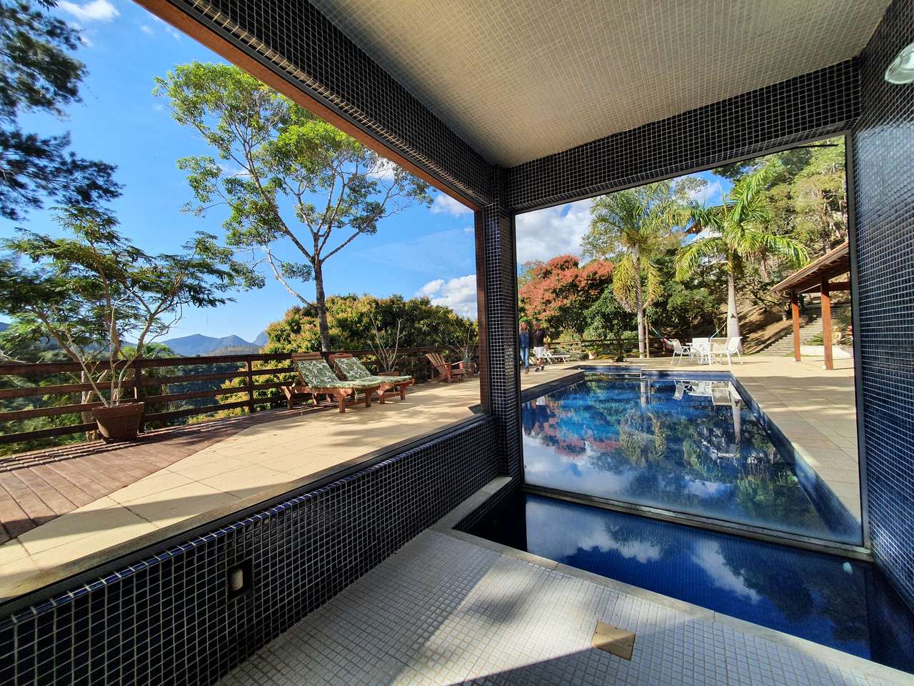 Excelente sítio/ pousada em local muito tranquilo com fácil acesso para a BR040 e pertinho do centro de Itaipava com uma belíssima área construída. Esta bela propriedade é composta por uma varanda, de onde se tem uma linda vista, recepção, banheiro, cozinha, despensa e área de serviços. Quatro belas suítes, independentes, com armários e lareiras, 05 belíssimos chalés em alvenaria (todos suítes), varanda, closet, banheira de hidromassagem e lareira. Área de lazer muito bem planejada, com piscina, sauna com passagem interligada para a piscina, churrasqueira, salão de jogos com banheiro e um spa para 4 pessoas. Lindo jardim gramado e arborizado, amplo estacionamento, água de mina e casa de caseiros.