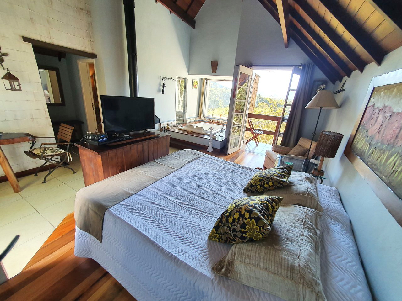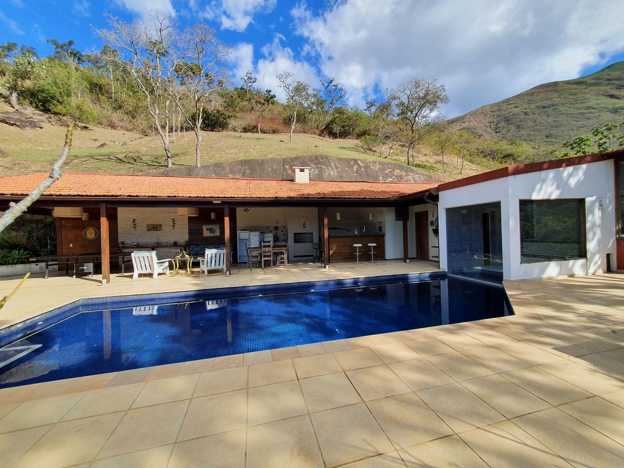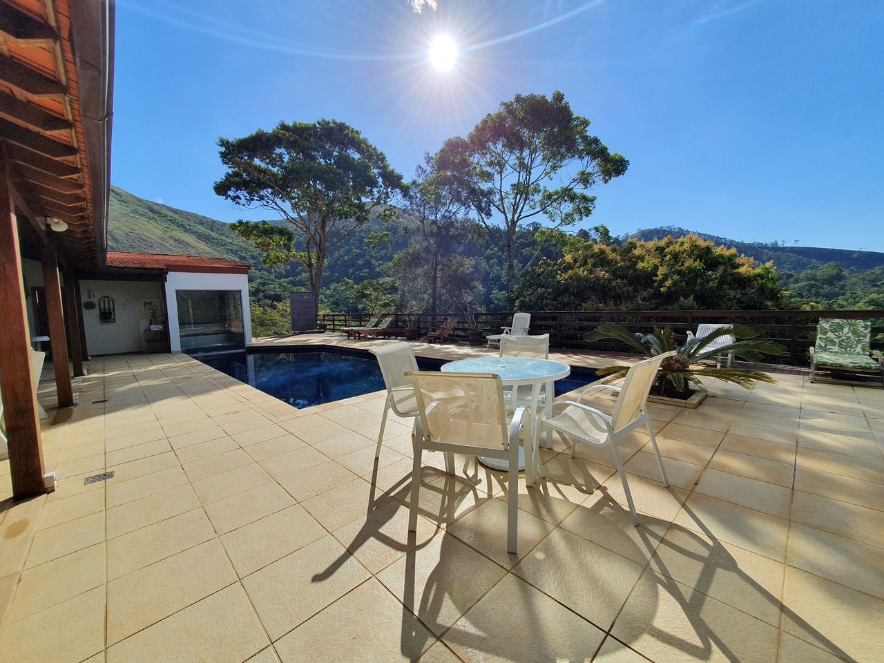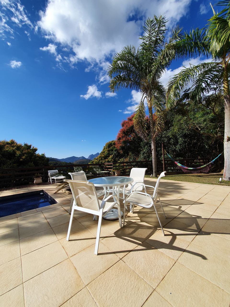 Excelente sítio/ pousada em local muito tranquilo com fácil acesso para a BR040 e pertinho do centro de Itaipava com uma belíssima área construída. Esta bela propriedade é composta por uma varanda, de onde se tem uma linda vista, recepção, banheiro, cozinha, despensa e área de serviços. Quatro belas suítes, independentes, com armários e lareiras, 05 belíssimos chalés em alvenaria (todos suítes), varanda, closet, banheira de hidromassagem e lareira. Área de lazer muito bem planejada, com piscina, sauna com passagem interligada para a piscina, churrasqueira, salão de jogos com banheiro e um spa para 4 pessoas. Lindo jardim gramado e arborizado, amplo estacionamento, água de mina e casa de caseiros.