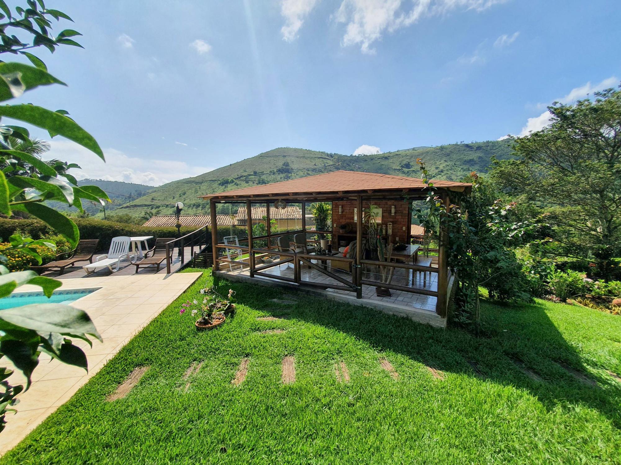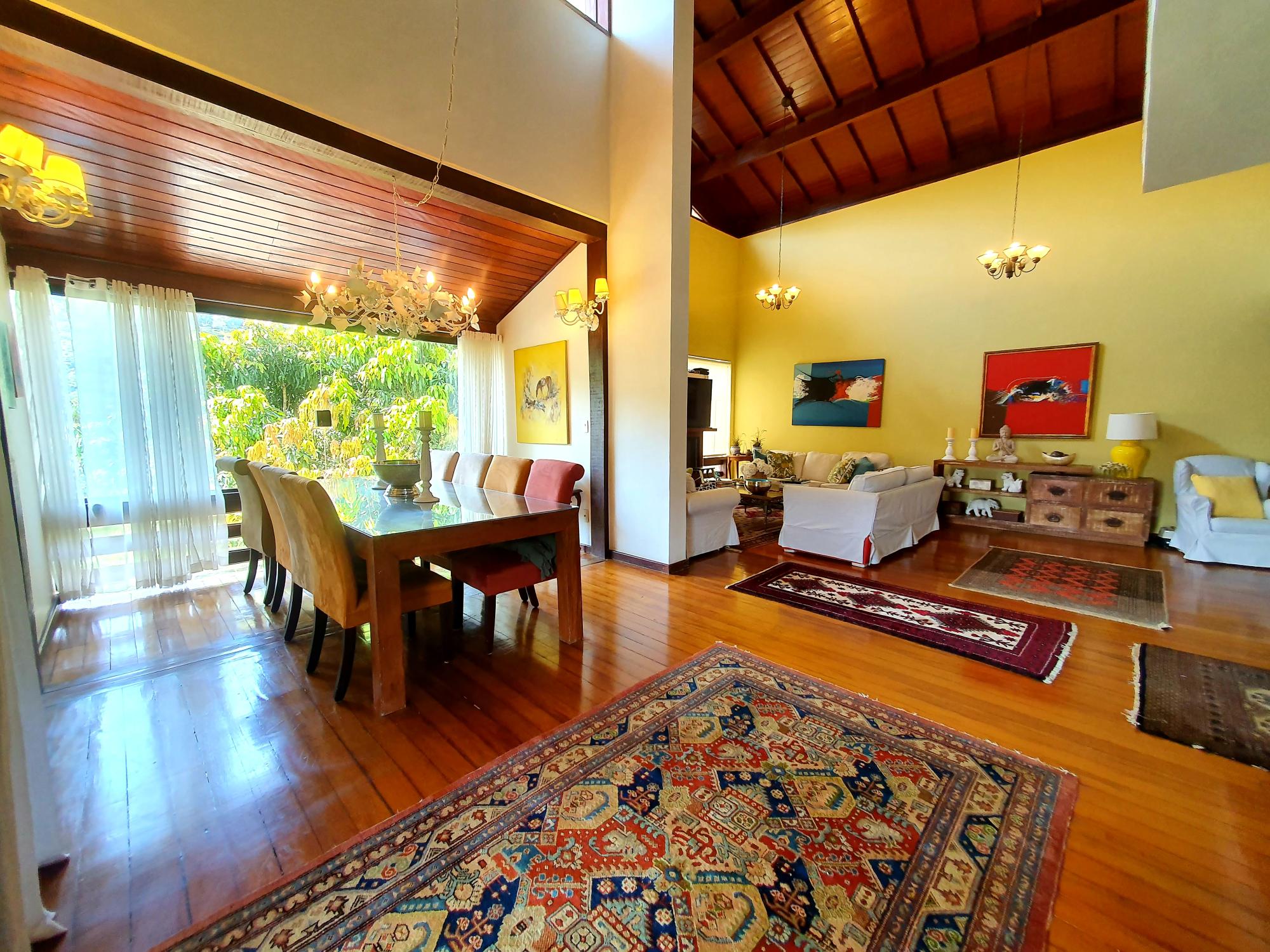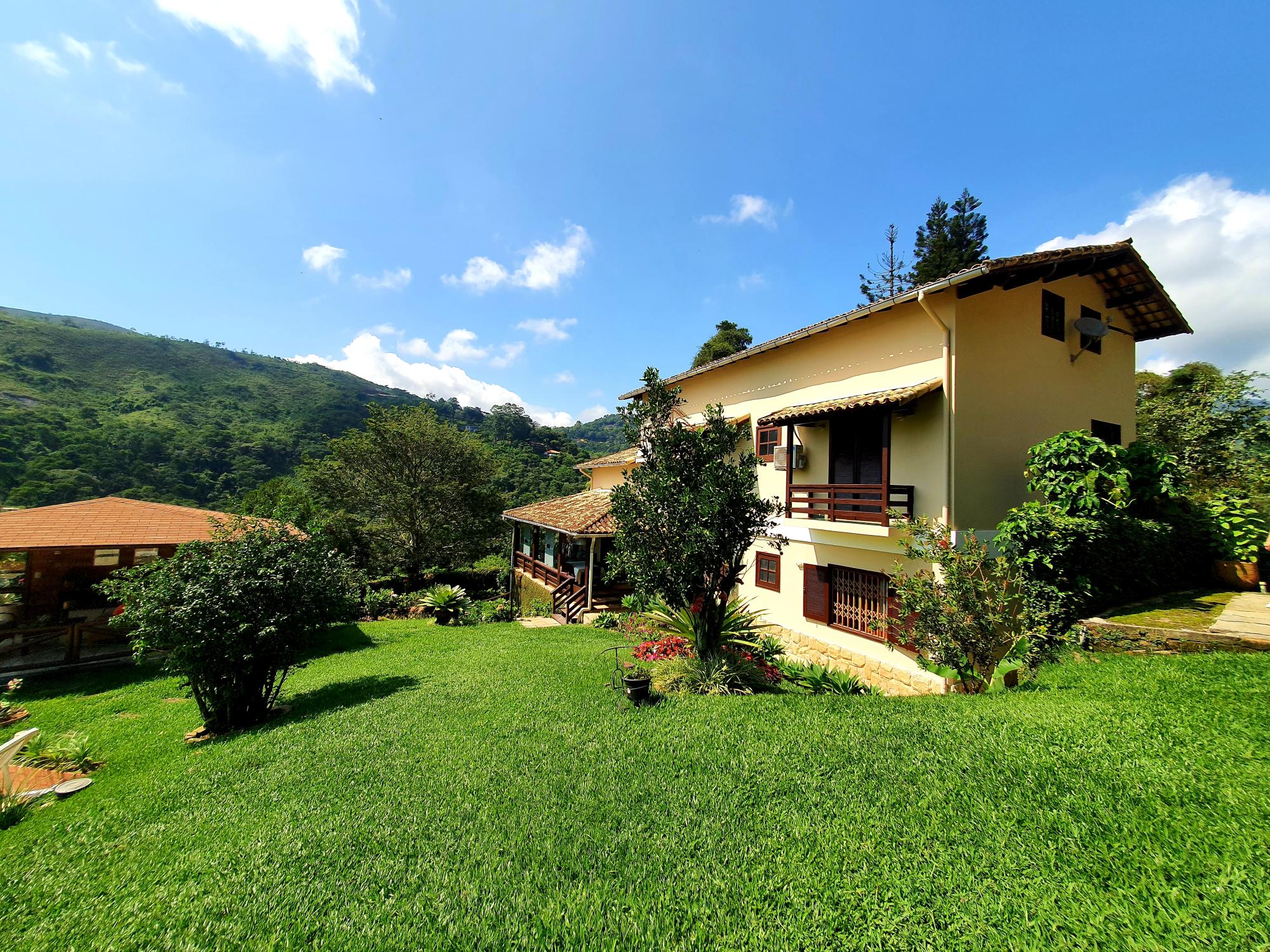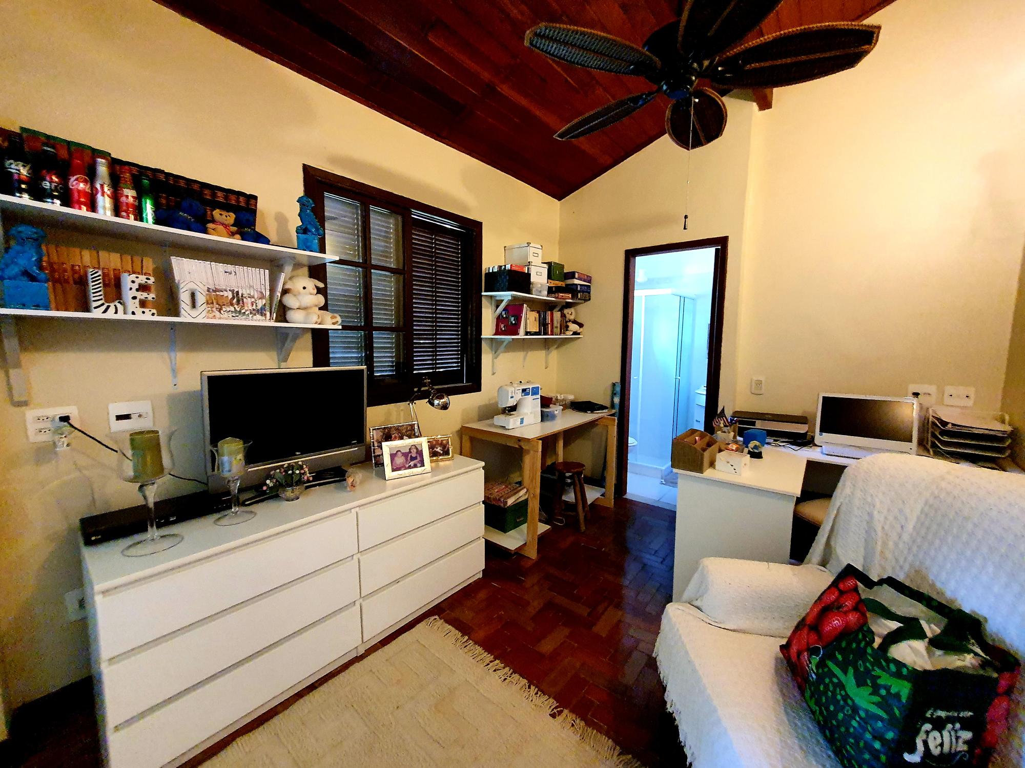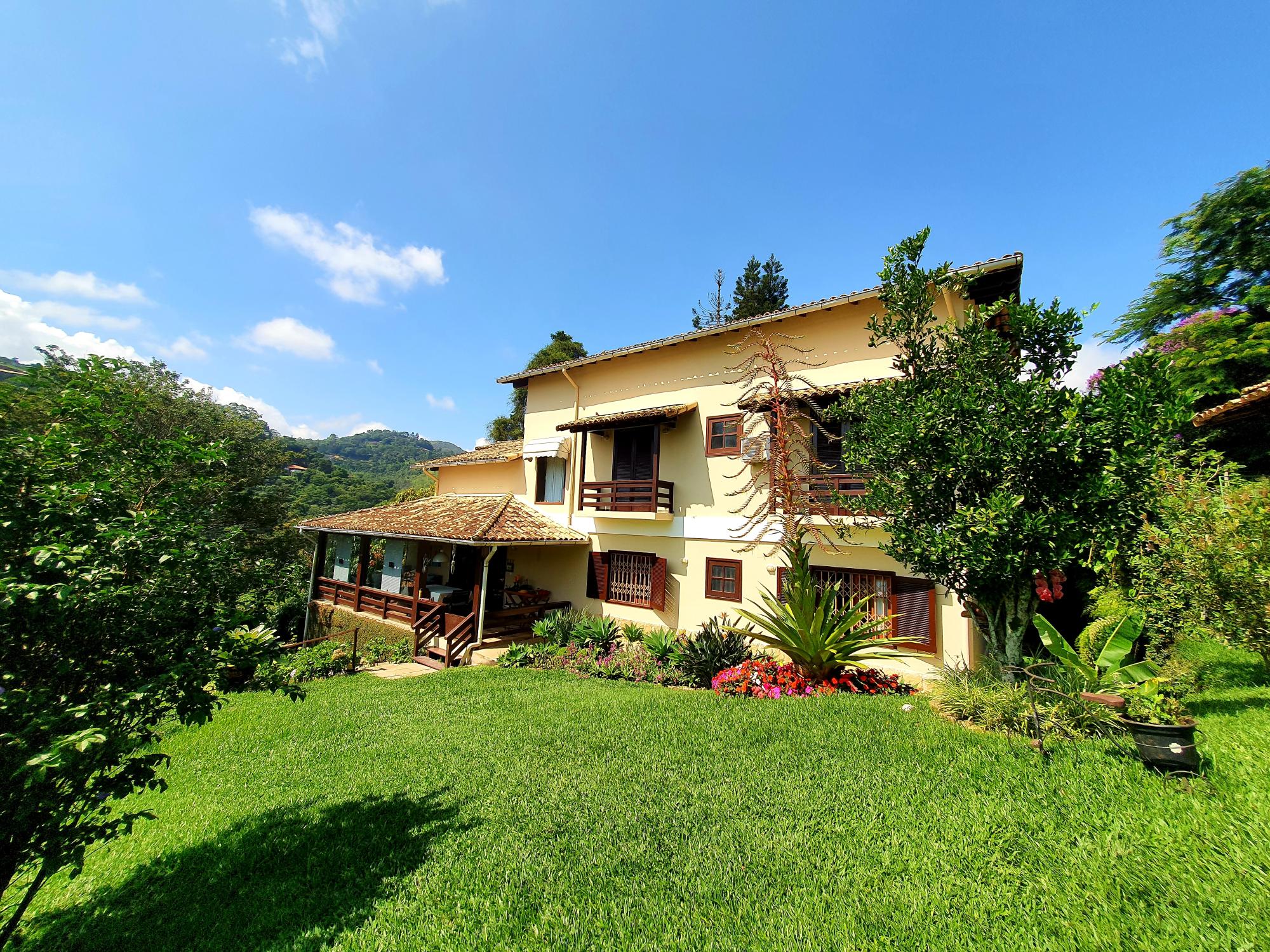 Ótima casa em condomínio de fácil acesso. Terreno com lindo jardim sendo aproximados 1.300m² de boa topografia. A casa com área construída de 600m2 é muito bem distribuída com cômodos bem espaçosos, sendo uma varanda fechada com blindex, sala em 03 ambientes (estar, jantar e tv), lavabo, espaçoso escritório com banheiro, 4 ótimos quartos sendo 02 suítes, ampla cozinha com armários, área de serviço, garagem para 02 carros. Na parte externa uma área de lazer com piscina e churrasqueira coberta, academia, pequeno lago e casa de caseiros com 02 quartos.