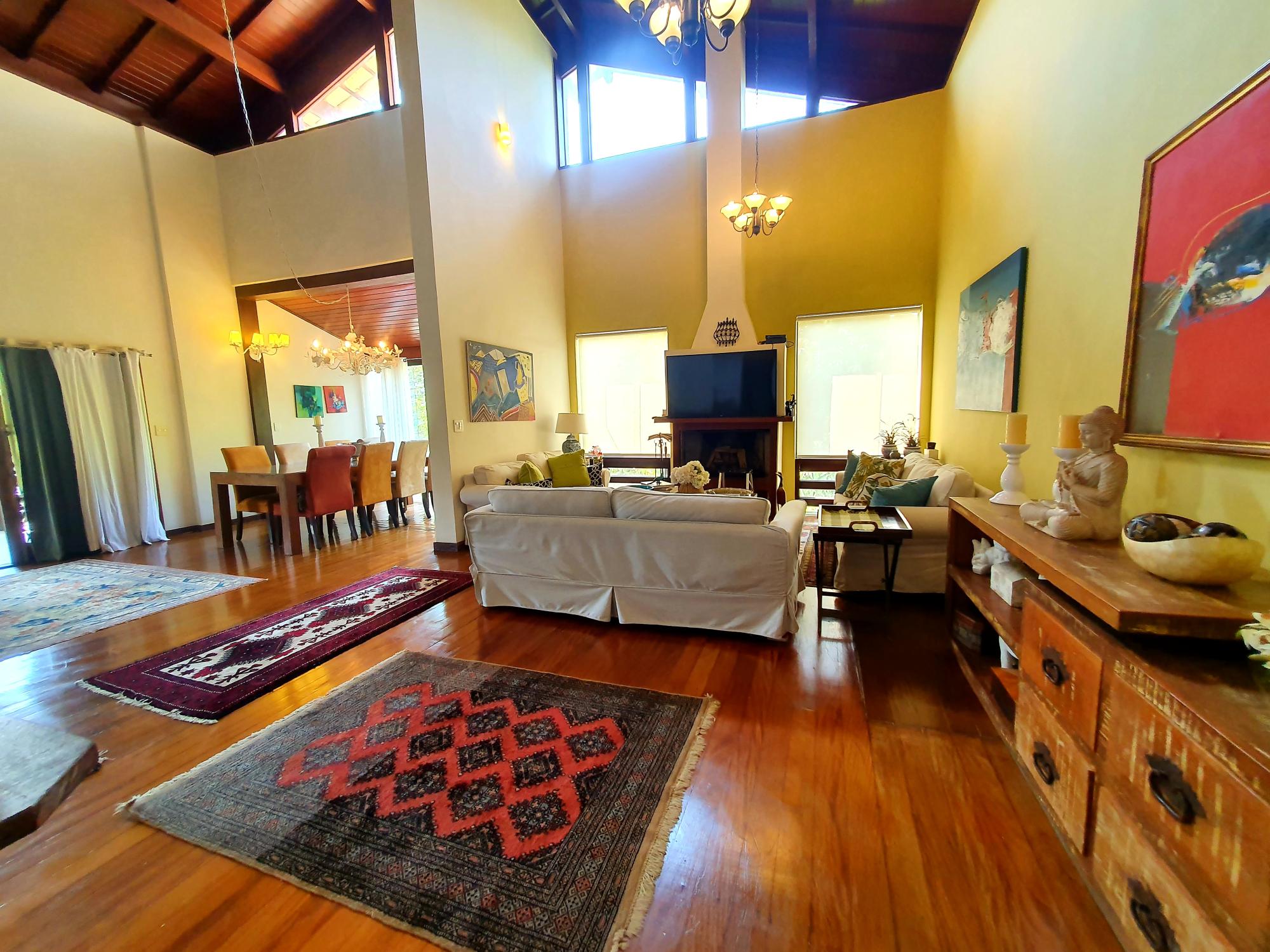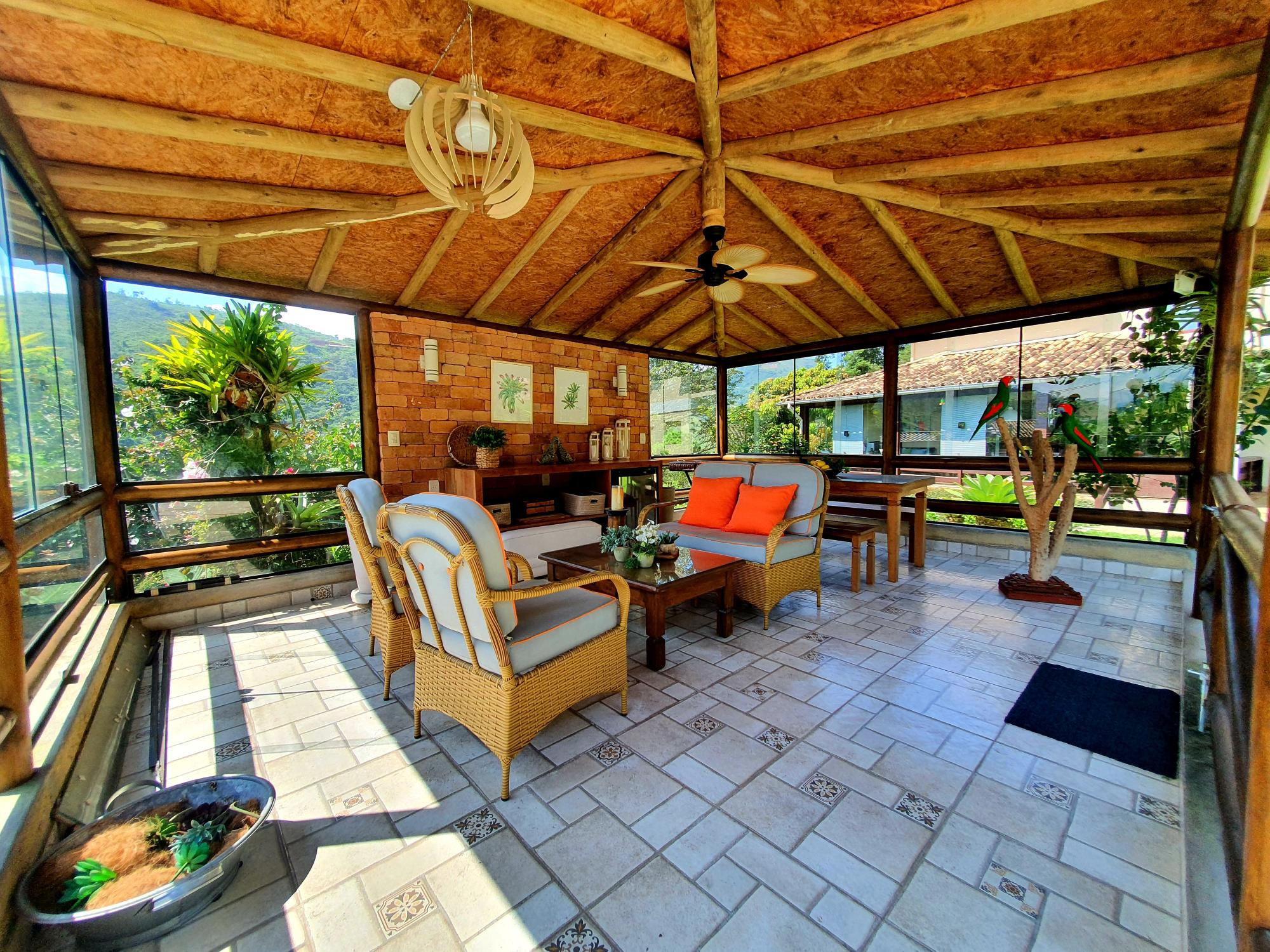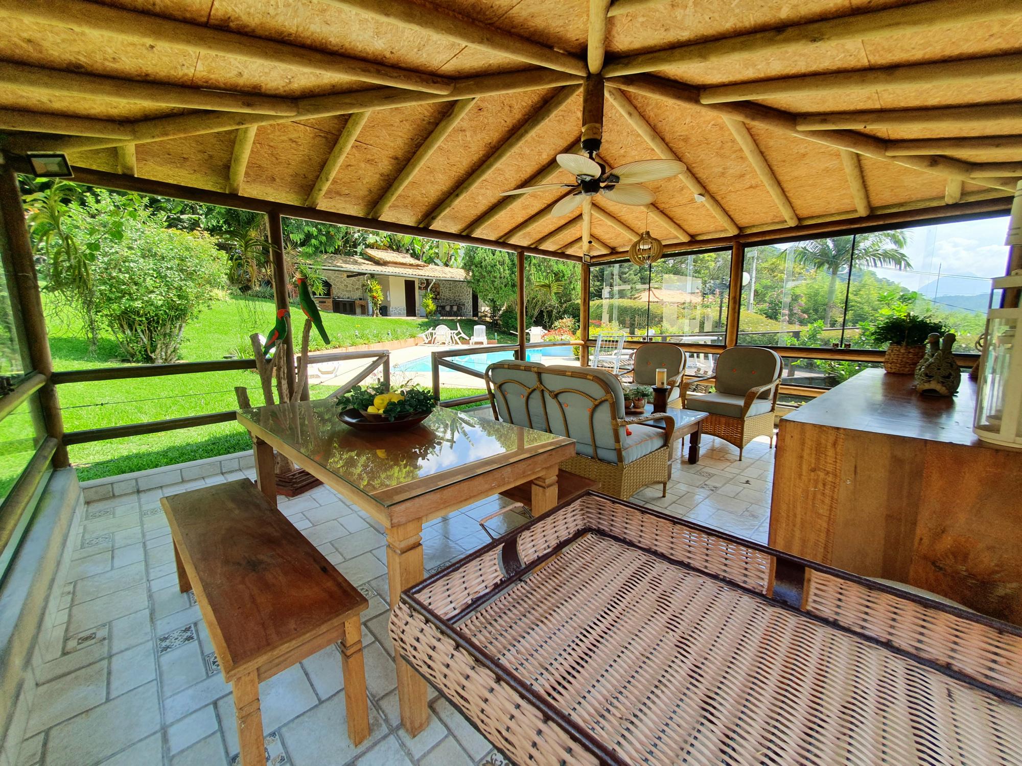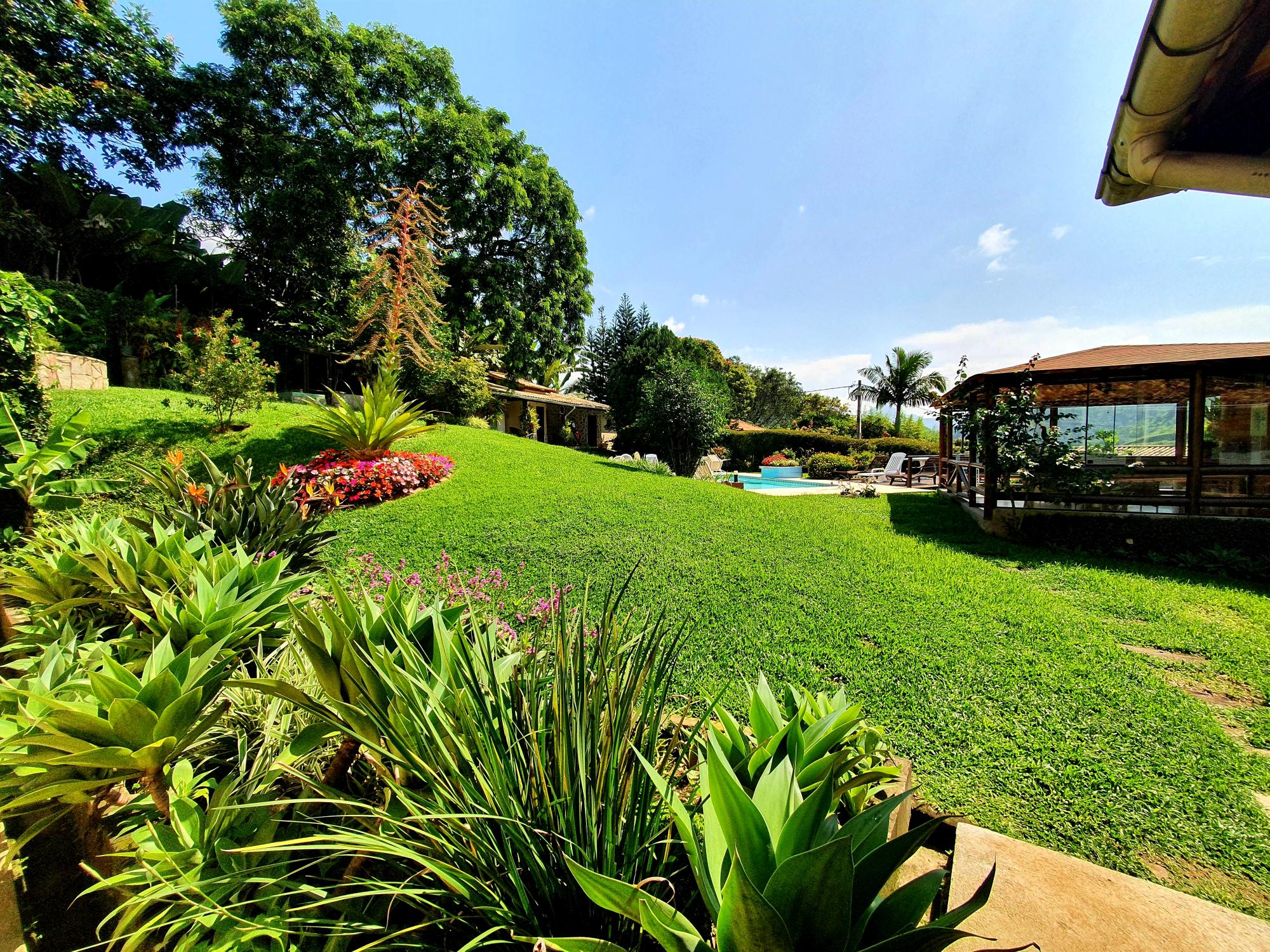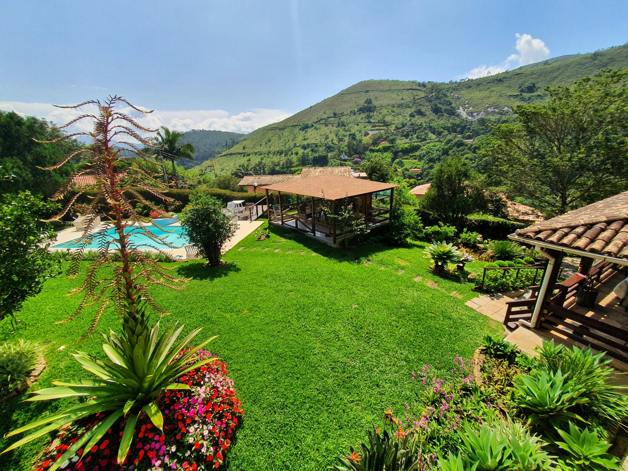 Ótima casa em condomínio de fácil acesso. Terreno com lindo jardim sendo aproximados 1.300m² de boa topografia. A casa com área construída de 600m2 é muito bem distribuída com cômodos bem espaçosos, sendo uma varanda fechada com blindex, sala em 03 ambientes (estar, jantar e tv), lavabo, espaçoso escritório com banheiro, 4 ótimos quartos sendo 02 suítes, ampla cozinha com armários, área de serviço, garagem para 02 carros. Na parte externa uma área de lazer com piscina e churrasqueira coberta, academia, pequeno lago e casa de caseiros com 02 quartos.